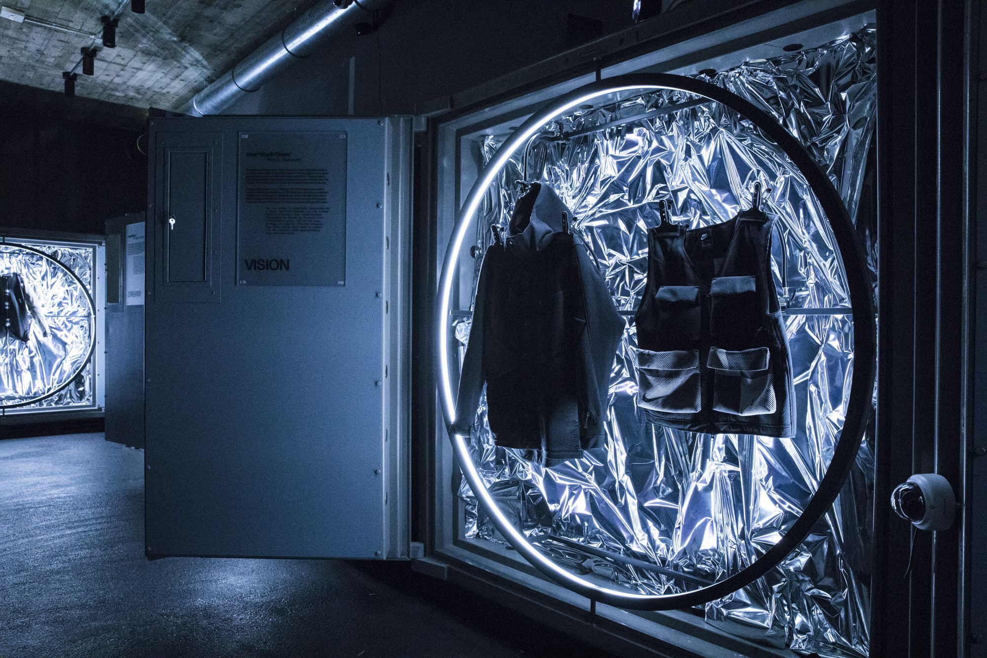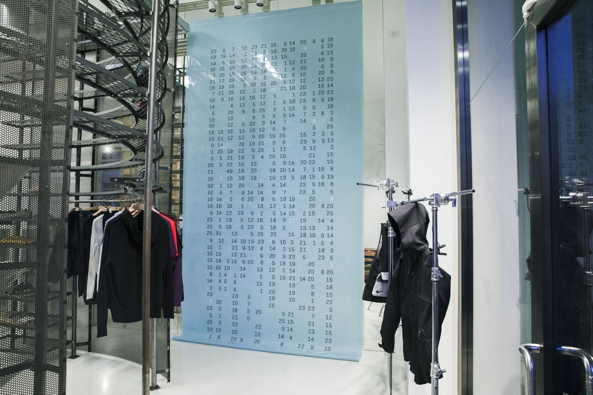 Il piano di sotto nasconde uno spazio che solo pochi hanno avuto la fortuna di vedere. Il caveau del NikeLab store, originariamente usato da un istituto finanziario che aveva sede nell'edificio proprio come cassaforte, diventa oggi il luogo perfetto dove dare un'occhiata ai pezzi unici che Capo Plaza, Federico Bernardeschi e One Block Down hanno disegnato durante i workshop, accompagnati dai rispettivi talent, la fotografa Virginia Arcaro, la stylist Valeria Semushina e la designer di stanza a Londra, Mini Swoosh. Accanto al caveau una customization station dava la possibilità agli ospiti di disegnare e personalizzare alcuni dei capi della collezione Tech Pack, con dettagli che rendevano omaggio alla città di Milano, come il Biscione, il Duomo e la Madonnina, oltre ai vari codici e swoosh di Tech Pack.