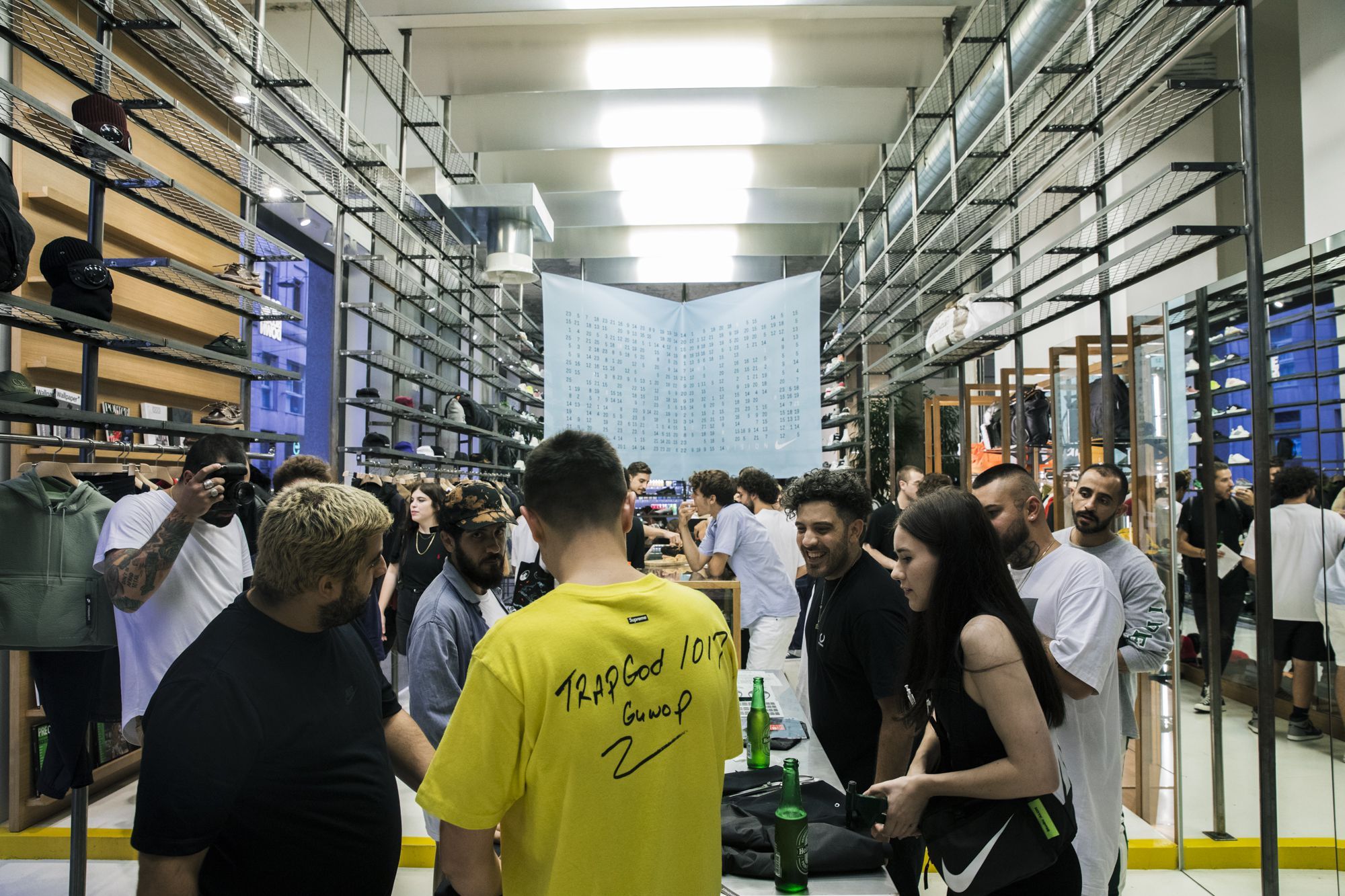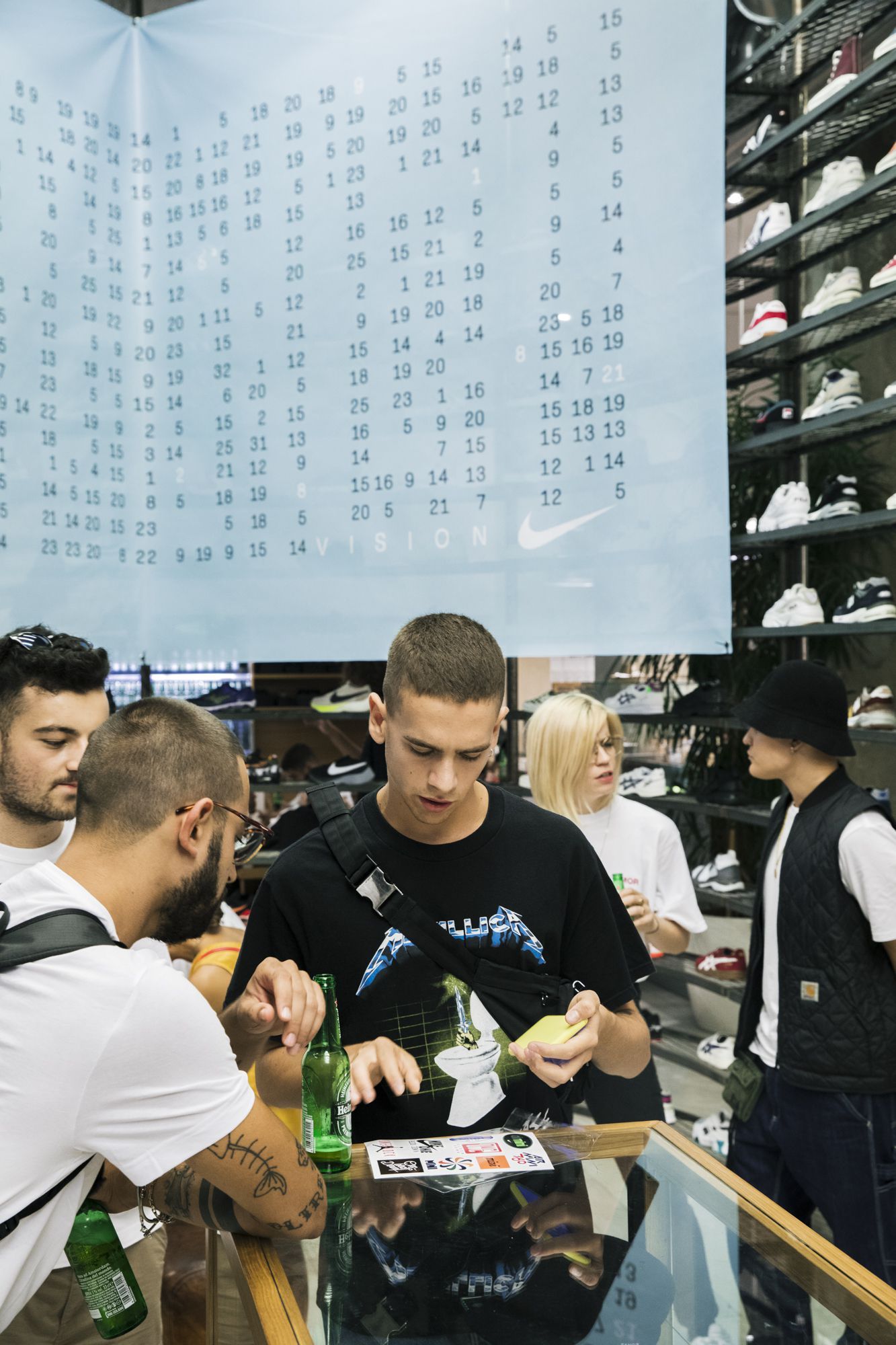 Venerdì 14 Mini Swoosh ha fatto gli onori di casa da NikeLab con una serie di customizzazioni realizzate insieme ai ragazzi di One Block Down. Lo store milanese è diventato poi la location del closing event di sabato, con ospite sempre Mini Swoosh, per una serata rilassata con amici e qualche drink, perfetta conclusione del progetto Nike Tech Pack.