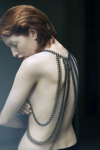 Una parure di back chains, necklace, bracciali, polsini, spalline stratificate, guanti ed ancora dress armor ideati da una designer promettente, che ha regalato alla parola "accessorio", un significato totalmente nuovo e che ci trascina in una dimensione Warrior Glamour all'insegna del durabile.