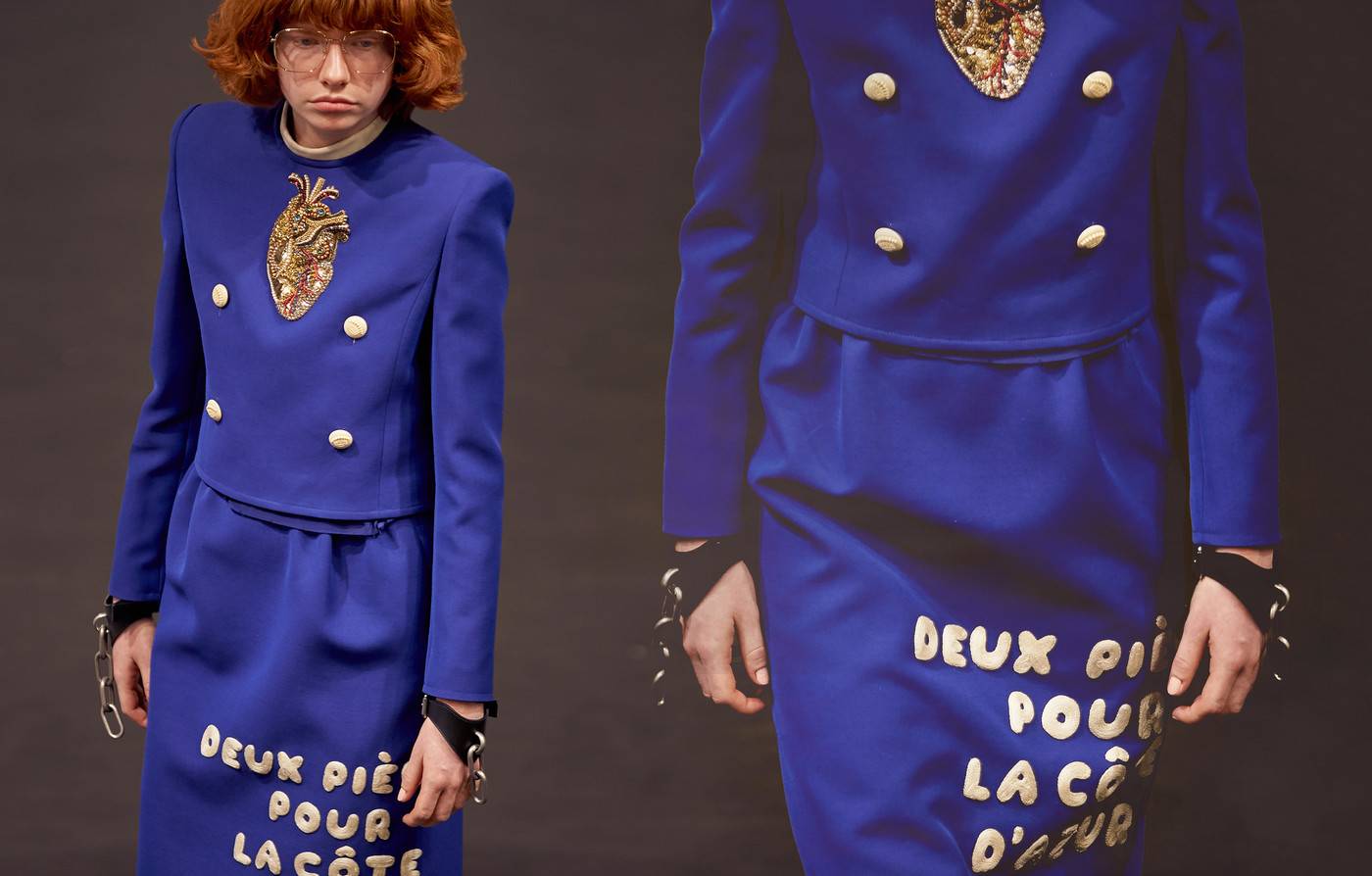 Buio in sala. Un leggero brusio di voci in sottofondo viene spezzato dalla proiezione di una versione underground e sperimentale di Lady Machbeth, ad opera di Leo de Bernardinis e Perla Peragallo. I due artisti sono esponenti del movimento teatrale delle Cantine Romane, un fenomeno nato negli anni ‘60 caratterizzato dall'unione tra cultura alta e cultura popolare. Come Michele è capace di mescolare tutto, dall’arte rinascimentale a Topolino. “Volevo cambiare le regole del teatro tradizionale”, dice il designer di Gucci, deus ex machina di un ribaltamento upside-down della sfilata che, invece di procedere dalla parte anteriore verso il centro, segue la direzione opposta. Così, mentre gli ospiti, seduti sulle poltroncine del teatro, stanno guardando il filmato, alle loro spalle, dal foyer della sala, iniziano a spuntare i modelli, che, illuminati da una luce fioca, sono saliti sul palco, dove sono rimasti fino alla fine dello show. Ad un certo punto la soundtrack composta da un mix di suoni da rave, stralci di brani dell'opera e rumori metropolitani, viene spezzata dalla performance live della leggendaria Jane Birkin che canta “Baby Alone in Babylon”. Il sipario si chiude e iniziano gli applausi.