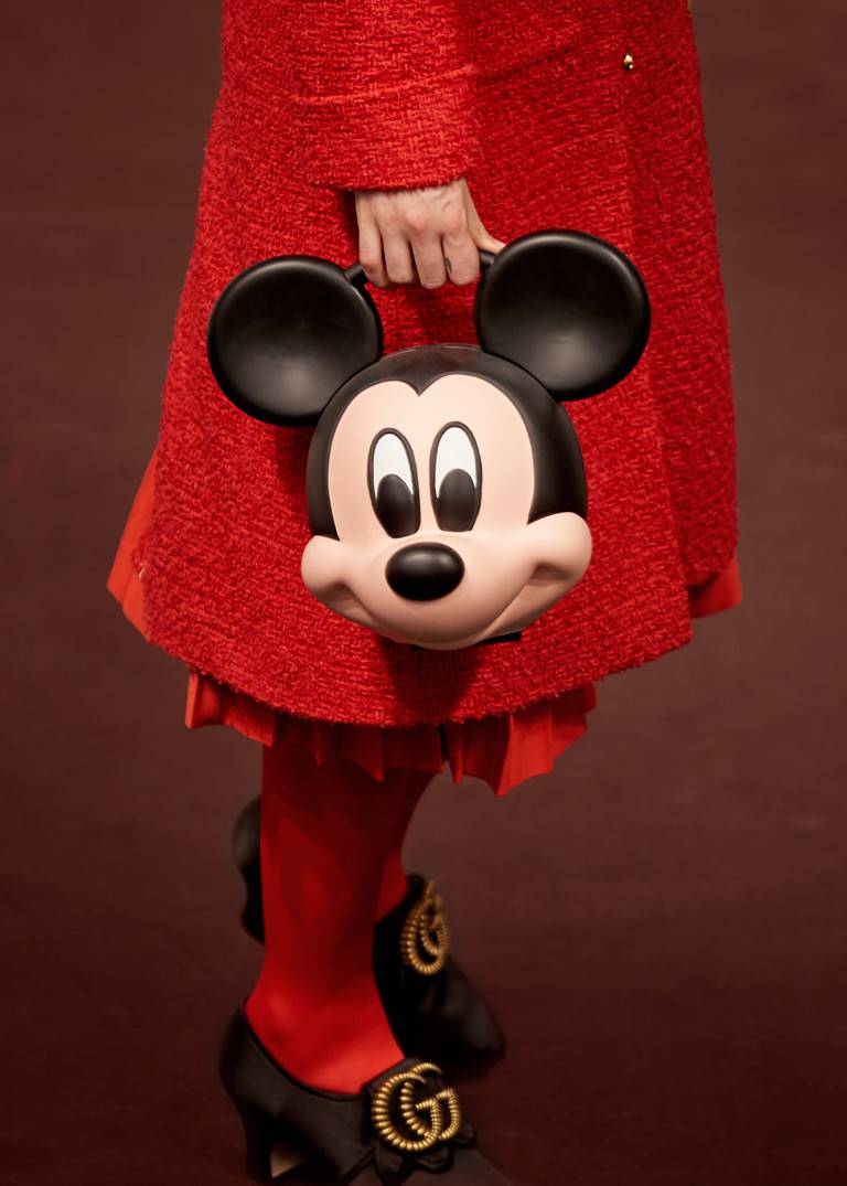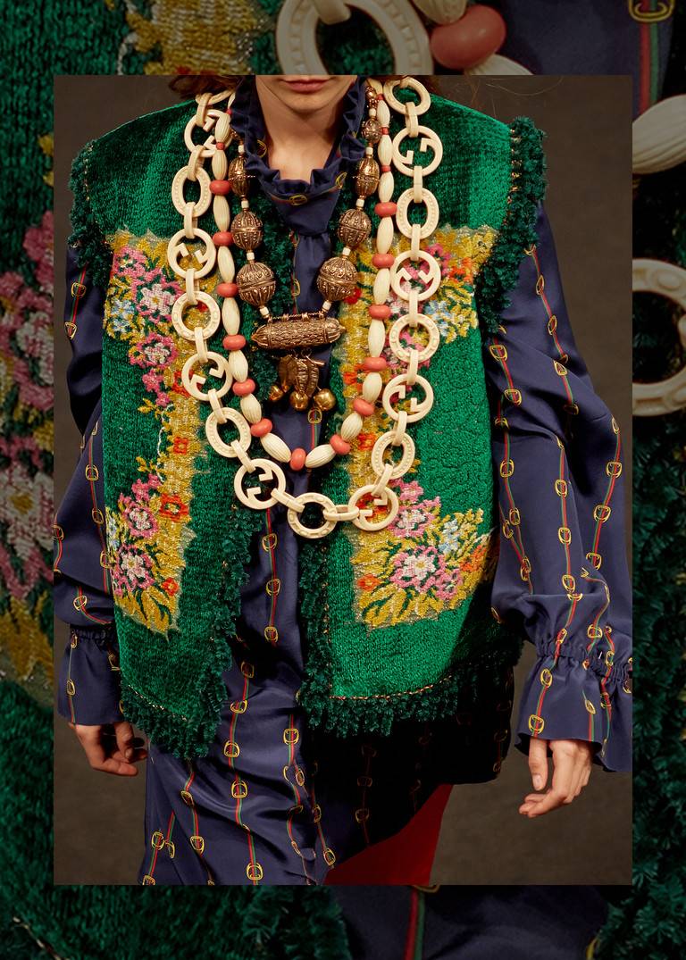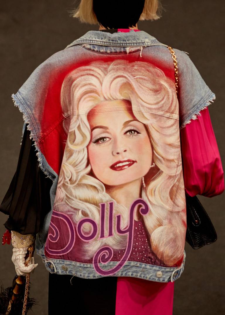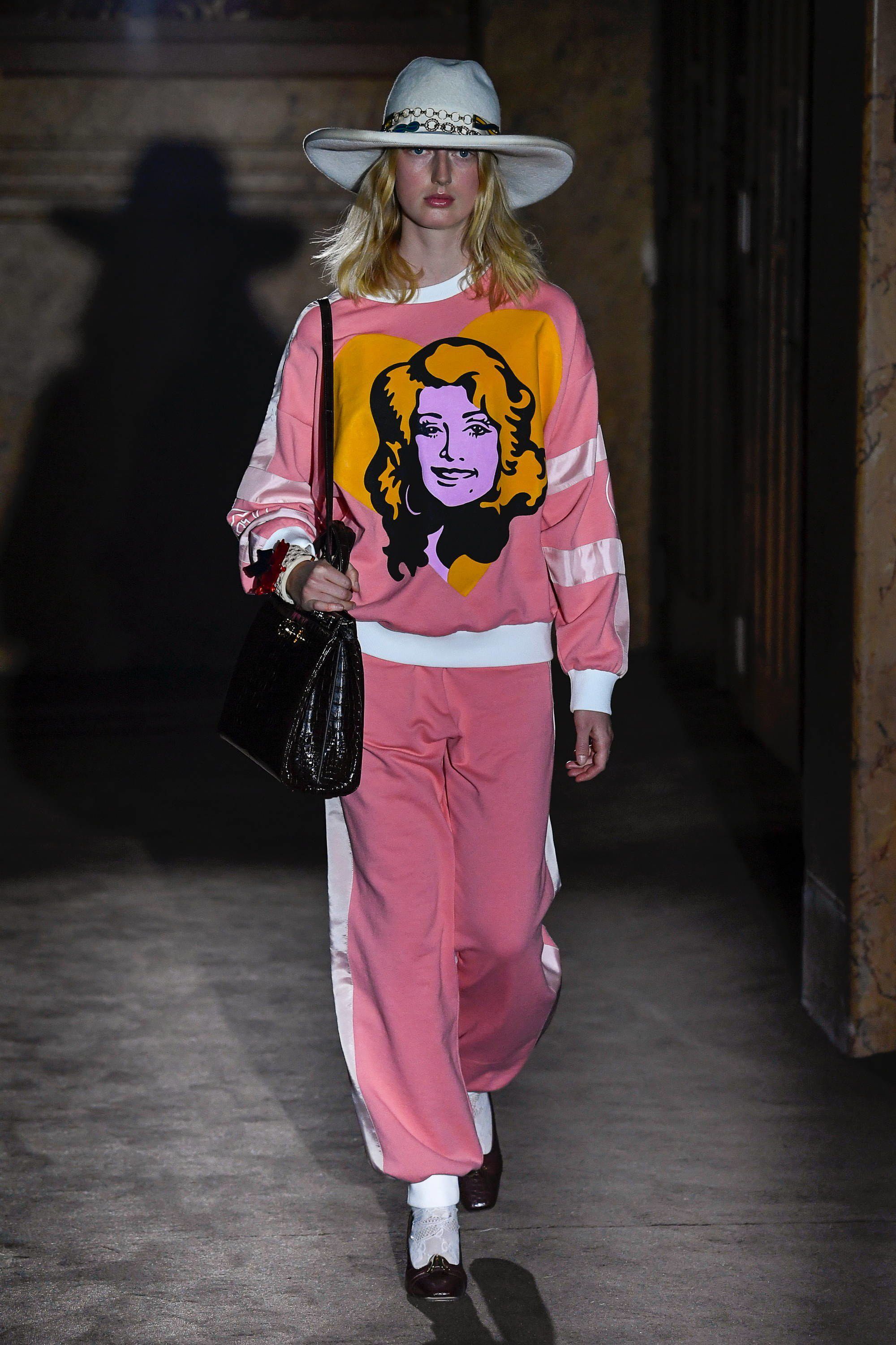 Torna Gucci e torna l’estetica schizofrenica, stratificata, fatta di mille ispirazioni e rimandi, di Alessandro Michele. Per la SS19 il designer romano continua a declinare il suo universo onirico, tra omaggi alle icone della musica, da Janis Joplin a David Bowie, ma anche a Dolly Parton ritratta su maglie e gilet in denim; borse a forma di Mickey Mouse; party-girl del passato come Josephine Baker; ispirazioni anni ’60 e ’70 e molto altro ancora. Come al solito, la nuova collezione è fatto di mille dettagli, opulenti, ridondanti, iconici. Ovunque si posi lo sguardo è un moltiplicarsi di rouches, maniche ampie, cristalli, frange, lurex, stampe, abiti plissettati, pantaloni a zampa, maxi collane, occhiali da sole extra-large, cappelli. Il dettaglio destinato a diventare un trend? Lo smalto applicato solo su alcune unghie. Il dettaglio più strano? L’astuccio penico, cioè una conchiglia usata in passato sopra le calzamaglia da uomo per coprire le parti intime, ma anche pappagalli appollaiati sulle spalle dei modelli. Come per magia, un incantesimo di cui solo Michele e pochi altri conoscono la formula, tutto il kitsch potenziale diventa armonia, bellezza.