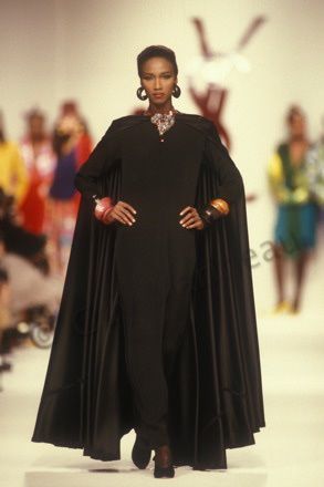La sfilata AW89 di YSL era stata chiusa da un'altra carissima musa di Yves. La bellissima modella guineana Katoucha Niane indossava un abito nero fino alla caviglia che incorporava un'ampia cappa nera chiusa al collo da un gioiello in diamanti. La sfilata SS19 di ieri si è chiusa con l'ennesimo omaggio ad Yves: la modella Julia Nobis, sopra a pantaloni neri e camicia trasparente, portava proprio una cappa nera.