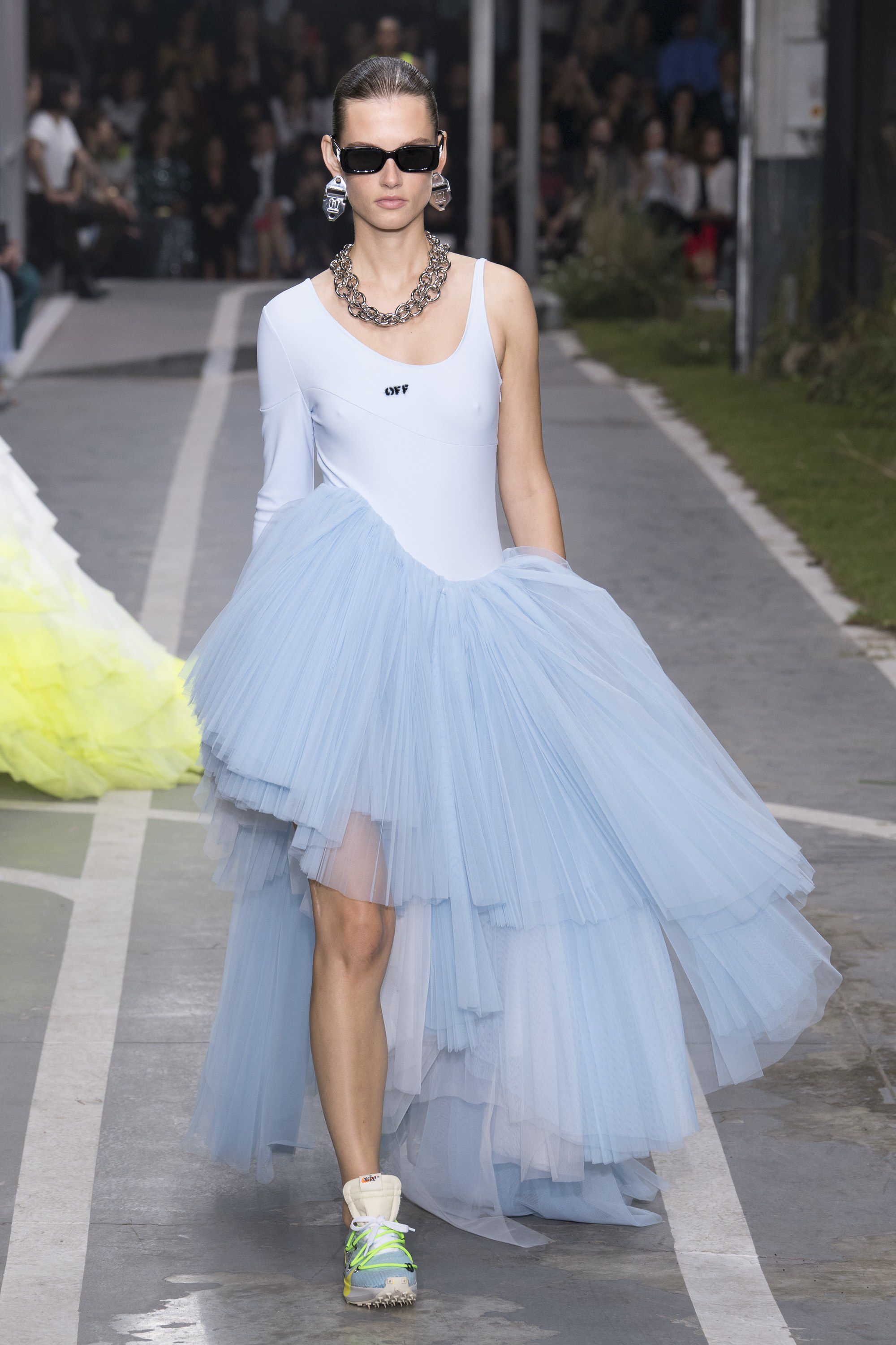 Cosa è successo alla sfilata SS19 di Off-White Virgil ha portato in passerella Swoosh e ampie gonne in tulle