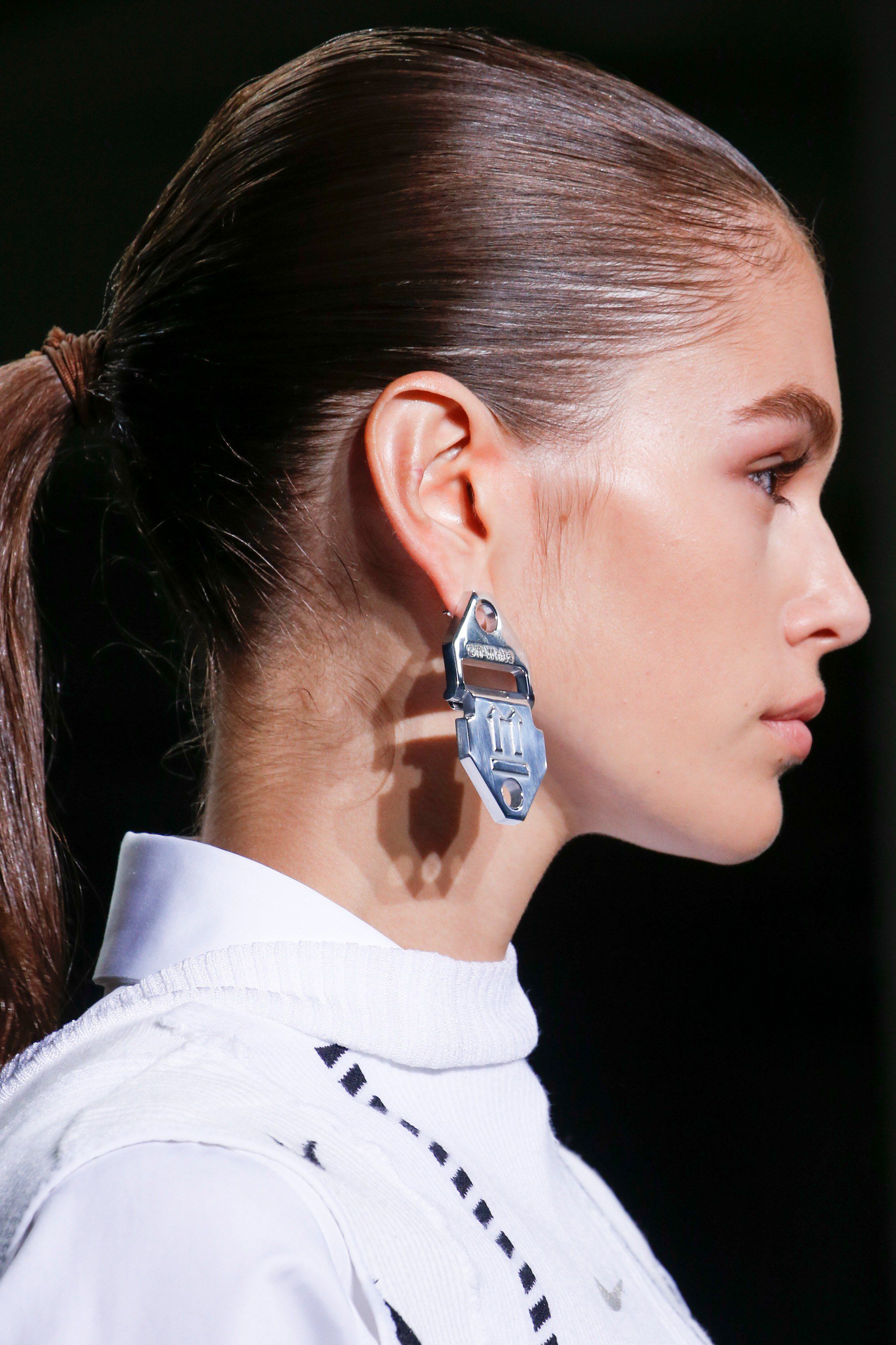 Lo show era intitolato “Track and Field” e fin dagli inviti l’ispirazione è stata chiara: al posto delle classiche buste, Abloh ha realizzato delle vere e proprie pettorine, di quelle che gli atleti indossano durante le gare, attaccandole alle divise con delle spille da balia. La conferma è arrivata al primo sguardo al setting della sfilata, una riproduzione di una vera e proprio pista di atletica, con tanto di corsie, ciuffi d’erba che spuntano dall’asfalto, tabellone con nomi e nazionalità degli atleti (in questo caso le modelle) e quadranti a tenere il tempo. “Track and Field” è anche il nome della linea di Nike dedicata all’atletica, in particolare con sneaker disegnate appositamente per la pista, e lo Swoosh ha avuto un ruolo di primo piano in questo show.