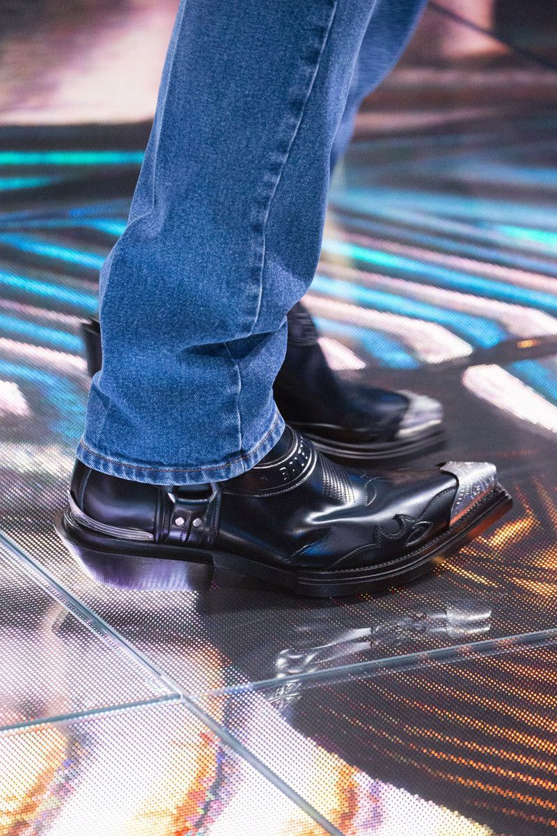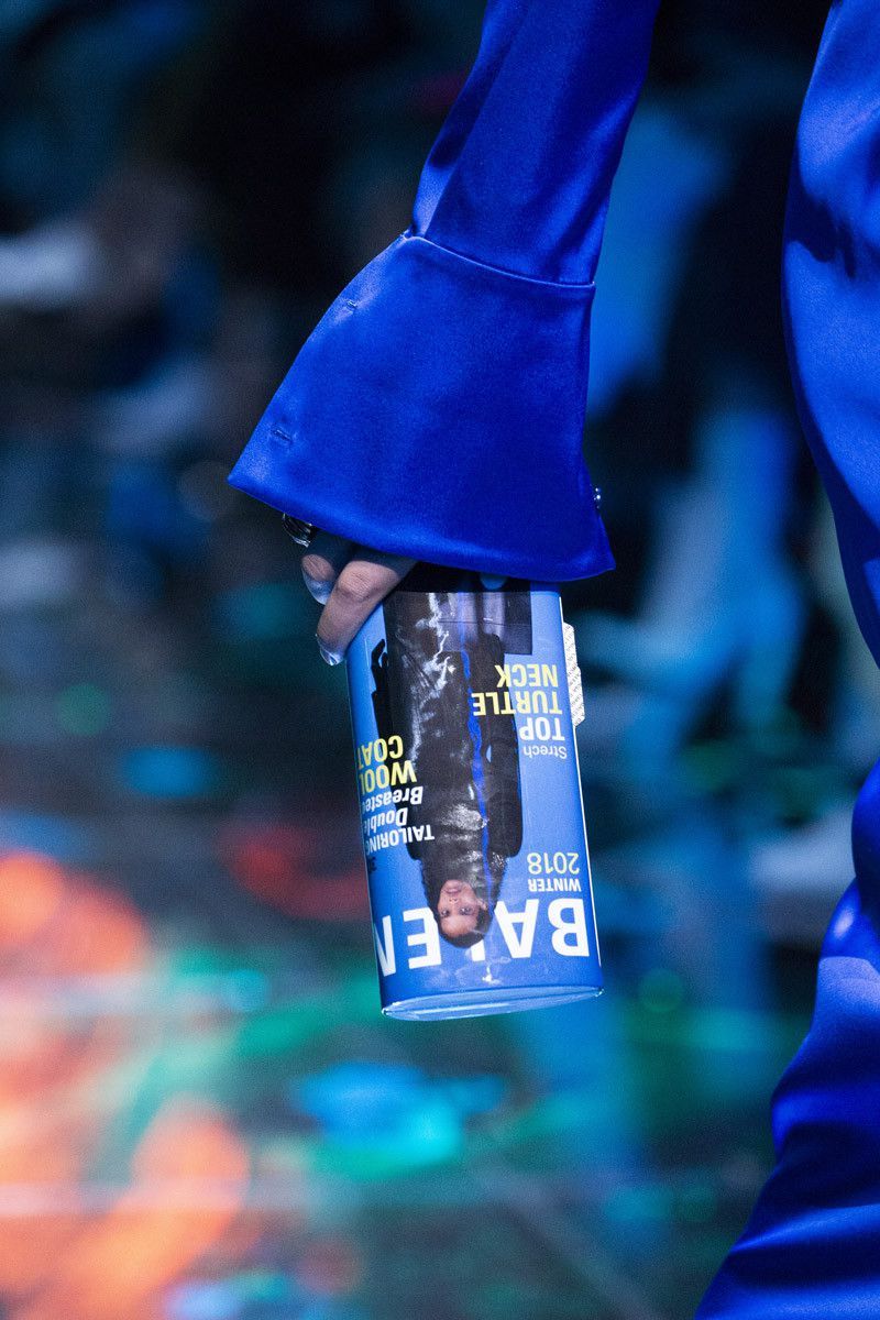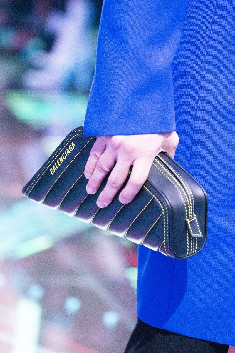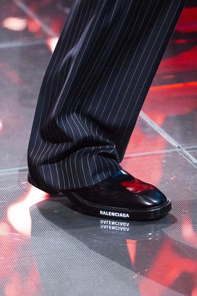 Anche gli accessori non hanno deluso. Boots second skin fino alla coscia con punta quadrata, pochette a trapezio in pelle con logo, stiletto a punta con cinturini, che andavano a decorare anche le borse più grandi, mentre per l’uomo ci sono semplici stringate nere in pelle e cowboy boots. Demna, nella sua evoluzione in designer di moda "adulta", non ha portato in passerella nessuna sneaker.