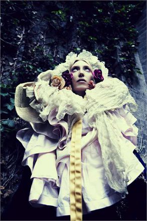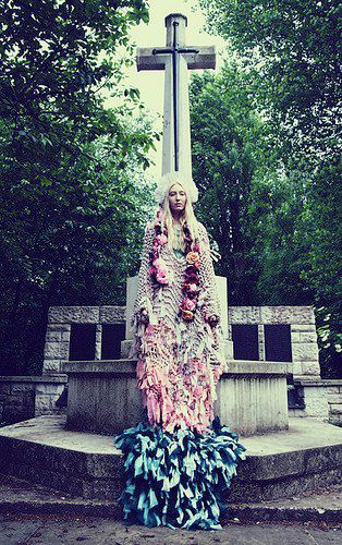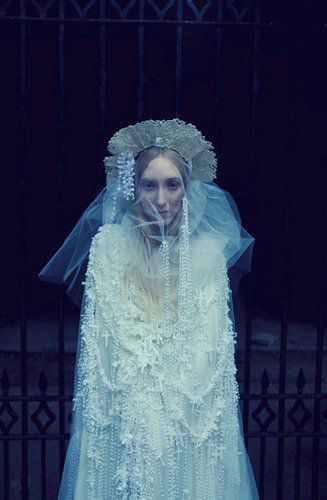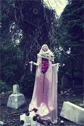 Una luce bianca, sospesa, quasi ghiacciata, grotte fiabesche, una natura magica e silenziosa, quel silenzio che solo le lapidi di un monumento funerario possono racchiudere e restituire, quasi fosse un segreto prezioso e raro da proteggere in punta di piedi. Questo il mondo nel quale si collocano, statuarie e surreali, le creazioni di Sorcha O'Raghallaigh. Opere d'arte, avvolte da una luce quasi divina, che fa esplodere i colori nella loro freddezza e i tessuti nella loro intricata imponenza.