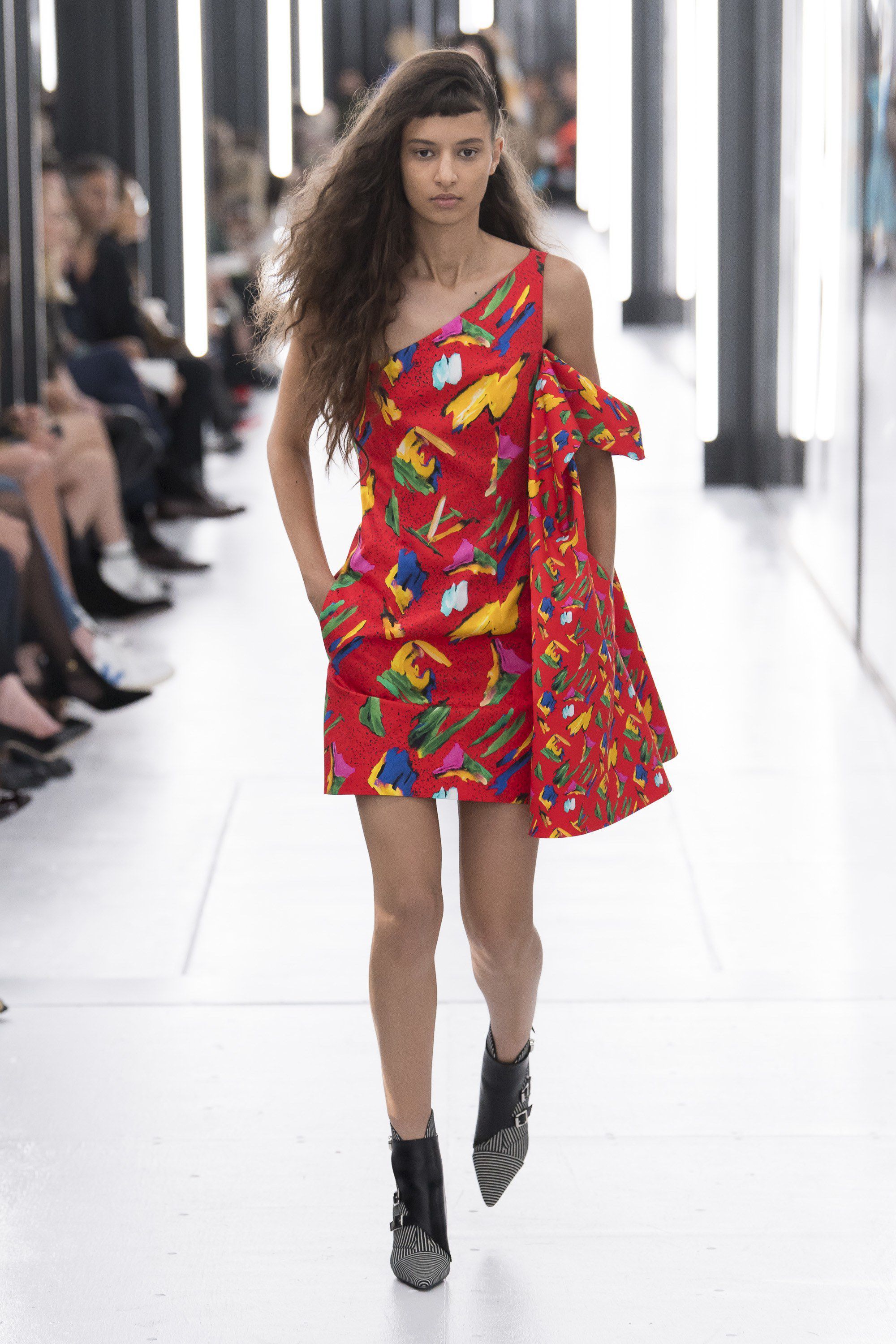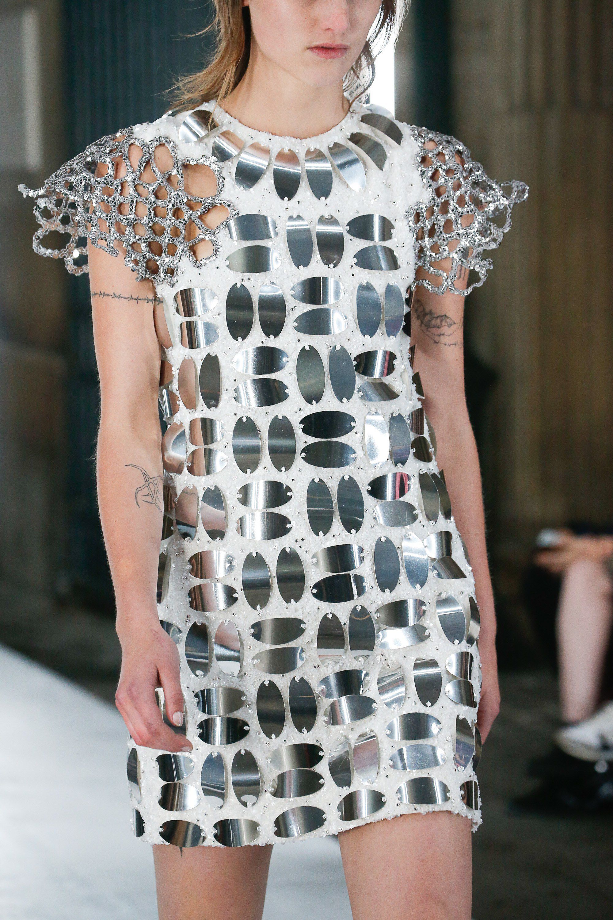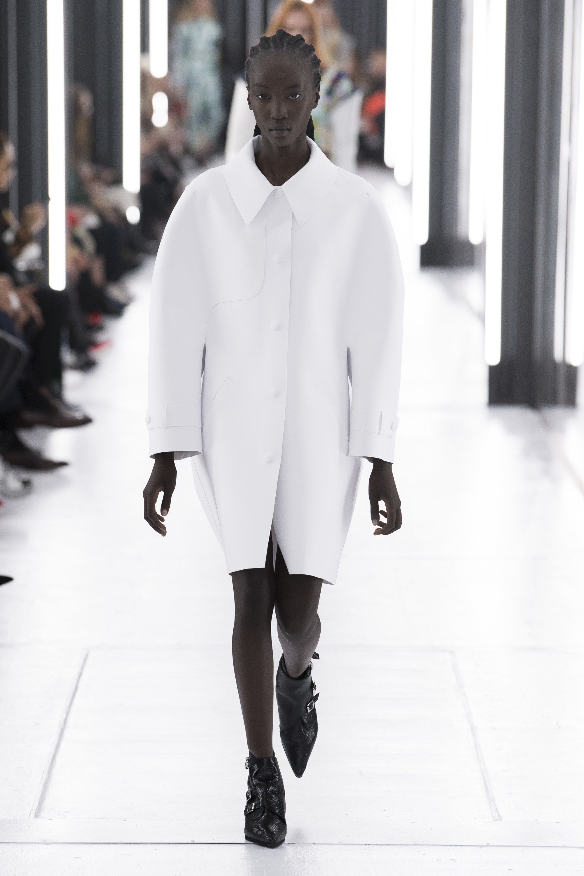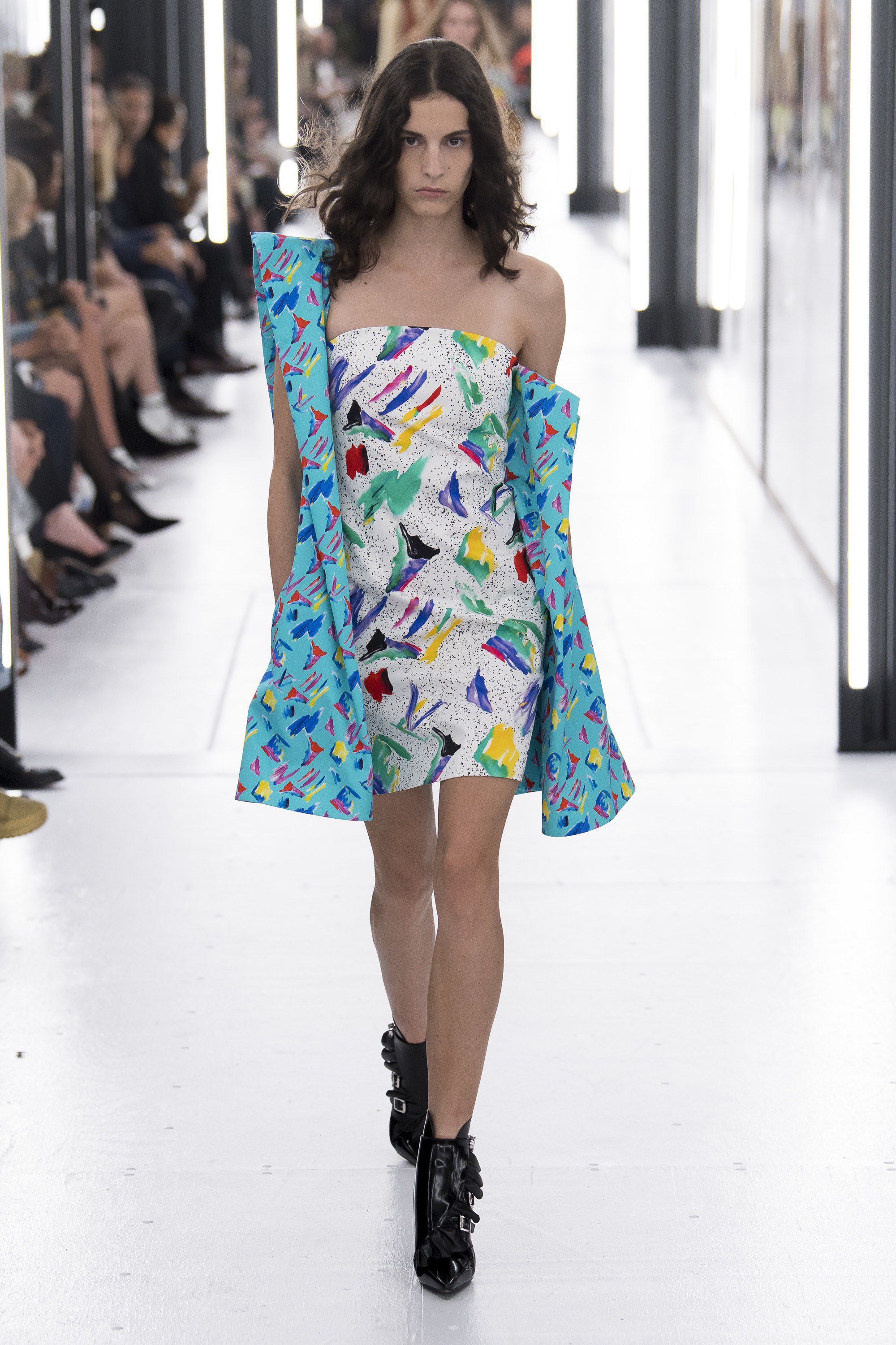 Come per Demna da Balenciaga, questa stagione il tema del futuro sembra essere molto caro ai designer. Ghesquière ha raccontato che per questa collezione ha voluto esplorare il rapporto tra la realtà virtuale che viviamo tutti i giorni sui social media e la vita reale. Questo contrasto è stato declinato attraverso silhouette di ispirazione anni Ottanta abbinate a capi in plastica modellata, maniche da tuta spaziale, stampe del Memphis Group, il tutto nella cornice quasi anacronistica del Louvre, in versione futuristica.