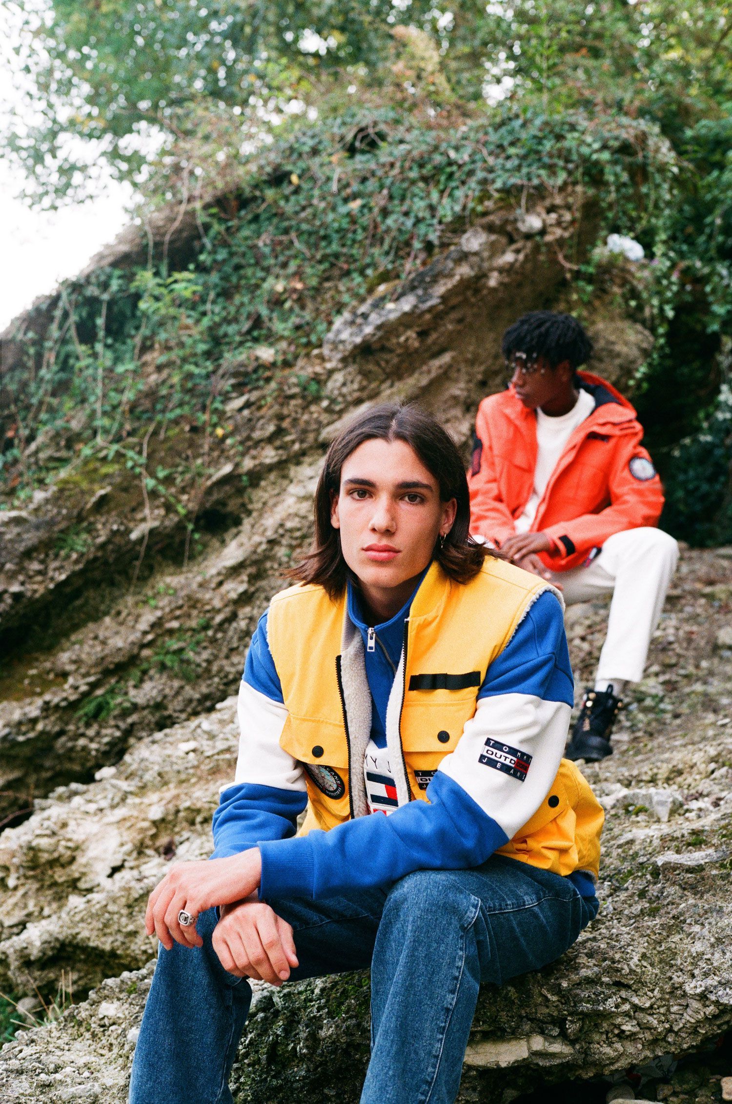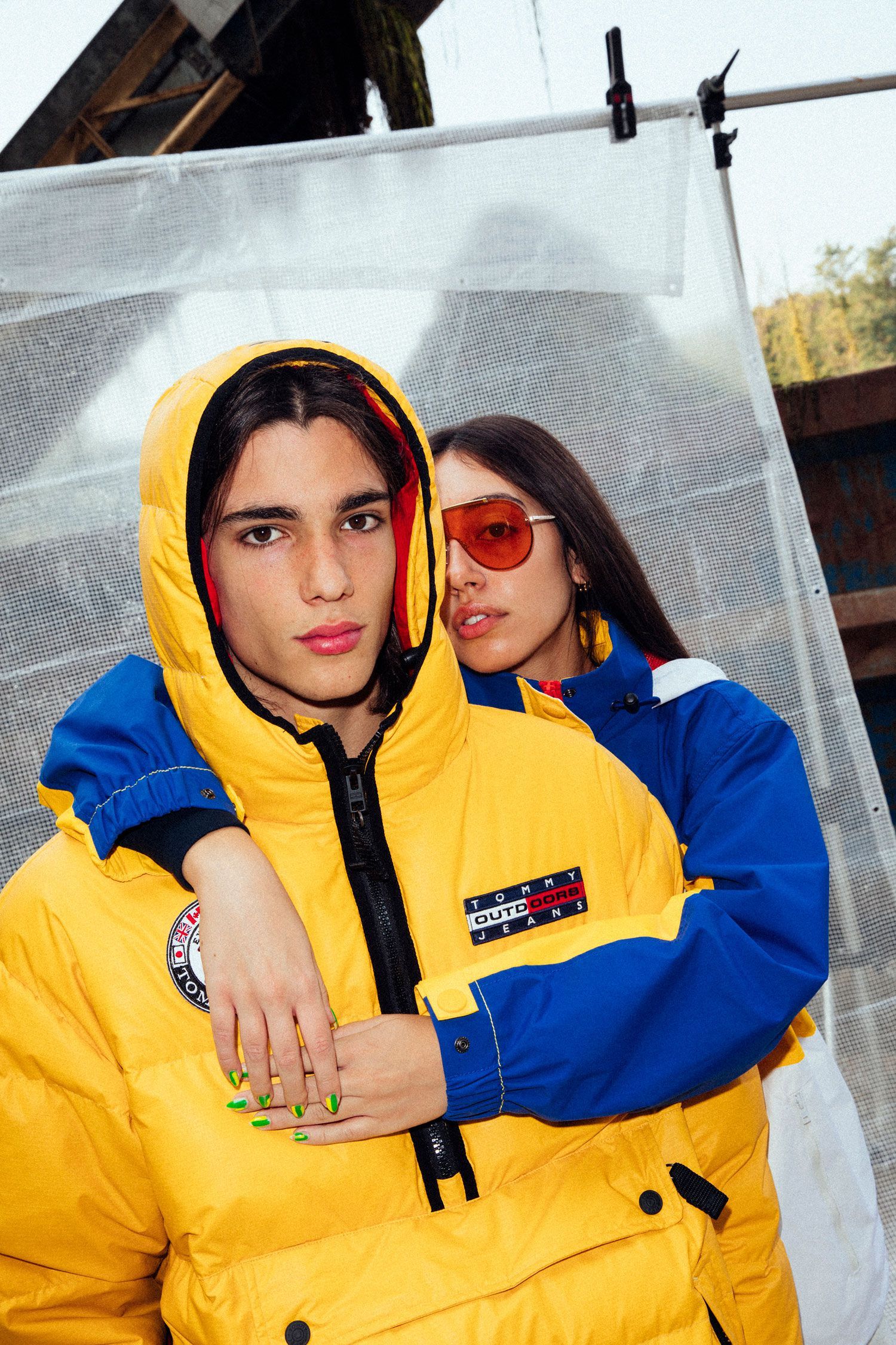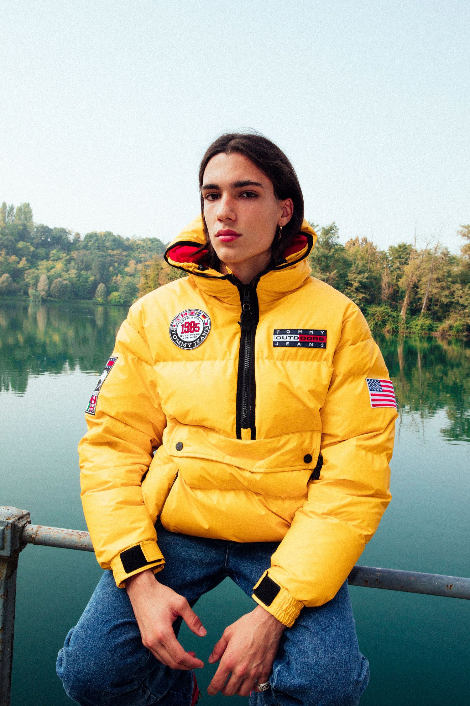 nss factory ha ritratto in questo shooting i capi must-have della capsule TOMMY JEANS Outdoors, come la puffer con cappuccio giallo lucido, la felpa con grafica oversize TOMMY JEANS sul retro e il gilet reversibile con tasche. L’heritage è rivisitato ed interpretato dai cool kids di oggi.