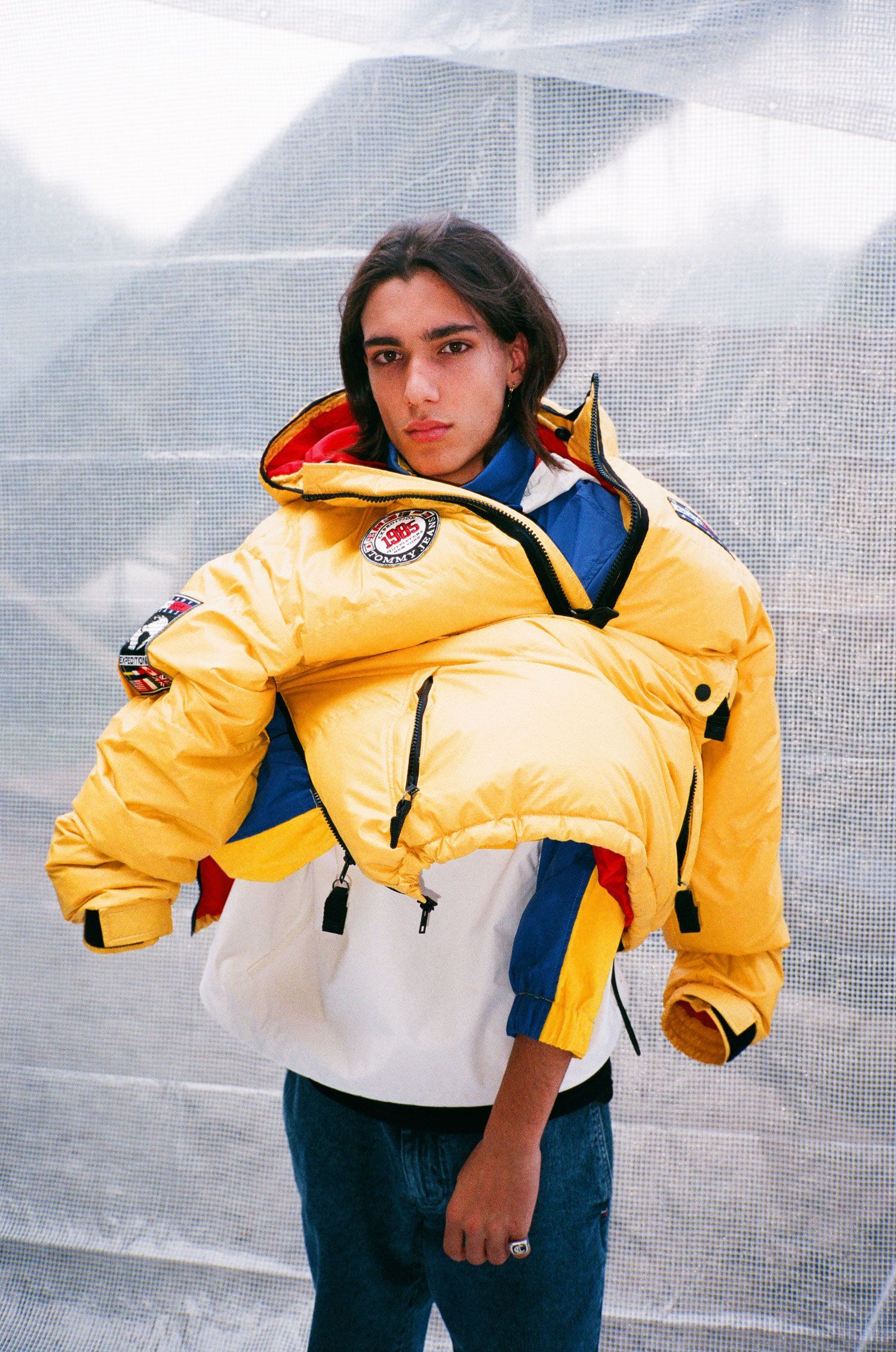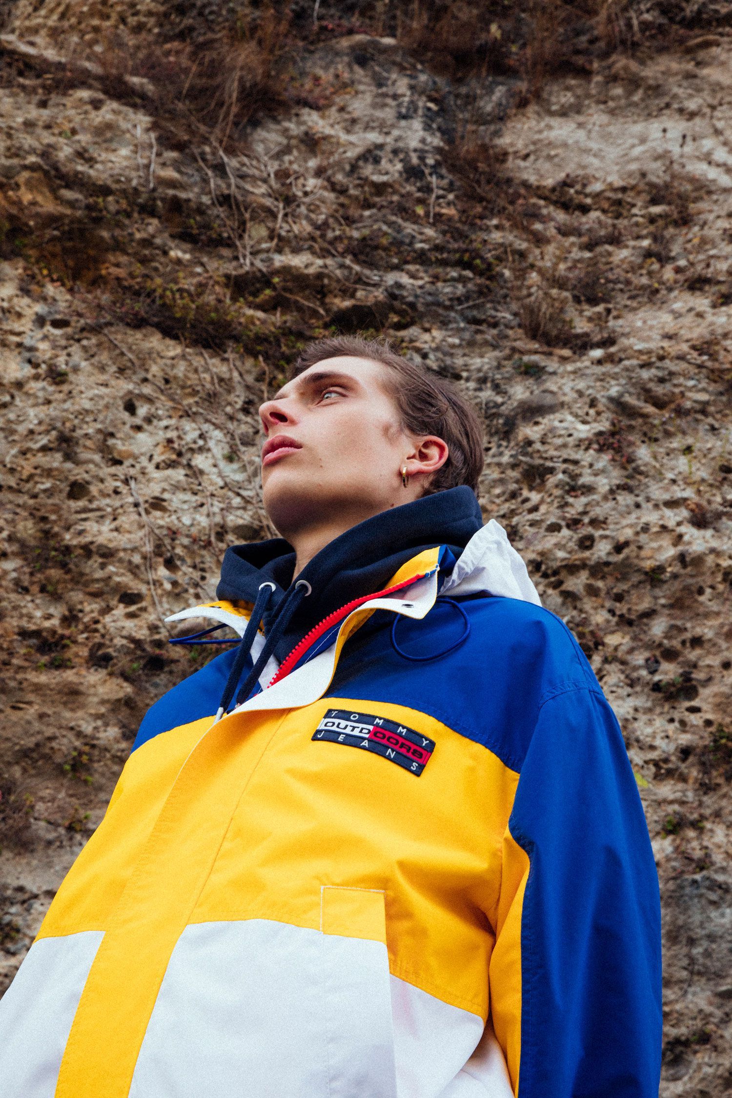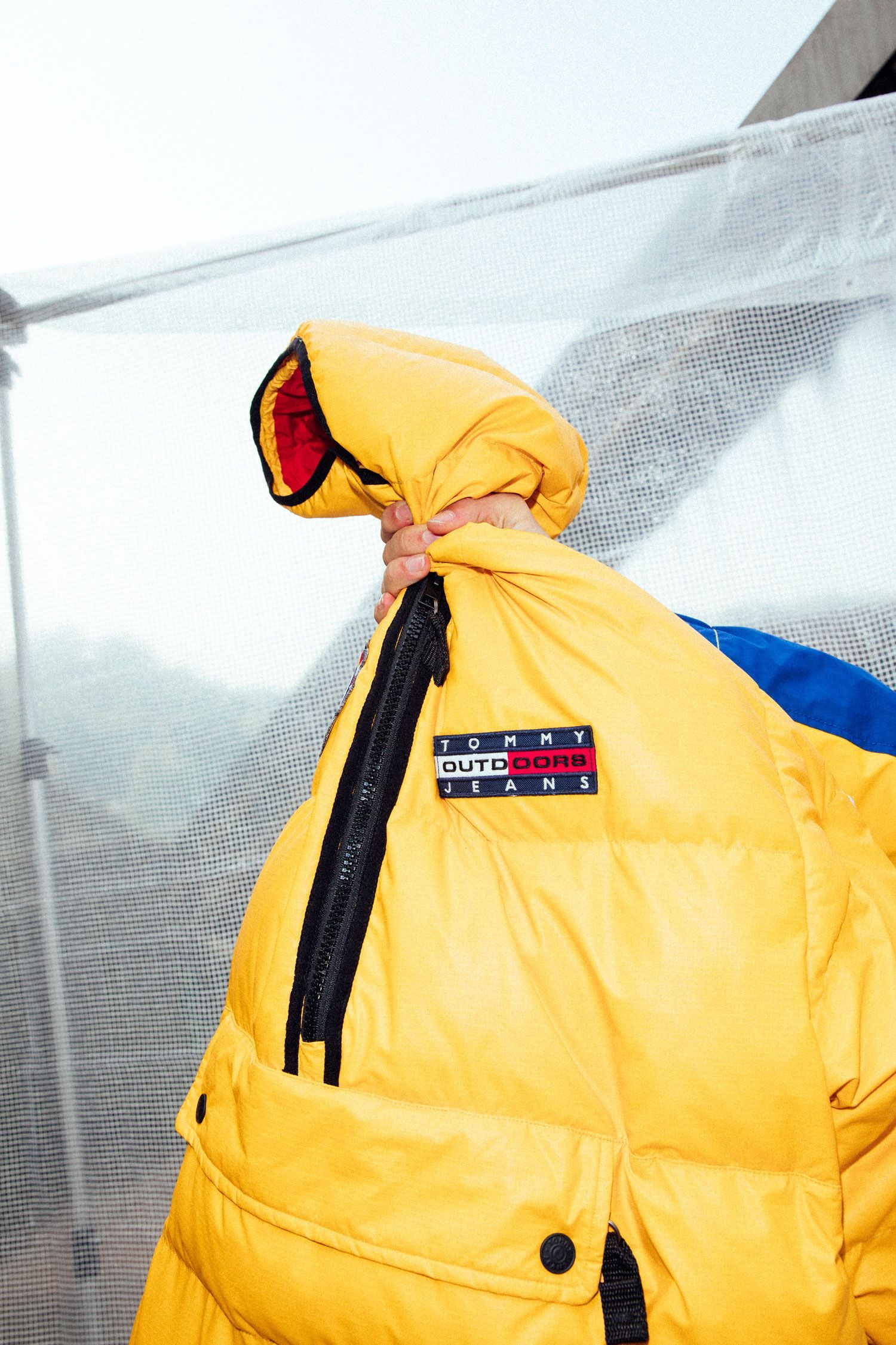 nss factory ha ritratto in questo shooting i capi must-have della capsule TOMMY JEANS Outdoors, come la puffer con cappuccio giallo lucido, la felpa con grafica oversize TOMMY JEANS sul retro e il gilet reversibile con tasche. L’heritage è rivisitato ed interpretato dai cool kids di oggi.