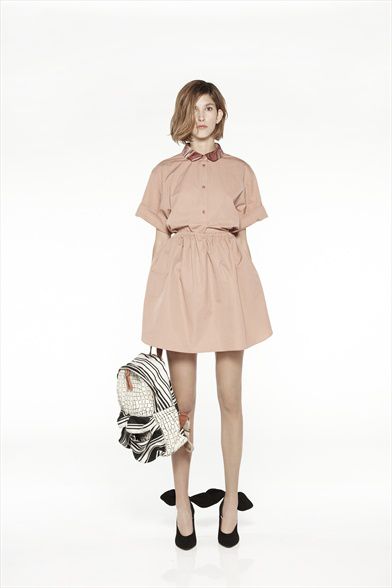 Così il brand per la sua collezione spring-summer 2011, non delude la sacrosanta Suzy Menkes , che lo avevo definito un marchio "with sense and sensibility", ed esalta il suo gusto preciso per il contrasto nel momento in cui jersey e gabardine di cotone si mescolano con lo chiffon di seta o con un tweed. Pudiche camicette dai colletti squadrati incontrano gonne drappeggiate dal taglio asimmetrico, abiti bustier si sposano con micro jacket dalle maniche gonfie e arrotondate e mini shorts a vita altissima mentre invece riscoprono la vita bassa i capri pants tendenti allo scampanato. Ed ancora giacche doppiopetto, zipped coat, mini shirts, camicioni, mini dress in shantung con esplosioni di stampe vulcaniche, cardigan, shorts che si aprono quasi fossero farfalle, capi con oblò laterali fasciati da mini cinture in pelle e belted cape. Il tutto in una esplosione di jersey, poplin, pinpoint jacquard, suede, seta, cotone e double crepe. Vestiti con profonde scollature scoprono bra in lino e cashmere incorniciando il petto ed esaltando la vita alta ed ancora camicette in nylon con colletti stampati in fantasia marmo seguiti a ruota da mini polo in khaki. Palette colori: blu mezzanotte, ceruleo, nero, carne, bianco ghiaccio e lavanda. Ciliegina sulla torta gli accessori, zainetti sofisticati piuttosto che pochette puntuali, bracciali in plastica, necklace in nichel e decoltè black or white arricchite da fiocchi che aleggiano vispi anche nel resto della collezione.