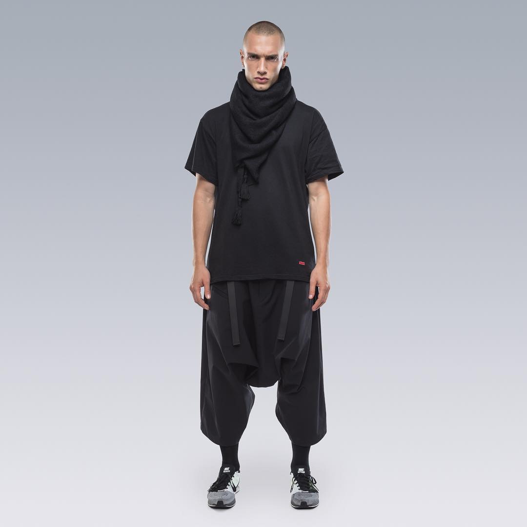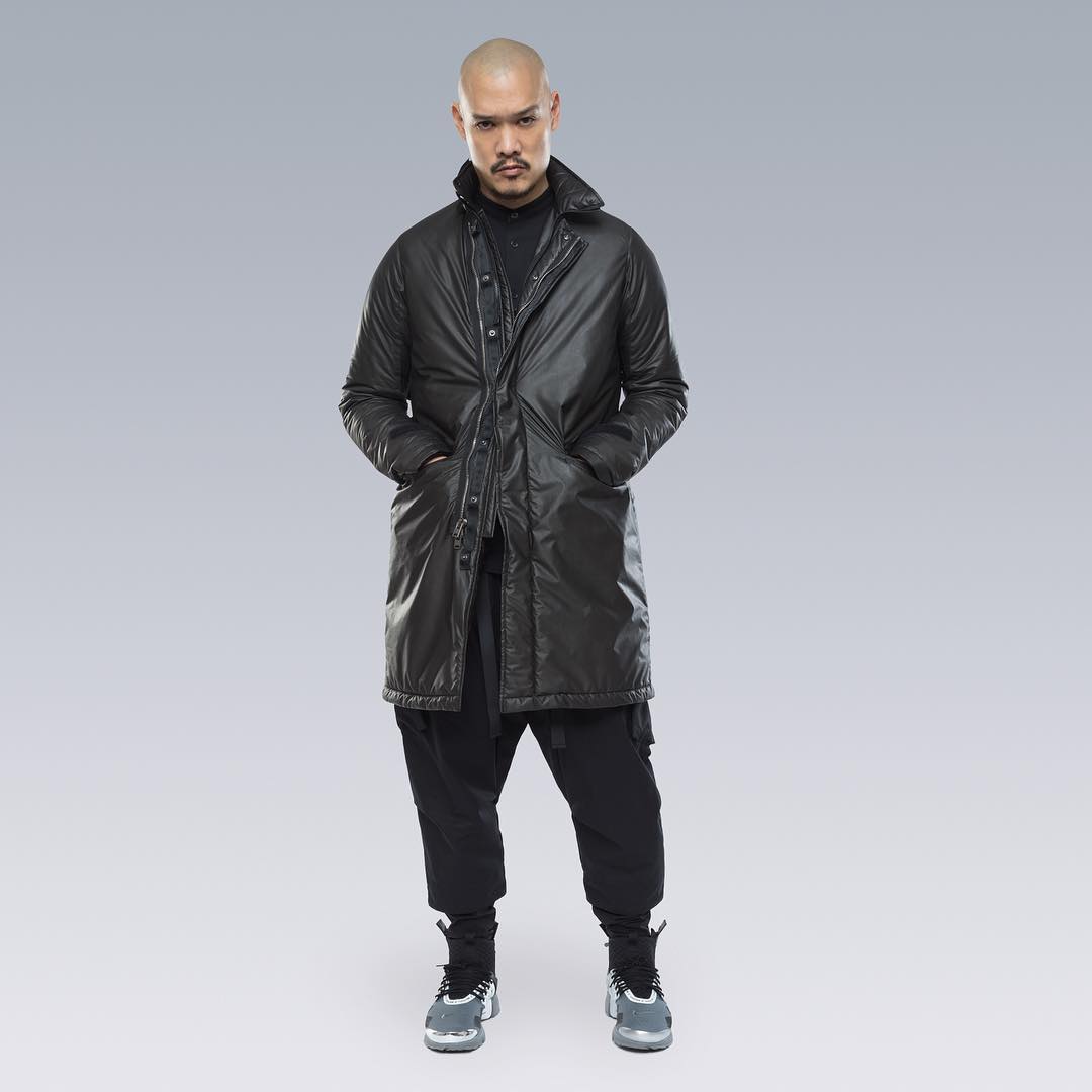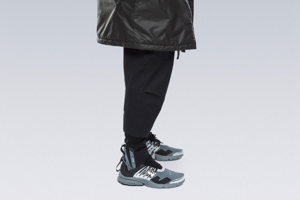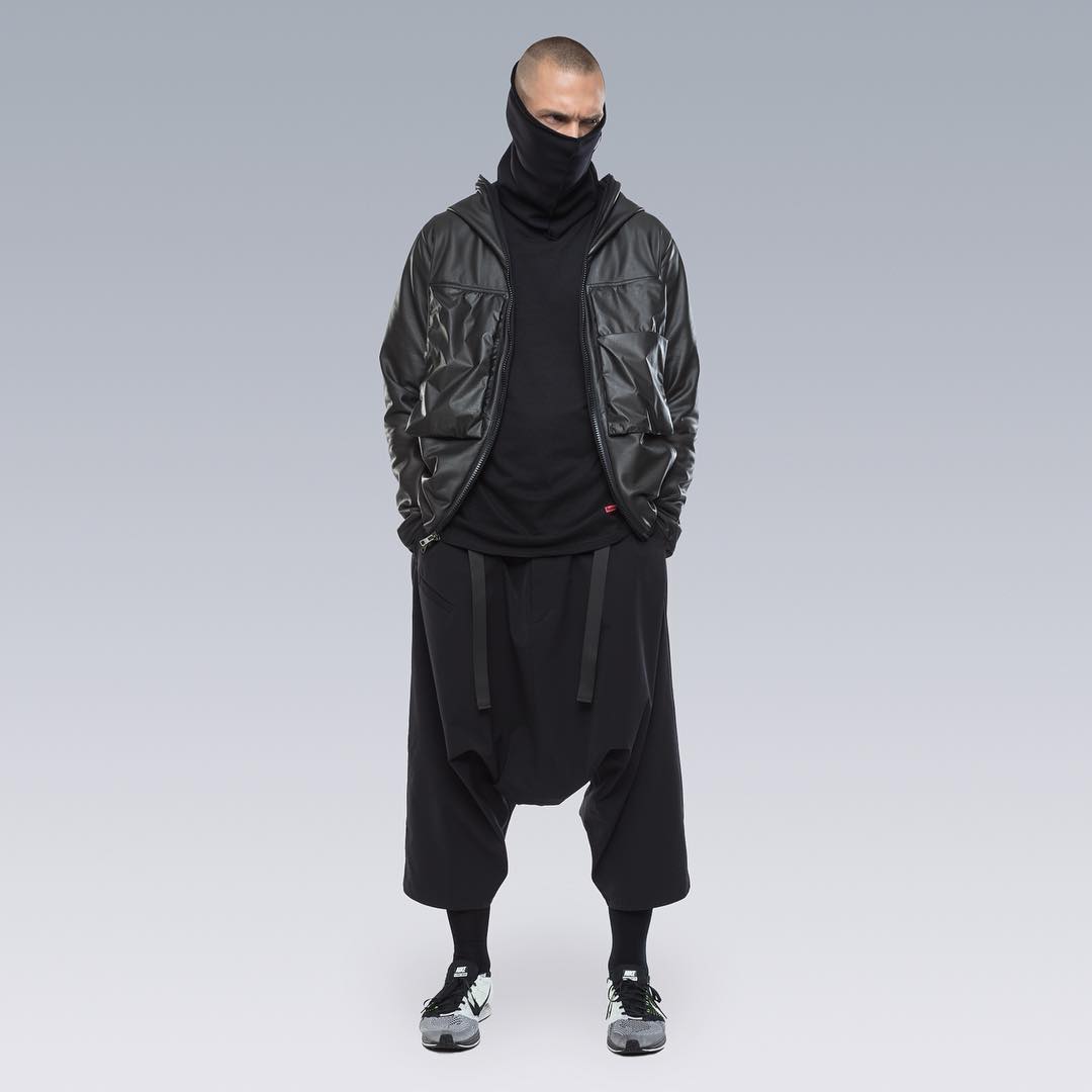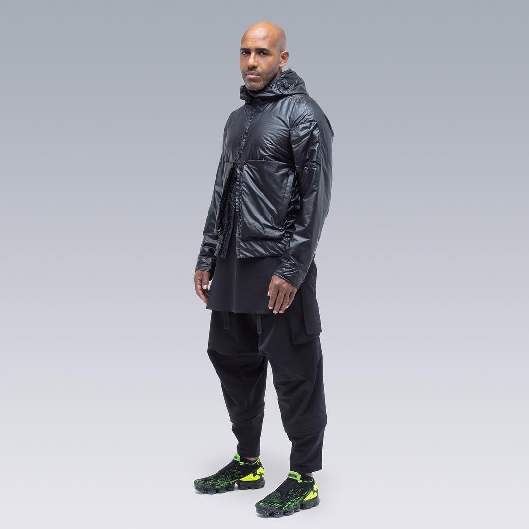 Nel mondo dell'abbigliamento tecnico, il brand ACRONYM® non ha praticamente rivali. L'attenzione per i dettagli e per la qualità, così importanti per il direttore creativo Errolson Hugh, non hanno eguali. Hugh è diventato famoso anche per i suoi drop annunciati sempre all'ultimo minuto, come quello di oggi, probabilmente l'ultimo della collezione FW. Il drop di oggi comprende diversi item di colore bianco, una colorazione che non veniva utilizzata dalla prima collezione del brand, e che Hugh aveva riscoperto per la collaborazione ACRONYM® x Nemen (con sprazzi di rosso per le felpe), e nei capi disegnati per la linea ACG di Nike. Nonostante non ci siano state conferme ufficiali, possiamo annunciarvi che alcune delle giacche e dei look della nuova collezione sono stati realizzati nel nuovo tessuto GORE-TEX INFINIUM™, un materiale più morbido e flessibile rispetto a quelli utilizzati abitualmente, ma che offre comunque una protezione completa da tutti gli agenti atmosferici. Gli osservatori più attenti avranno potuto notare che nel lookbook si intravede una nuova colorazione della sneaker ACRONYM® Nike Presto, mai vista prima, in grigio e argento, probabilmente la prossima colorway che verrà lanciata.
