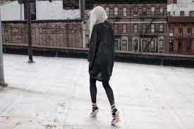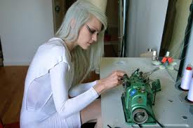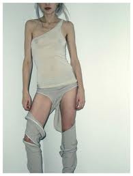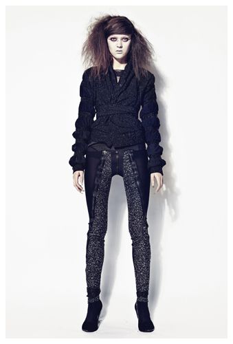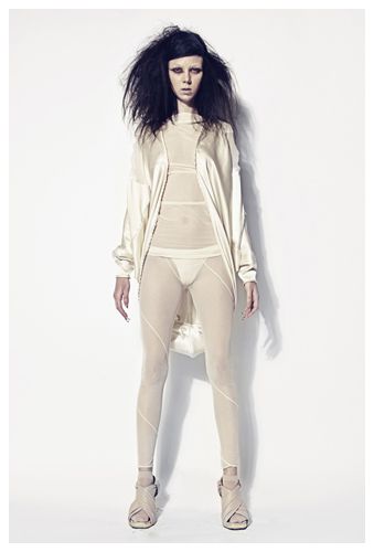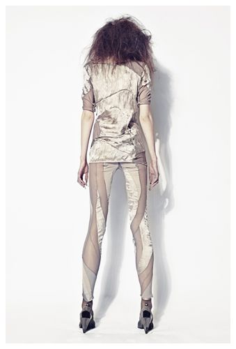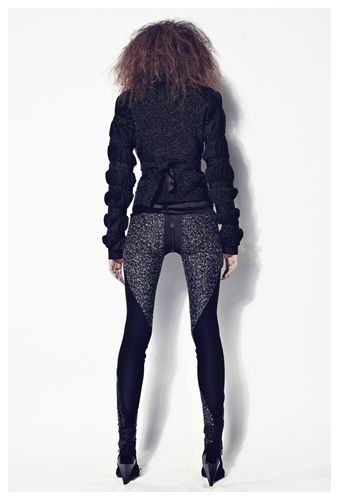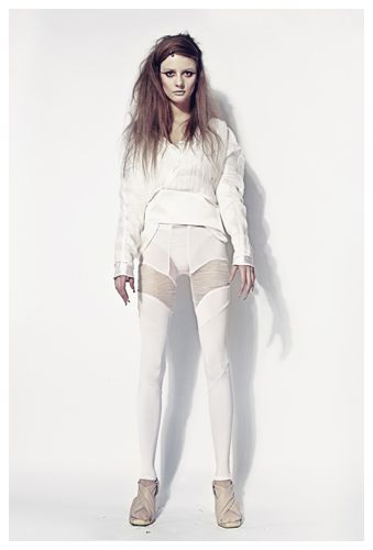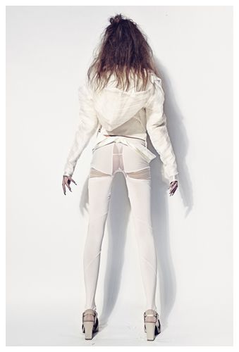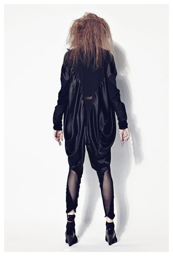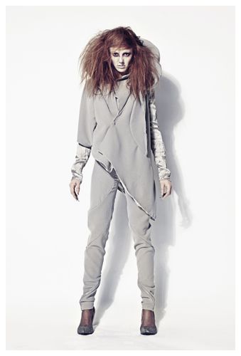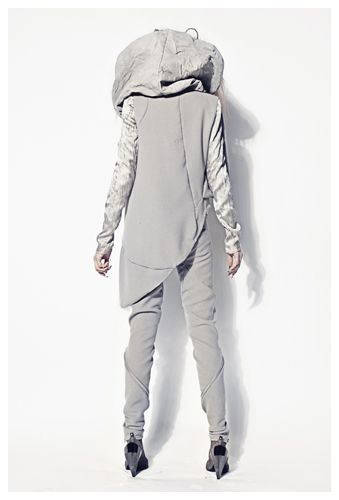 La stessa Katie ci racconta della sua avversione nei confronti dei vestiti nell’infanzia. Odiava indossarli e preferiva portare il suo gatto come copricapo piuttosto che un abitino da vera paper doll. Dal giorno della sua laurea alla “Rhode Island School of Design” insegue il suo progetto di moda polimorfa, che cambia a seconda dell’evoluzione delle influenze di chi la sta producendo e di chi decide di indossarla. Oggi prevalgono giacche frack, da portare con leggings effetto nudo, over shirts laminate ed intrecci scintillanti. La stilista sceglie tre colori base che si ripetono nelle varie sfumature: il nero, il color ghiaccio ed il beige.