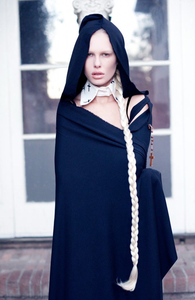 Preferiamo a questo punto privilegiare e dare risalto al tentativo maledetto di alcune nicchie del mondo della moda. Un nome su tutti, Dime Piece, marchio womenswear statunitense guidato da Ashley Jones e Laura Fama. Dime Piece si propone come significante di un messaggio positivo e di speranza creztiva dietro un’immagine tetra, cupa e maledetta. Algidità, colori scuri, trasparenze e croci sono alla base del progetto delle giovanissime designers from LA. Altro esempio sui generis quello di Gail Sorronda, designer Australiana sulle scene della moda dal 2007, che ci propone una donna maledetta, elegante e austera. Il suo total black è romanticamente figlio di una visionarietà al limite tra il posseduto e la santità di nomi della moda quali Azzedine Alaia, Madaleine Vionnet e Rei Kawakubo. Un alone di misticismo e sperimentazione che si avvicina all’Europa per essere vicina agli altari del fashion system, rimanendo comunque un livello più su della terra del consueto.