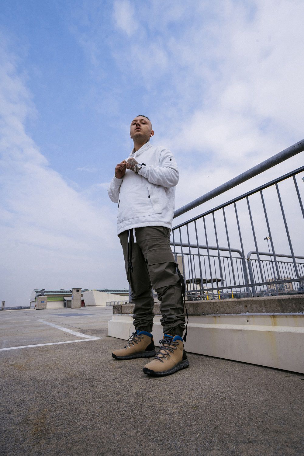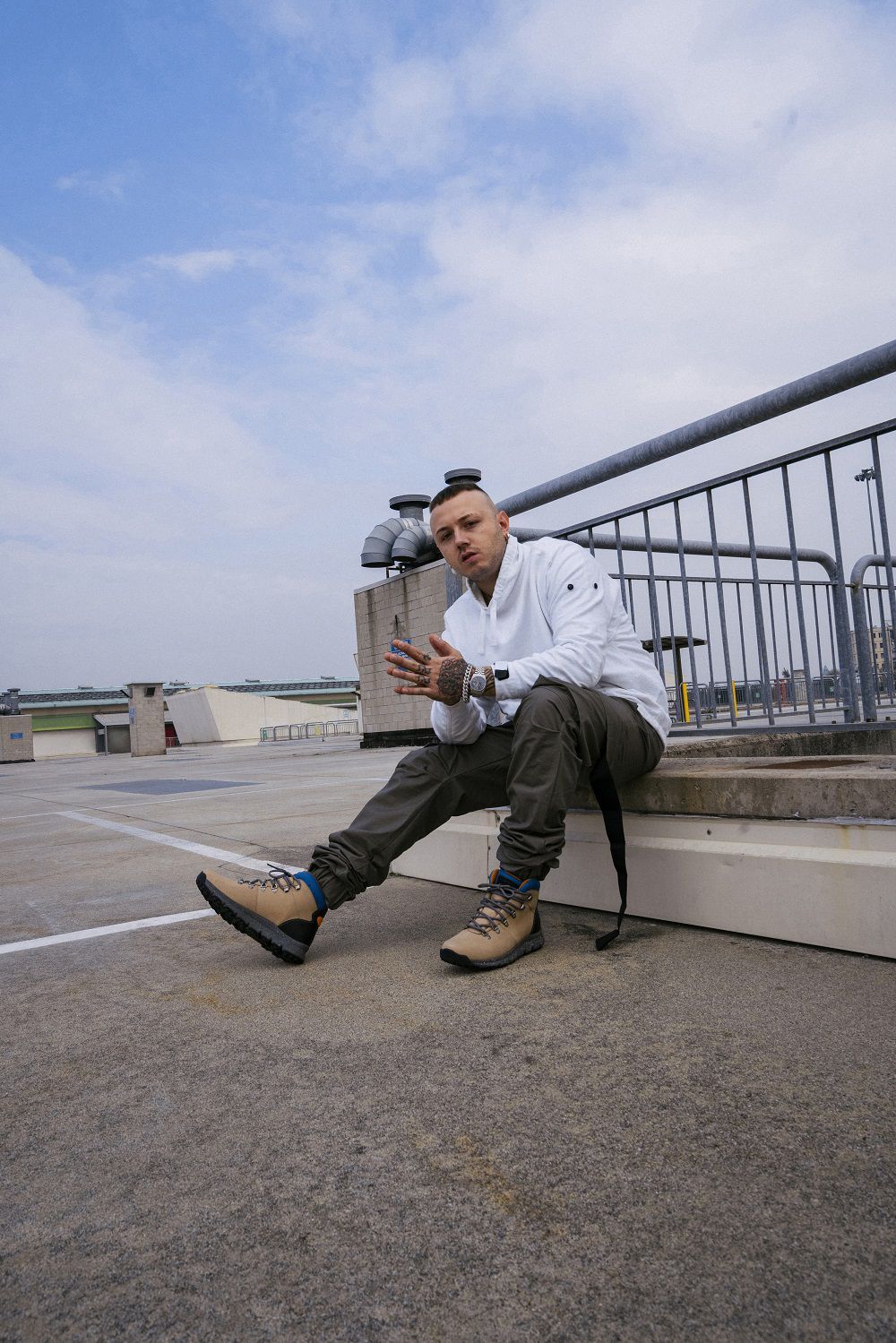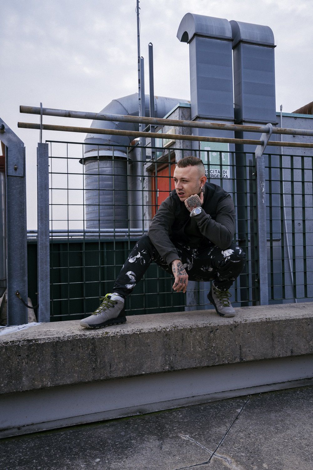 A Milano, la stella più in crescita della scena rap italiana, LAZZA, indossa la silhouette Cityroam, nuova interpretazione di una creazione classica, con dettagli e accenti colorati, e la WorldHiker, la prima scarpa da hiking disegnata per la città.