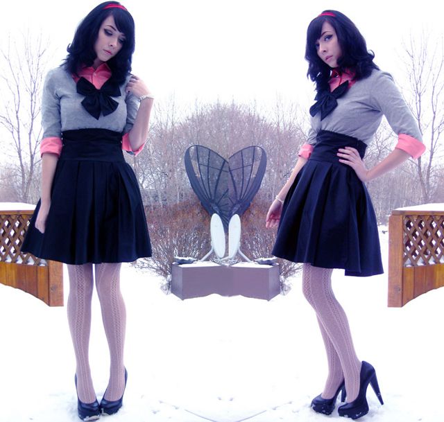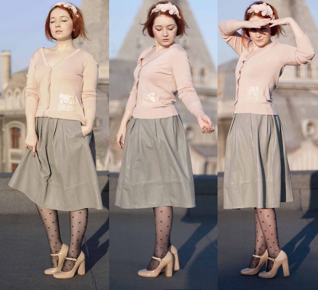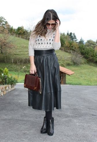 Stavolta non mi sento di suggerirvi particolari abbinamenti, mi preoccupo solo di mettervi in guardia riguardo un'unica cosa da evitare assolutamente se la lunghezza della gonna va oltre il ginocchio: gli stivali! Anche solo immaginandovi l'abbinamento non sentite la pelle d'oca? Il brivido di ribrezzo? Non vi si contrae la faccia in un'espressione disgustata? Di qualunque tipologia essi siano: biker boots o over the knee, evitateli come la peste perché il look perderà completamente il fascino retrò conferito dalla gonna e...semplicemente perché non c’entrano proprio!