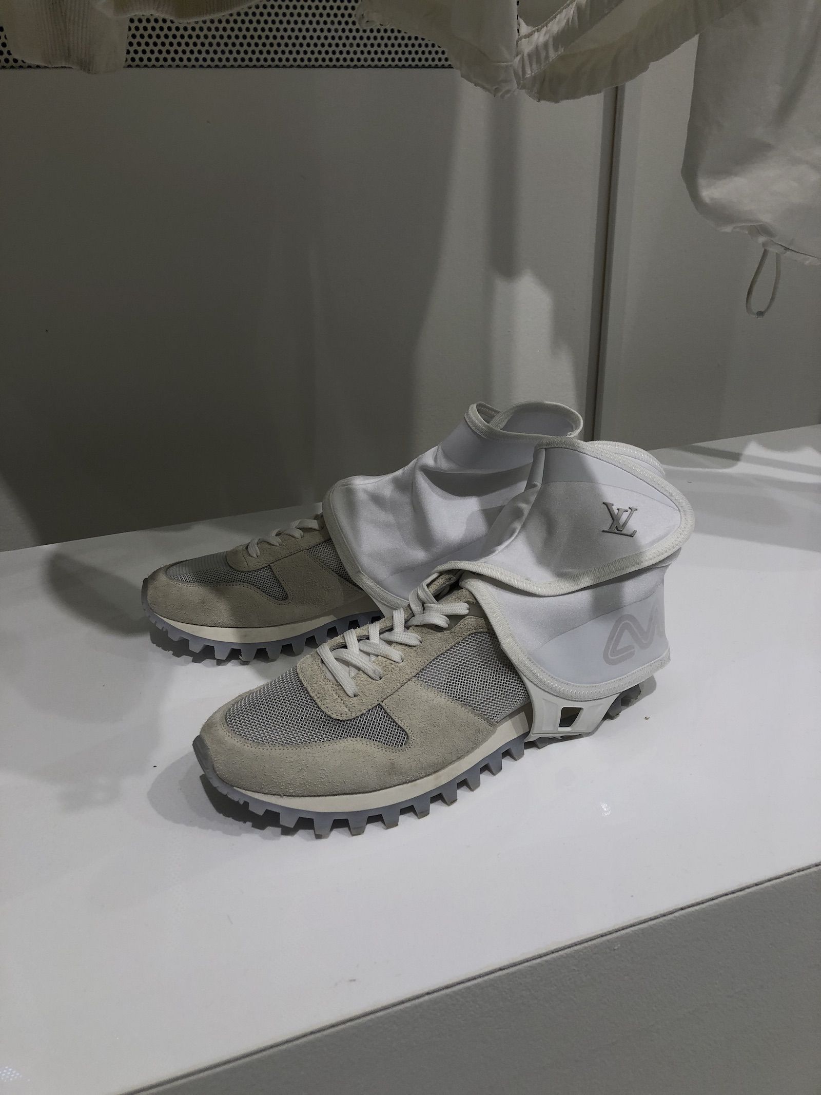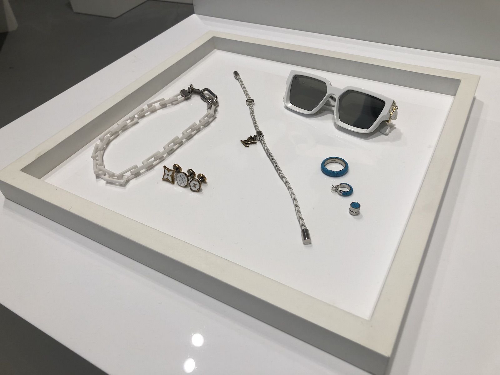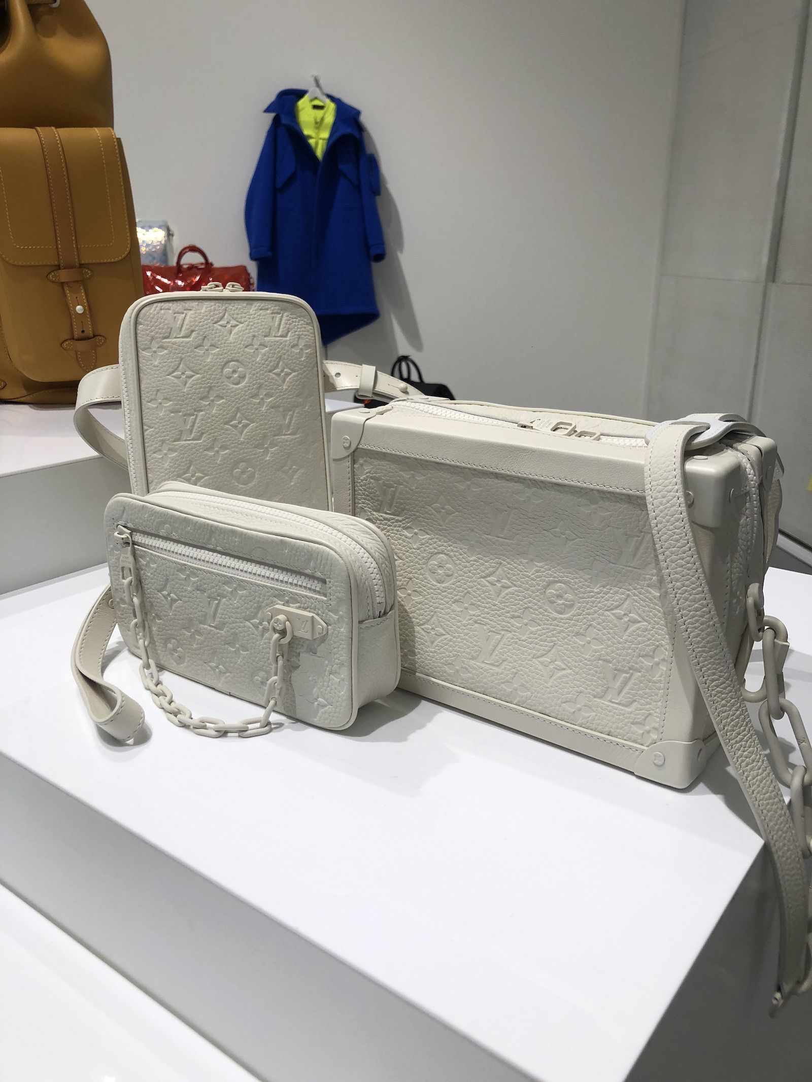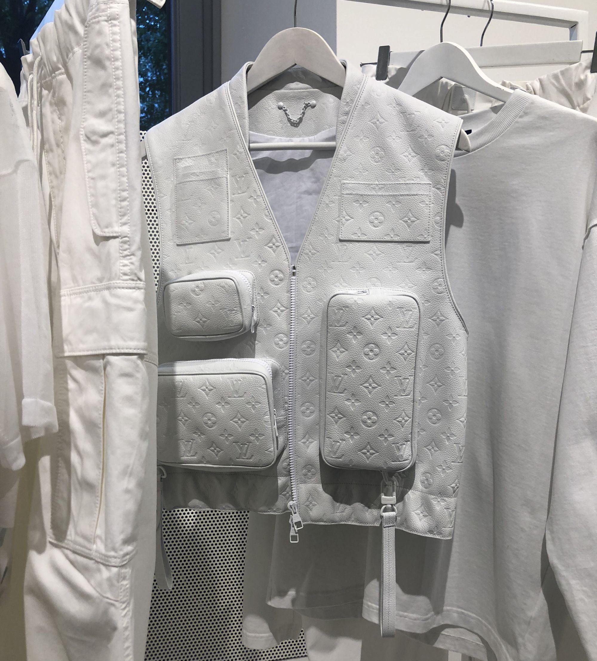 Ad attirare subito la nostra attenzione è stata la Holographic Bag, che dalle immagini sembra incredibile, e anche dal vivo non ha deluso. Con il suo rivestimento brillante e iridescente, l'item sarà sicuramente uno dei pezzi più desiderati della collezione, quasi quanto la borsa in pelle total black goffrata con il pattern di LV, un must-have di stagione. Dopo aver dato un'occhiata a occhiali da sole, cinture, borse e portafogli, siamo arrivati alla creazione che attendevamo di più, lo utility vest in pelle bianca goffrata con il pattern di LV. L'artigianalità e la qualità sono ai massimi livelli, nessun dettaglio è lasciato al caso, e il vest diventerà un classico dello streetwear.