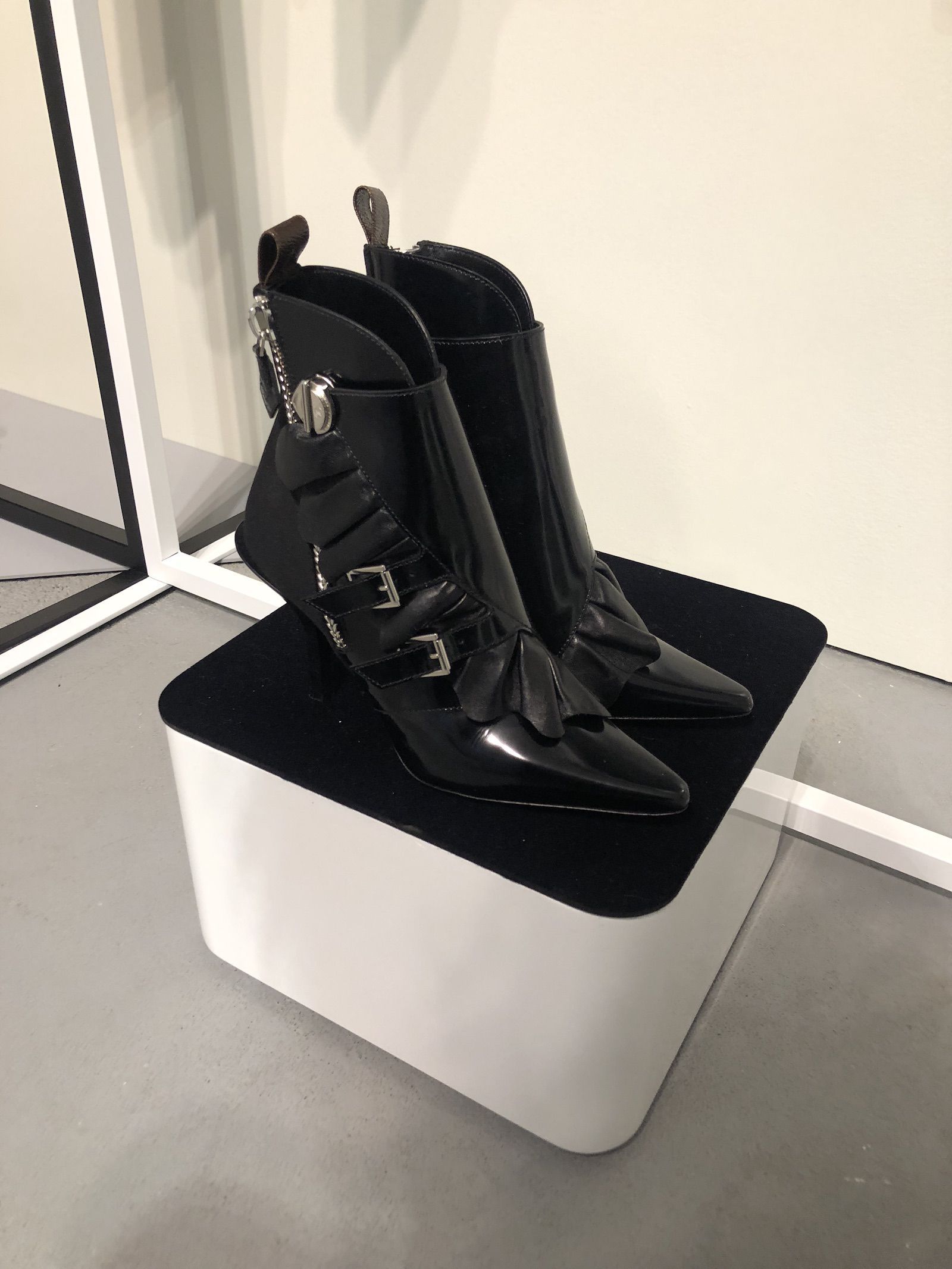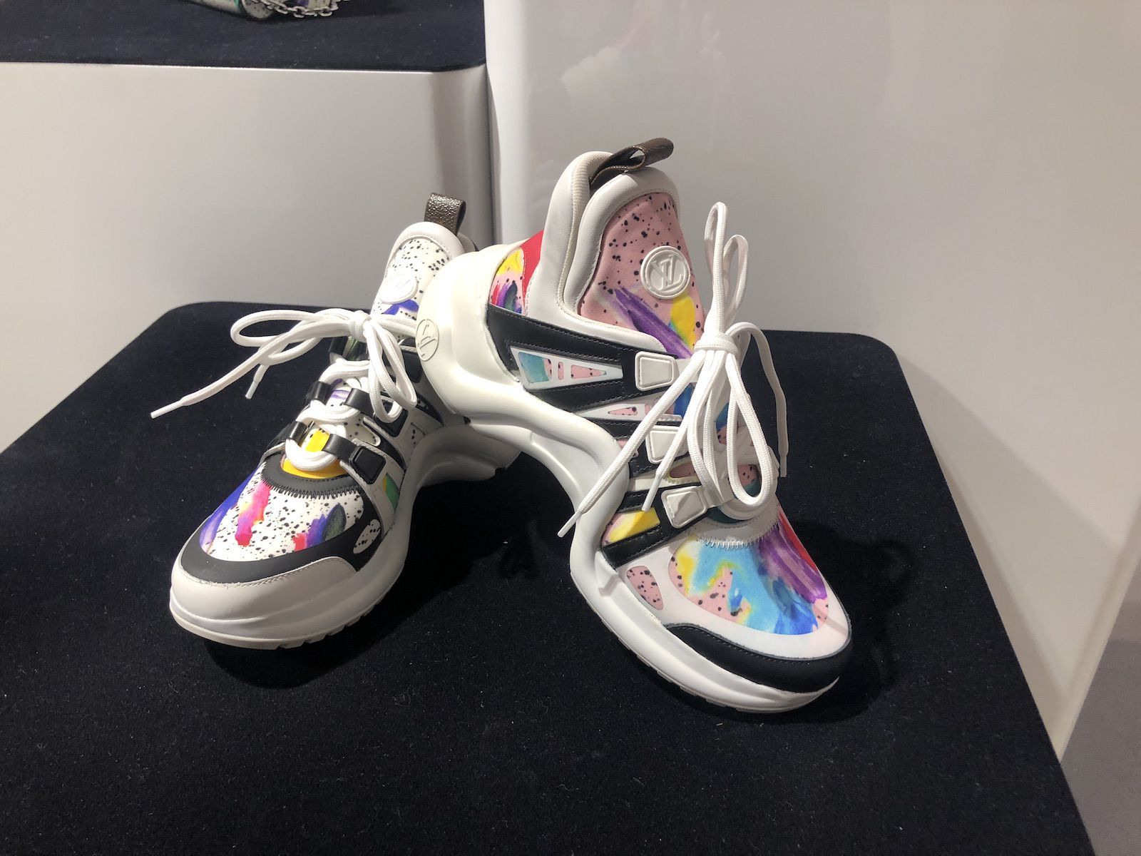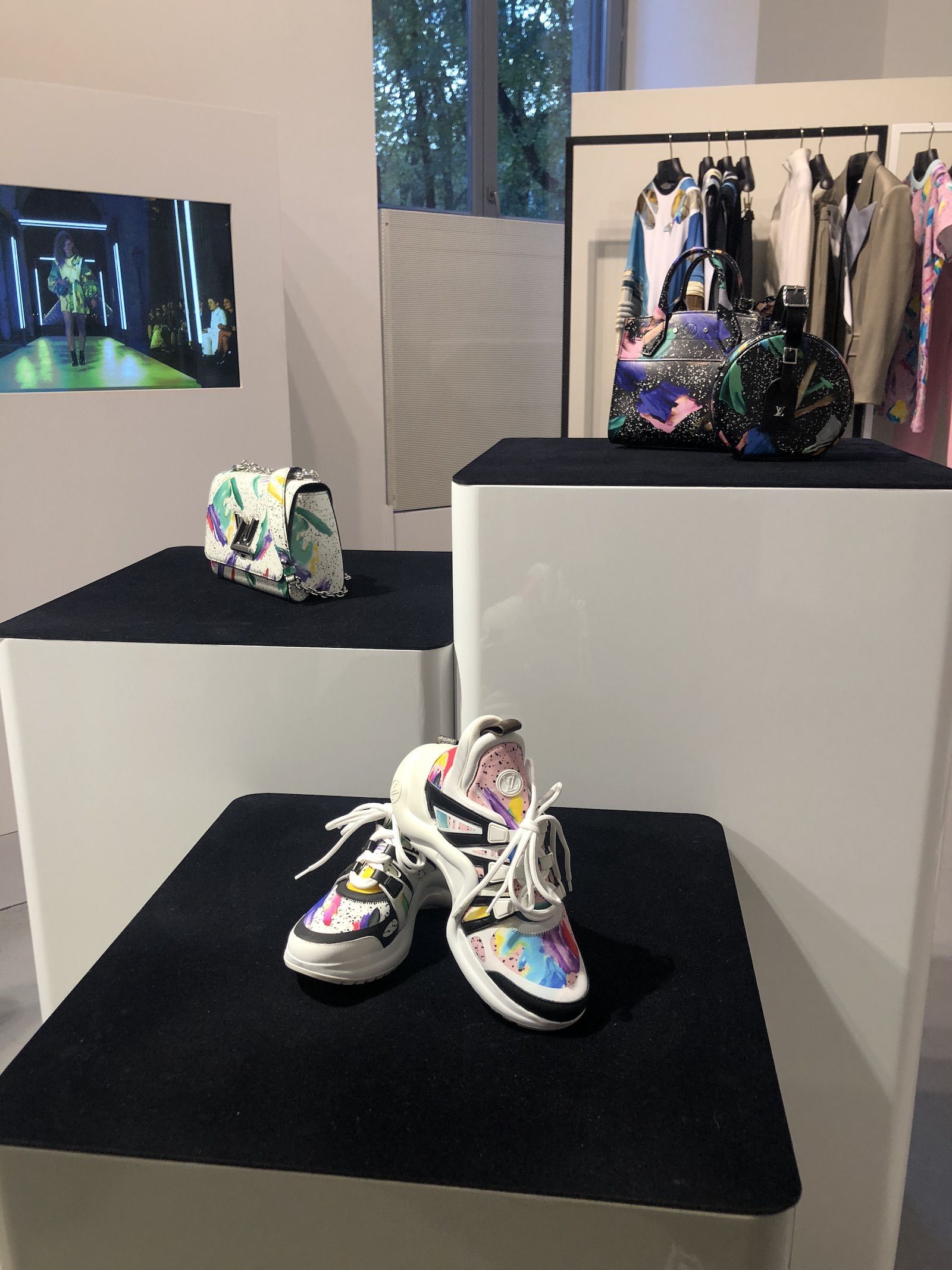 All'entrata siamo stati accolti da sette valigie LV impilate una sopra l'altra, vero e proprio marchio di fabbrica della maison francese, per passare poi alla collezione donna disegnata da Nicolas Ghesquière. Sono due gli item che ci hanno colpito maggiormente nella colorata collezione. Due giacche dalle linee pulite e dal design impeccabile, in nero e in bianco, che sono state sottoposte ad un particolare trattamento che ha reso il materiale in cui sono state realizzate molto simile alla pelle. Inoltre Ghesquière ha presentato una nuova versione della sneaker Archlight, con nuovi inserti colorati e variopinti, senza dubbio la creazione più stravagante della maison.