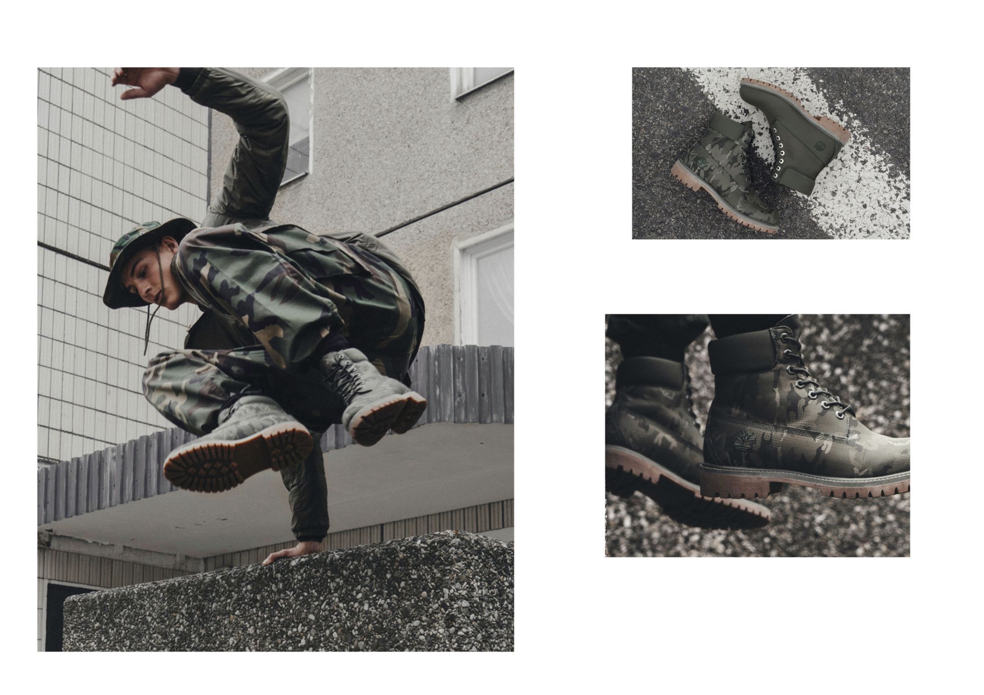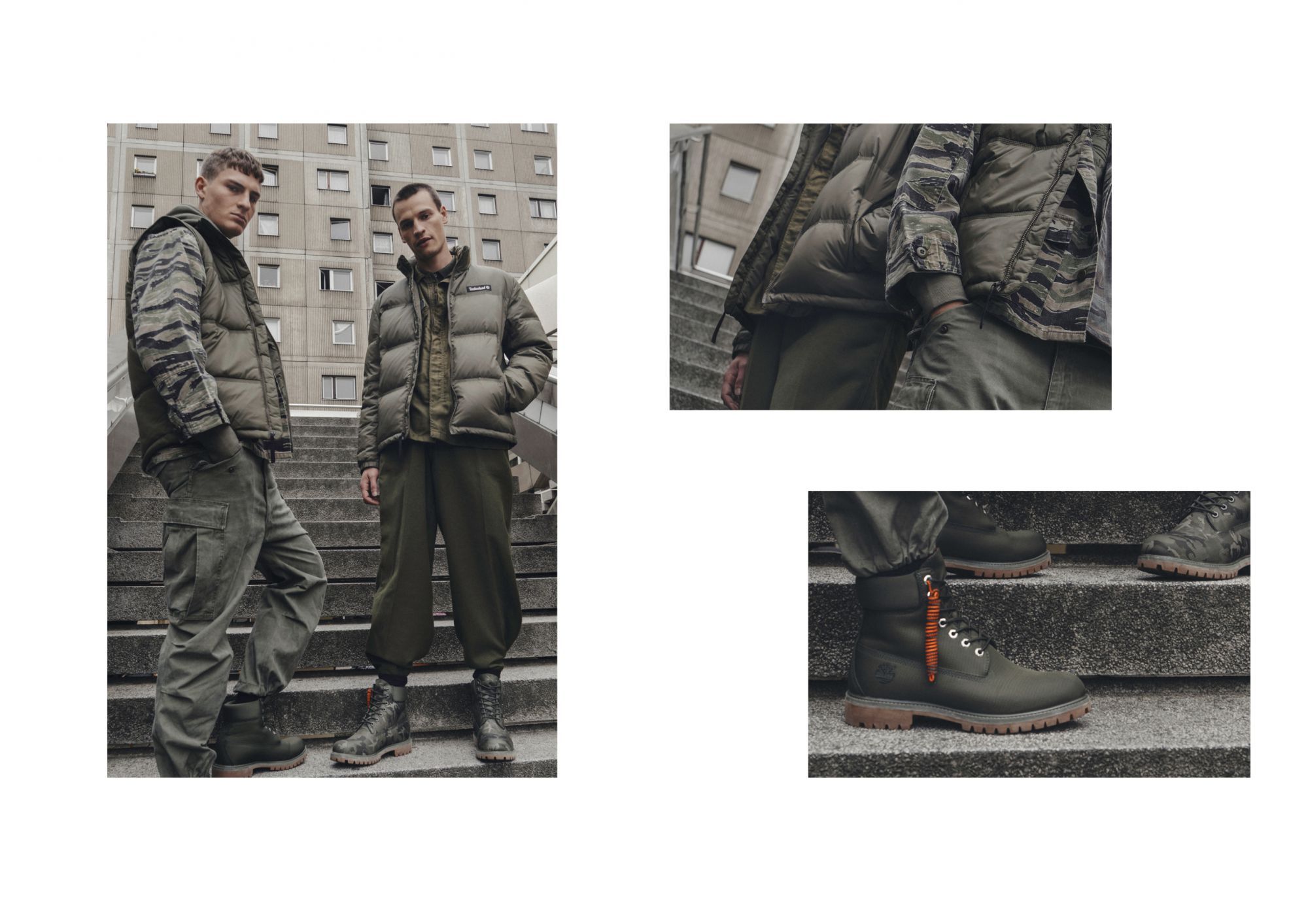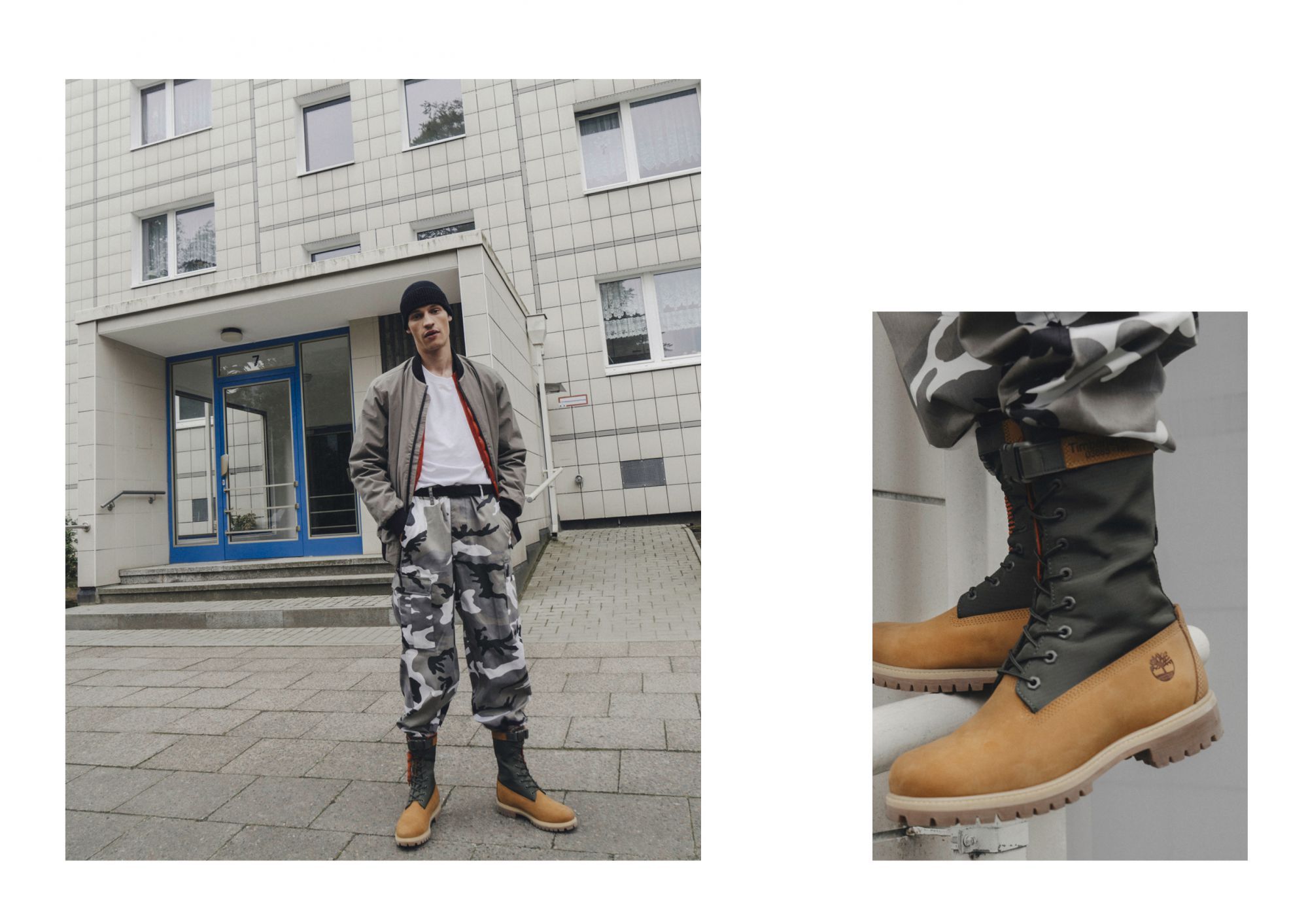 In questi scatti esclusivi realizzati sui tetti della capitale tedesca, Timberland presenta il suo Military Pack, una limited edition dei leggendari boots del brand in tre modelli di ispirazione militare. Lo scarponcino Fabric 6 Inch è declinato in verde mimetico, con pattern camouflage, e in verde scuro, mentre lo scarponcino 6 Inch Gaiter gioca sul contrasto tra l'iconico giallo Timberland e il military green.