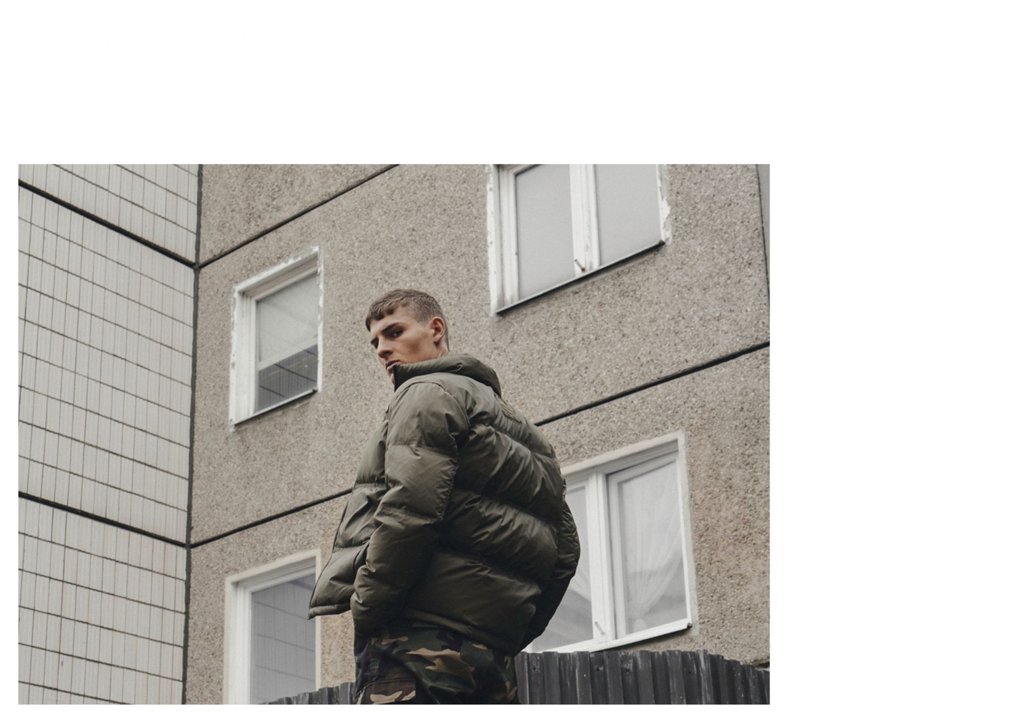 Il jacquard mimetico si intreccia con il pattern della città. La divisa militare si fa urbana, contemporanea, street.