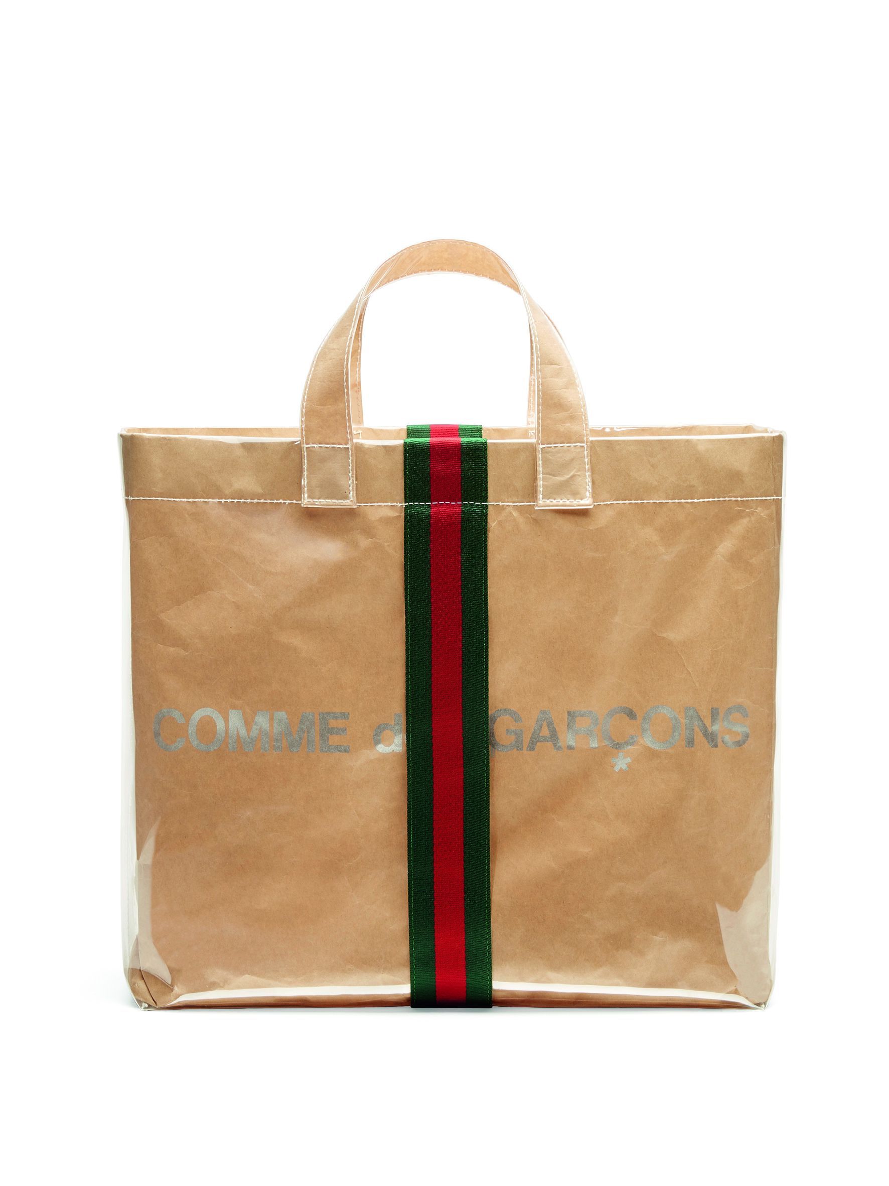 Gucci e Comme des Garçons insieme, sì avete letto bene. La maison guidata da Alessandro Michele sceglie la misteriosa Rei Kawakubo per sperimentare ed esplorare territori nuovi. I due colossi della moda hanno realizzato una shopper in carta artigianale ricoperta in PVC, su cui è stampato il logo CDG, attraversato dall'iconica Web verticale verde-rosso-verde di casa Gucci. L'item made in Japan è destinato a diventare il must have della stagione, e probabilmente anche dei prossimi anni.