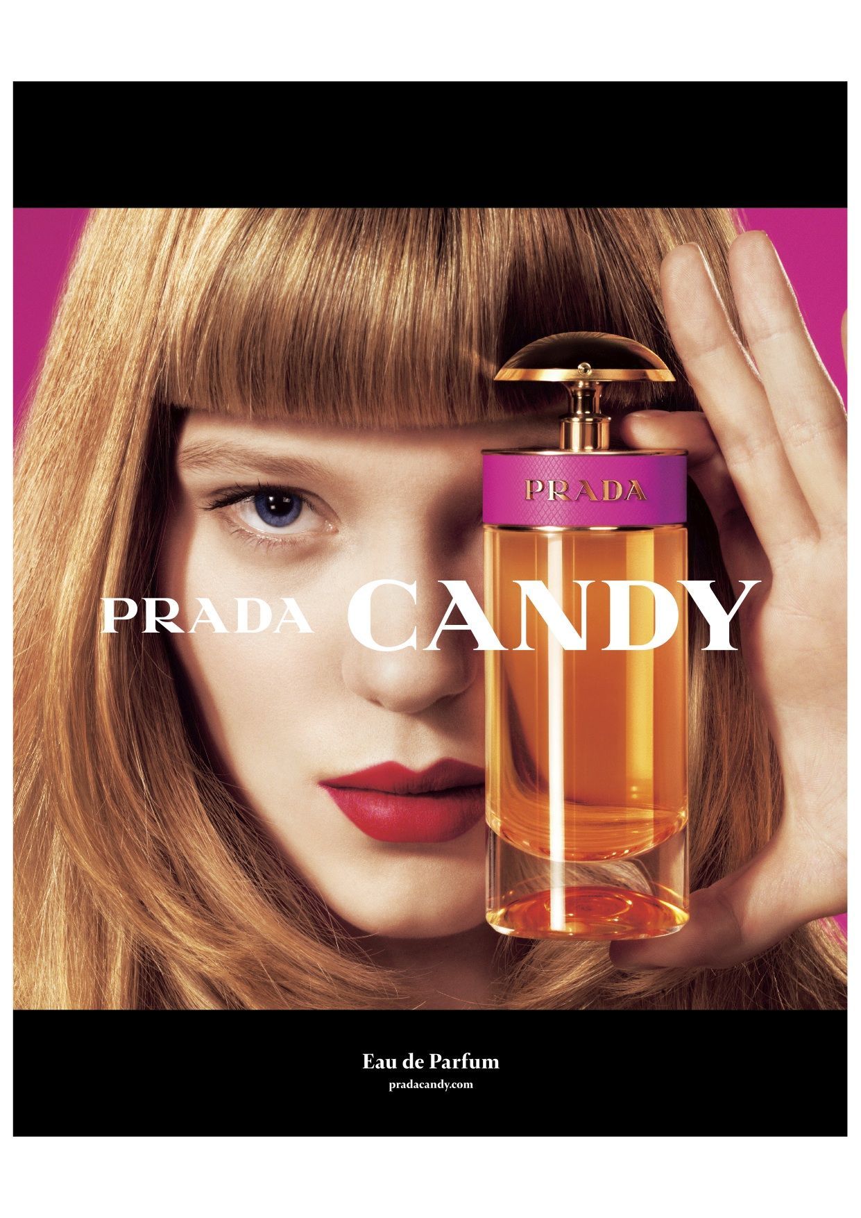 Prada Candy è la fragranza must della casa di moda. Il suo mix di muschi, benzoino alla vaniglia e cuore di caramello è irriverente, spontaneo, sfida le convenzioni, così come il rosa shocking del packaging su cui troneggia un'immagine realizzata dal leggendario illustratore François Berthoud. A completare questo concept di profumo come sinonimo di piacere puro, perfetto per una donna audace e anticonformista c’è la campagna pubblicitaria che ha per protagonista l’attrice francese Léa Seydoux diretta, in tre episodi diversi, da Wes Anderson e Roman Coppola.