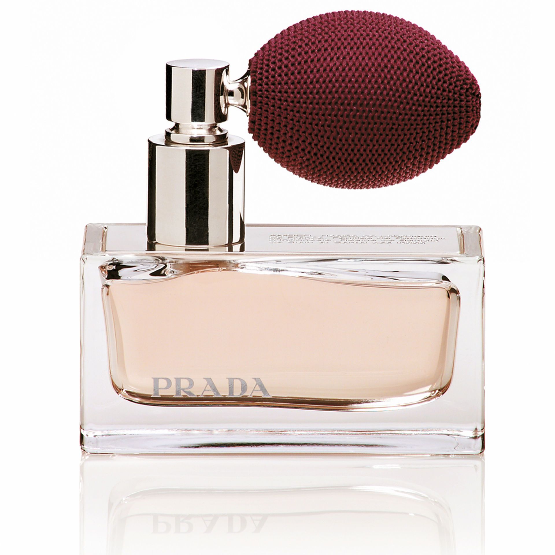Prada (Amber) segna il debutto del brand nel settore delle essenze. Lanciato sul mercato nel 2004 si basa su quattro ingredienti fondamentali del nuovo profumo: olio di legno di sandalo dell’India, olio di foglie di patchouli indonesiano, la resina di Labdano francese e il benzoino del Siam. Il binomio tradizione e innovazione torna anche nel packaging, che unisce un flacone di forme pure, quasi architettoniche e un nebulizzatore a pompetta che ricorda i profumi d’antan. Il tocco deluxe? Una placchetta di metallo riporta i quattro ingredienti principali e offre l’opportunità di incidervi le iniziali del proprietario.
