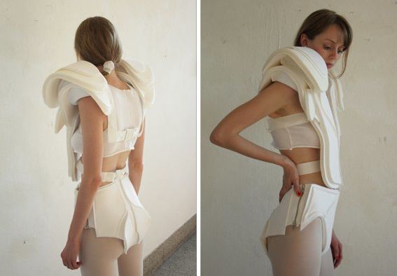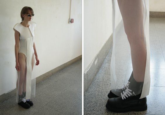 Forme strutturate e studio delle proporzioni sono alcune delle caratteristiche principali delle creature modaiole di Martina, studentessa di Fashion Design all’Università di Arti Applicate di Vienna (sotto l’attenta guida di Bernhard Willhelm) e vincitrice dell’INDIE Magazine Award edizione 2010, la quale a quanto pare si diverte parecchio a ricercare continuamente nuovi materiali con cui produrre i propri capi.