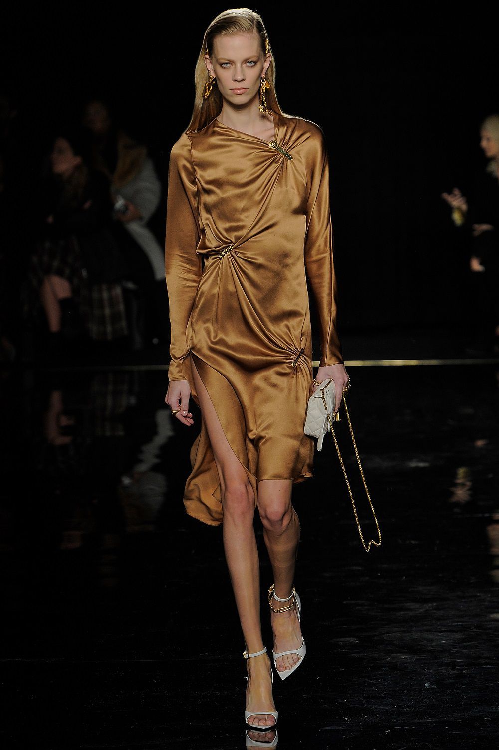 Partiamo dalla location: Versace sfila per la prima volta a New York, presso l'American Stock Exchange, una scelta per nulla casuale, anzi, il segno di una nuova era. Quella Made in U.S.A. sotto la guida del Capri Group, la società di Micheal Kors che ha inglobato il marchio italiano a settembre per $ 2,1 miliardi (se volete saperne di più cliccate qui). Sfilare nella Grande Mela, quindi, diventa un modo per sigillare il rapporto contrattuale con l’America. E come imporsi sempre più in questo mercato e farsi amare dalla nuova patria? Riproponendo le creazioni che hanno fatto impazzire le star e il jet set a stelle e strisce nel corso degli anni, quelli creati da Gianni Versace.