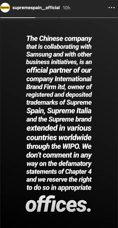 IBF ha risposto alle critiche - lanciate anche da Supreme NYC - attraverso una storia IG pubblicata sul profilo Supreme Spain.