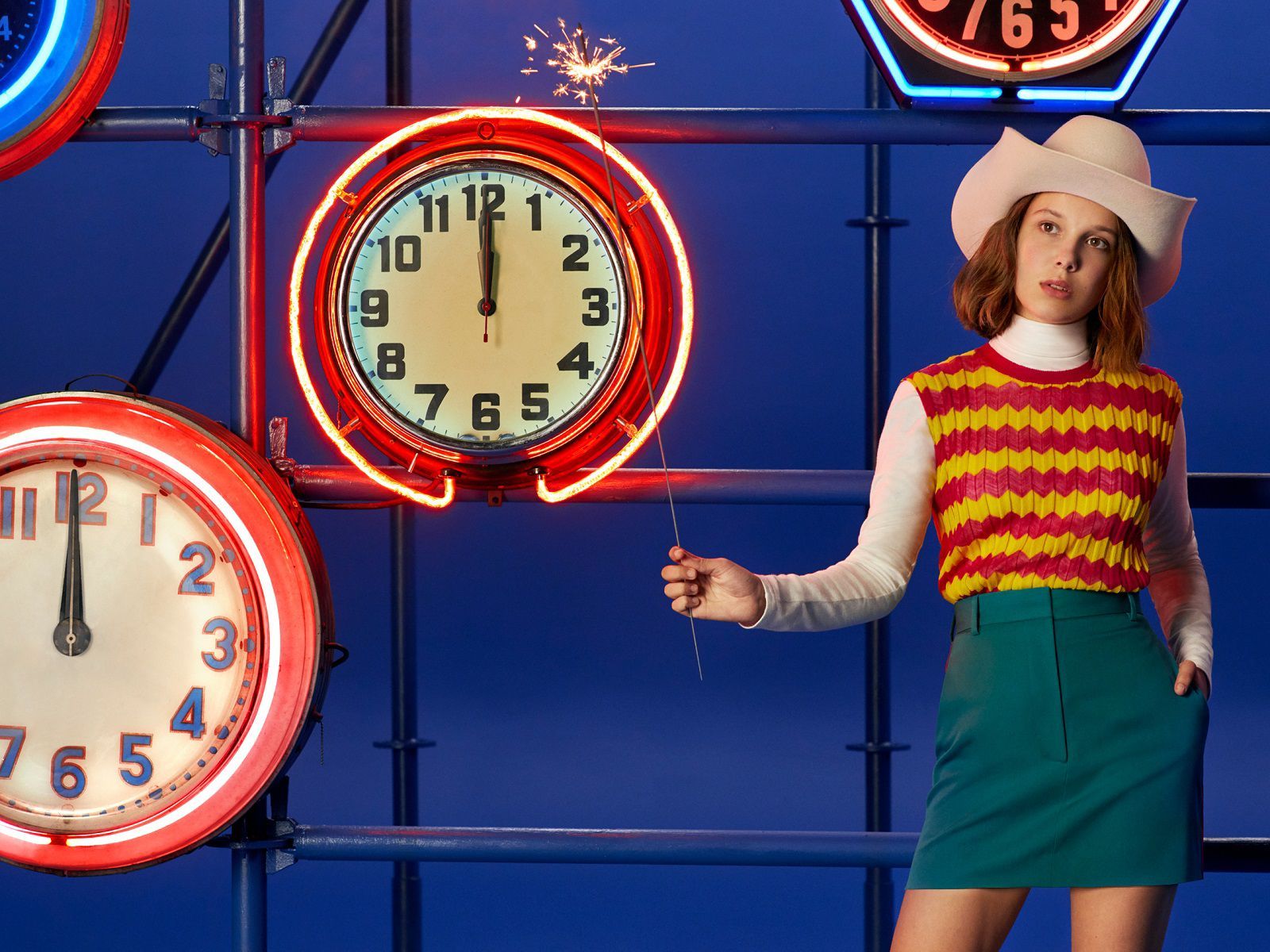 Mentre tutti si arrovellano il cervello per cercare di decriptare il primo teaser e i titoli della terza stagione di Stranger Things, Eleven aka Millie Bobby Brown dà sfogo al suo lato glamour. Calvin Klein, infatti, ha scelto l’attrice come volto della sua campagna Holiday Gift Guide 2018. La ragazza, già da qualche tempo testimonial del marchio guidato da Raf Simons, ricrea in una serie di immagini e brevi video in puro stile natalizio, tra abiti color block chic, capi in denim, paillettes, luci, un simpatico cane e orologi al neon.