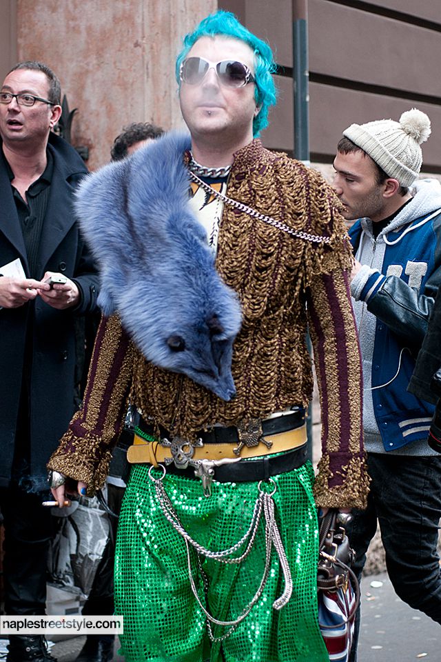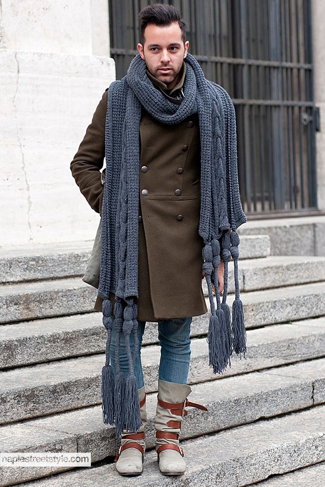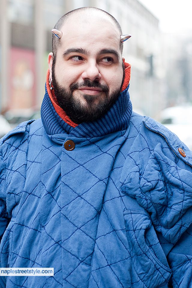 E ancora proseguiamo con Ermanno Scervino alle ore 11.30. L'uomo Scervino va in ufficio con la 24ore consumata ma è impeccabile nei cappotti double di foggia sartoriale indossati su leggerissimi piumini mentre, nel tempo libero, indossa un parka double con interventi in maglia. Fil rouge della collezione è la pelliccia ecologica che diventa accessorio discreto. Per la sera l'uomo contemporaneo di Ermanno Scervino indossa uno smoking in maglia metallo con revers di raso e giacche in velluto bordate in nappa con gilet incorporato ricamato.