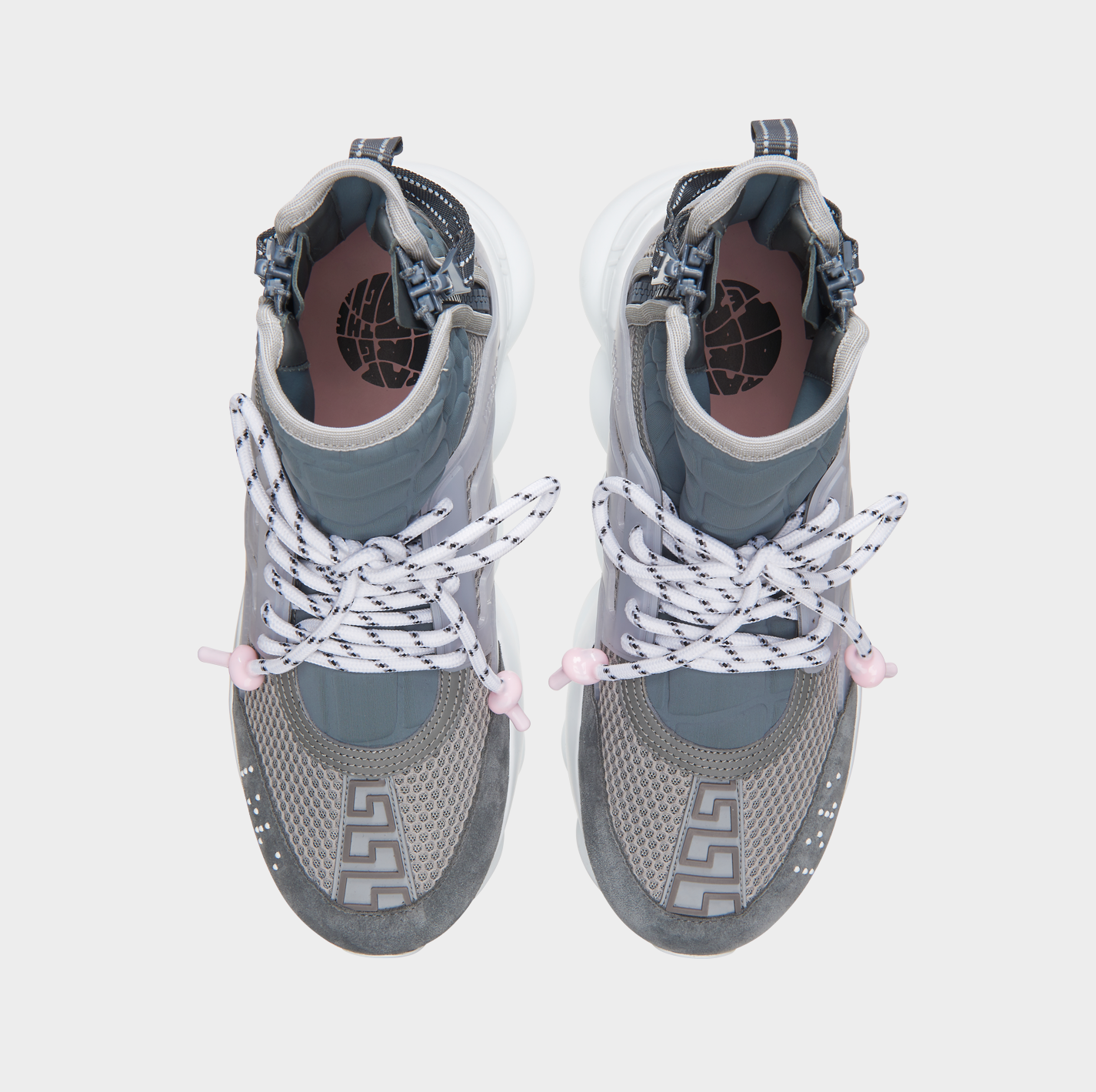 Nel corso degli ultimi due anni, diversi brand di lusso si sono orientati verso il mercato delle sneaker, proponendo modelli originali, ma pochi sono in grado di realizzare ciò che ha fatto Versace. Grazie all'innovativo e avanguardistico designer Salehe Bembury e alle sue Chain Reaction, Versace è entrato di diritto nel mondo delle luxury sneaker, continuando a proporre creazioni nuove ed interessanti. Fin dalla prima versione della scarpa, Salehe ha collaborato con il rapper statunitense 2Chainz per dare vita ad un'edizione speciale della scarpa. Versace presenta ora il risultato di questa collaborazione, la 2Chain Reaction, che combina perfettamente il DNA della leggendaria casa di moda italiana con l'inconfondibile e stravagante stile della star dell'hip-hop.
