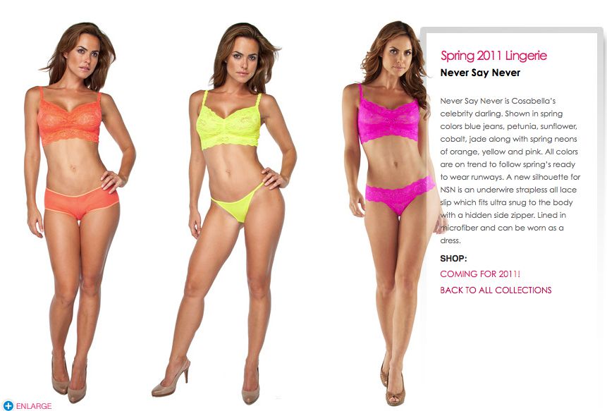 Meno famoso in Italia, rispetto al suo competitor più prossimo, il marchio Victoria’s Secret, COSABELLA gode di un discreto successo e seguito oltre oceano. Soprattutto in quel di Hollywood, dove non c’è celebrità che non sia rimasta affascinata dal suo mix di artigianato e frivolezza, comodità e spirito vivace. Per non parlare della TV che l’ha visto protagonista di diversi serial. Oltre al già citato "Sex and the City", è presente in "Grey's Anatomy", "Lost", "Nip / Tuck" e "Desperate Housewives".