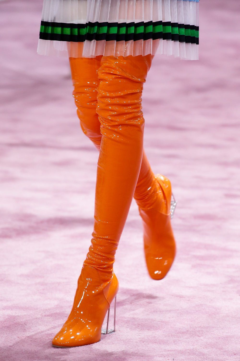 Questa passione che unisce arancione e moda risulta piuttosto recente, testimoniata da item must have come i boots vinilici Christian Dior Couture Spring 2015 o quelli in satin Vetements x Manolo Blahnik.