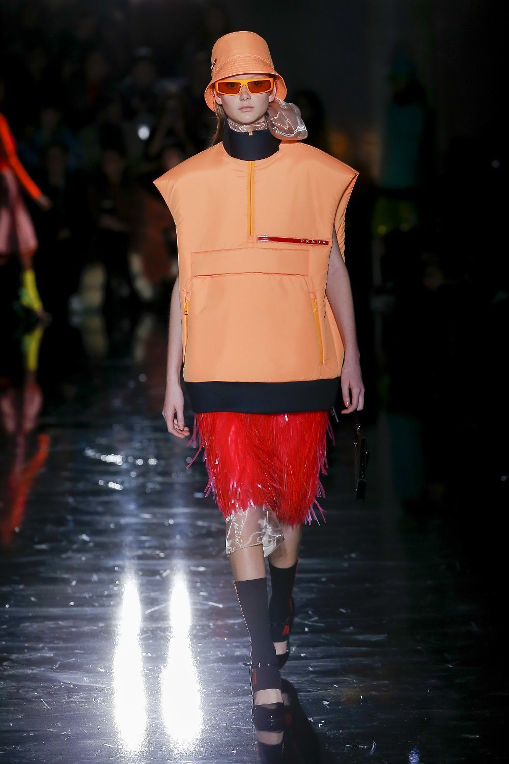 L’invasione orange diventa così impattante che la tinta da simbolo di esotismo e poi di modernità diventa sinonimo di cheap e resterà così fino al nuovo millennio quando, fashion week dopo fashion week, torna a sfilare sulle passerelle degli stilisti: Raf Simons per Jil Sander (e successivamente per Dior e Calvin Klein), Prada, Jeremy Scott, Dries Van Noten, Gucci, Louis Vuitton, Sies Marjan, Versace o Fenty Puma.