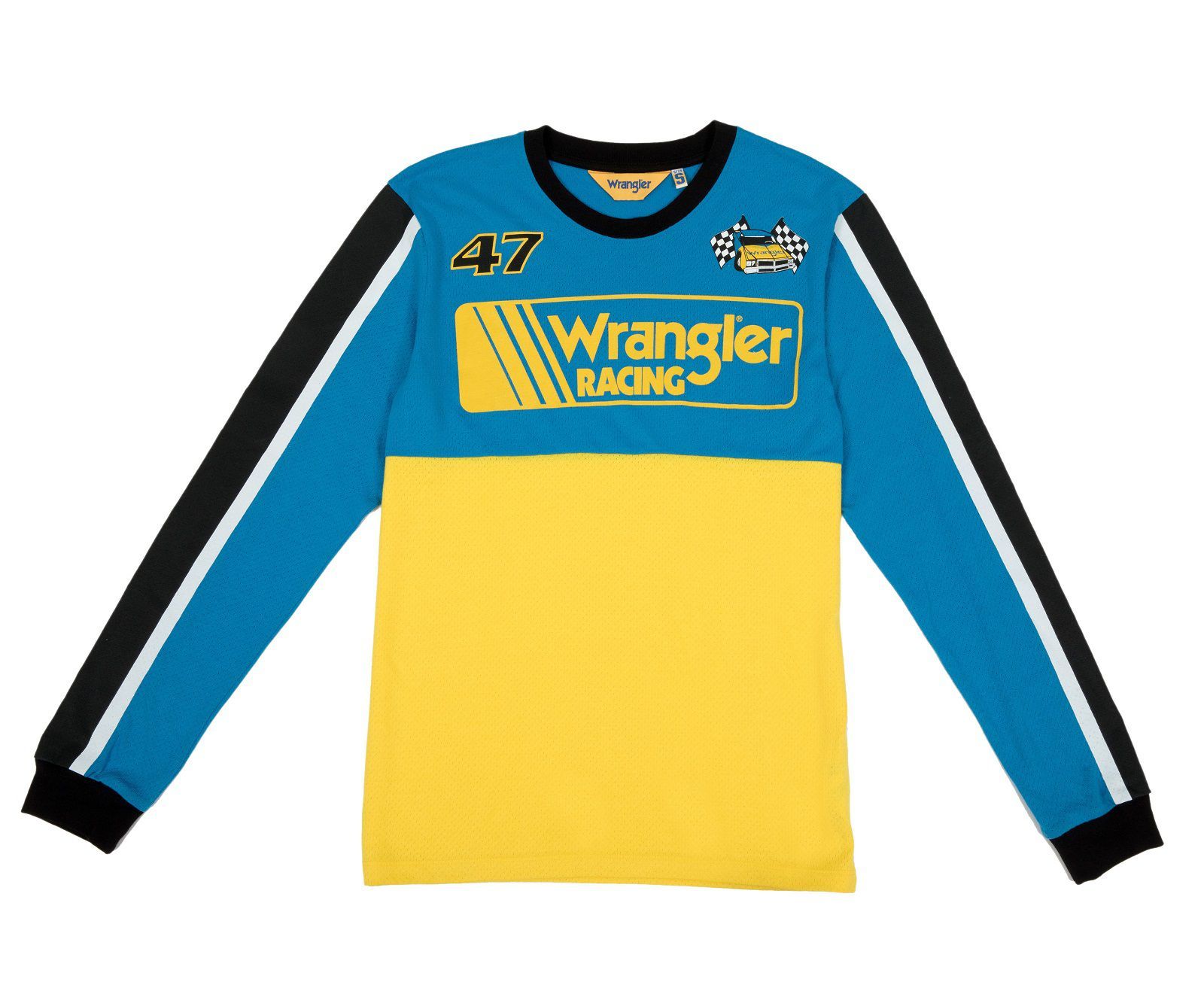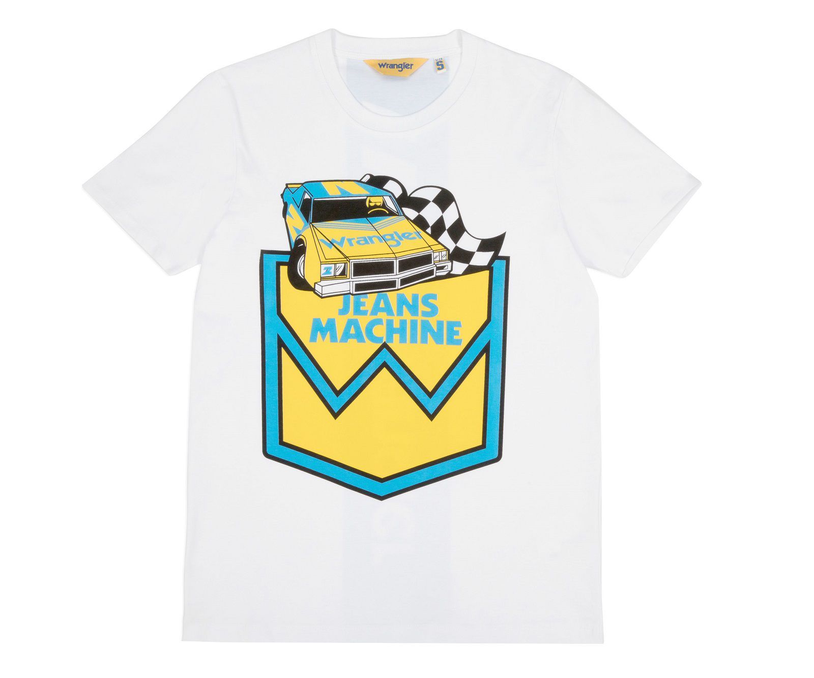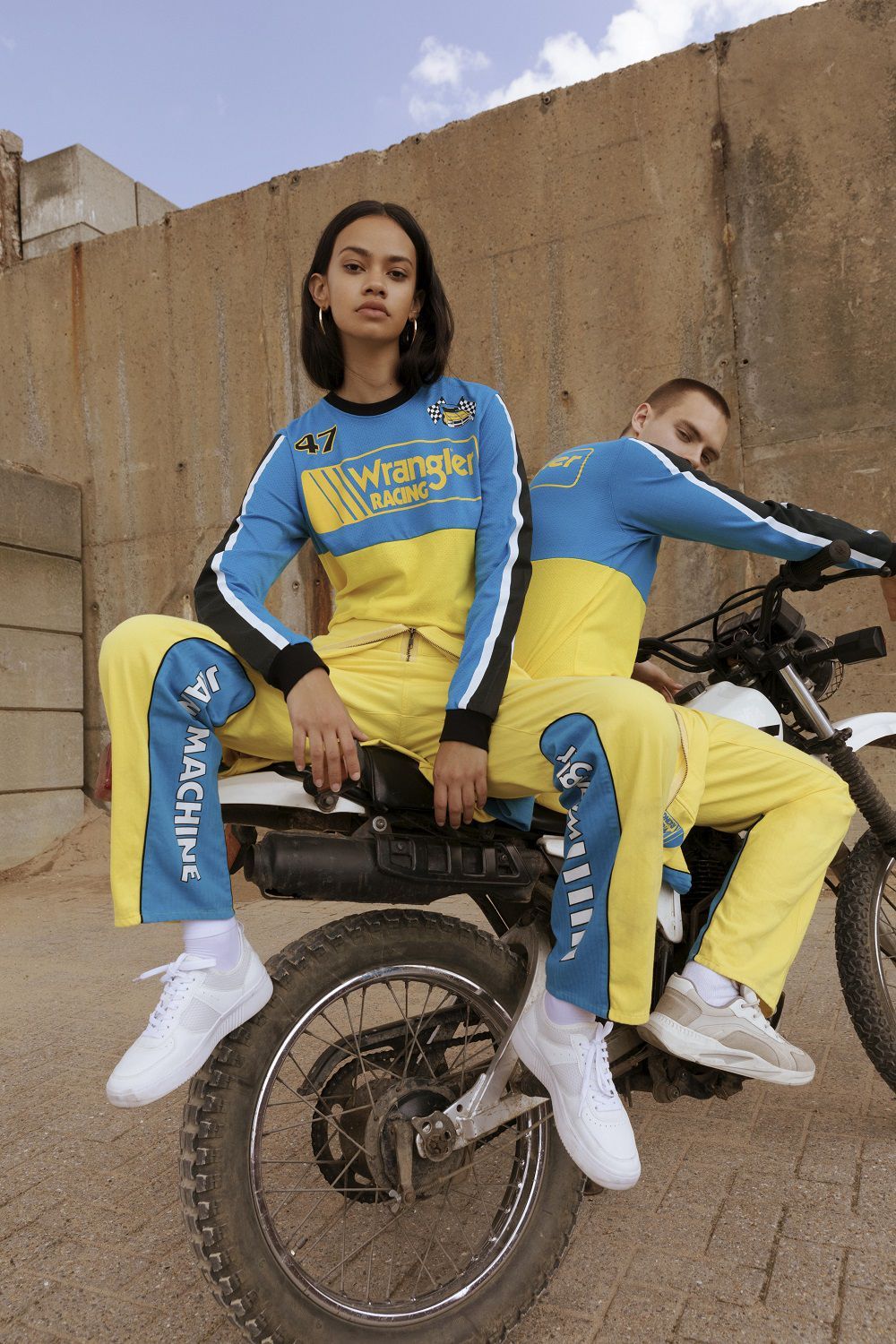 La spavalderia del leggendario pilota, negli anni '80 sponsorizzato proprio dal marchio di jeans americano, e lo schema di colori blu e giallo della sua famosa Jeans Machine, diventano le caratteristiche chiave di una nuova capsule collection genderless. Per la stagione SS19, lo slogan originale della Jeans Machine e la grafica autentica dell'epoca, ritornano su t-shirt oversize, magliette a girocollo vintage e felpe con cappuccio. Top e pantaloncini mixano twist eighties e tocco sportivo, lo stesso mood che troviamo nella giacca con pannello giallo a contrasto o nel denim colorato. L’effetto nostalgia è assicurato dalle canottiere e maglie realizzate in rete. A completare la proposta ci sono i classici jeans larghi e la cerniera western di Wrangler in un lavaggio scuro. La novità della collezione è la tuta, ispirata al dinamismo dei piloti e degli ingegneri su pista, che offre un tocco di audacia e modernità.