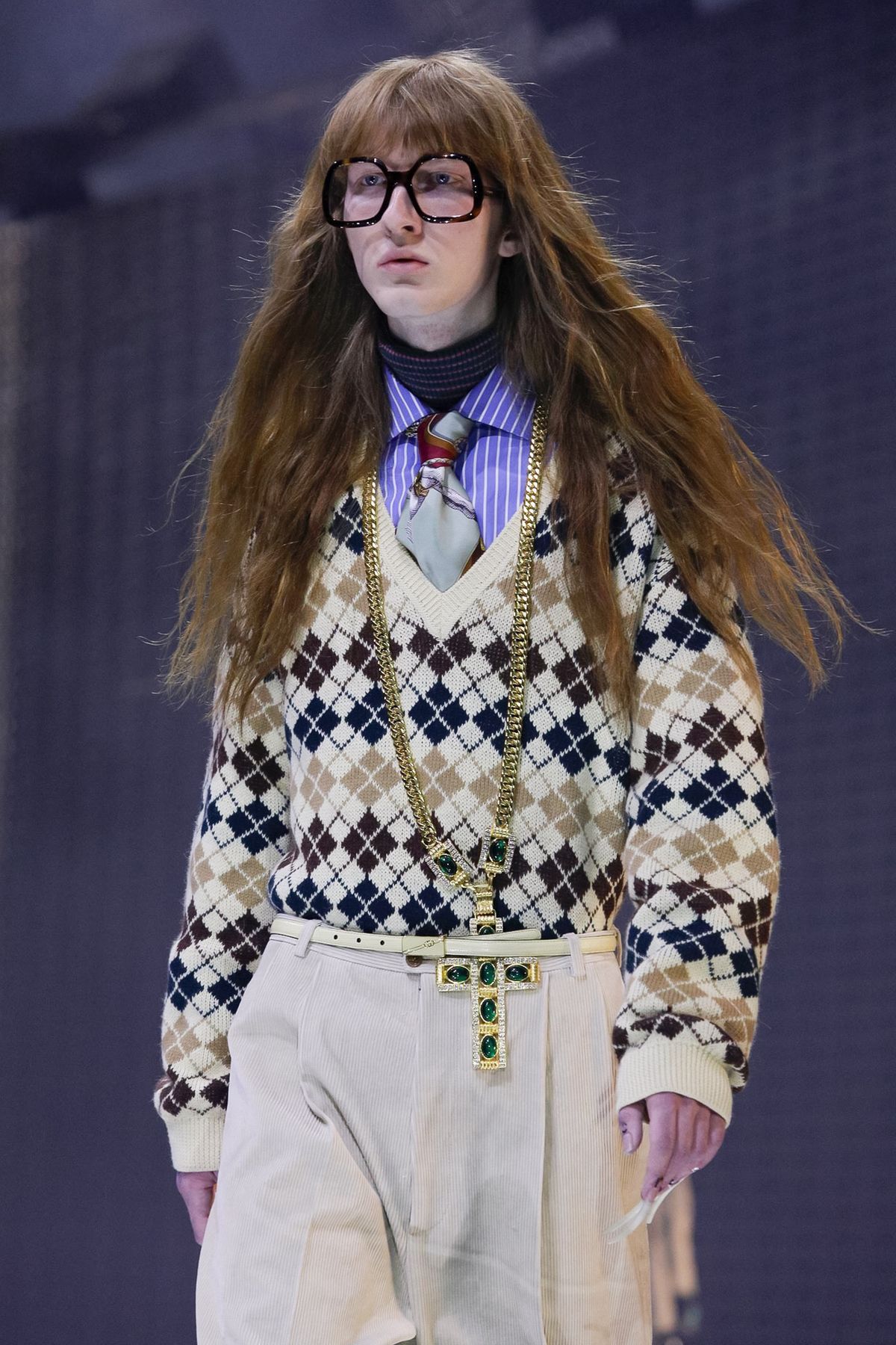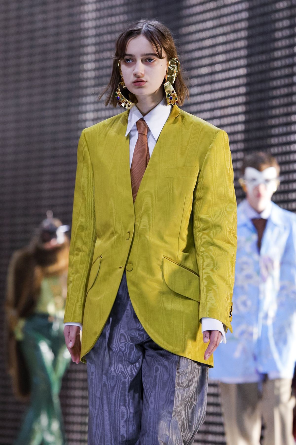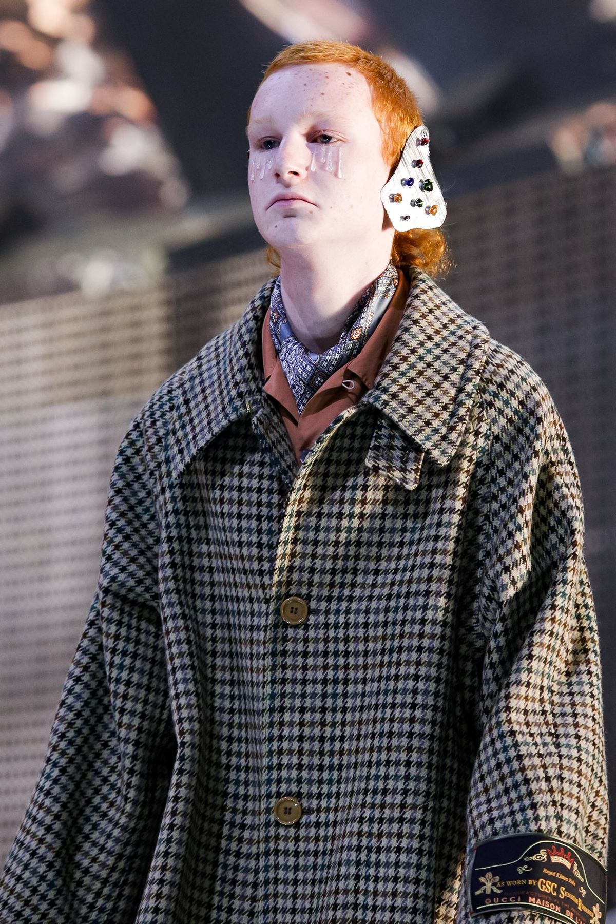 E poi gli accessori, dalle imponenti montature tipiche Gucci, agli orecchini indossati come se fossero più che un semplice gioiello, ma vere e proprie opere d'arte, dorati e imponenti nella forma; spille preziose illuminano i blazer mentre i cerchietti con spuntoni donano un tocco rock ad un look classico.