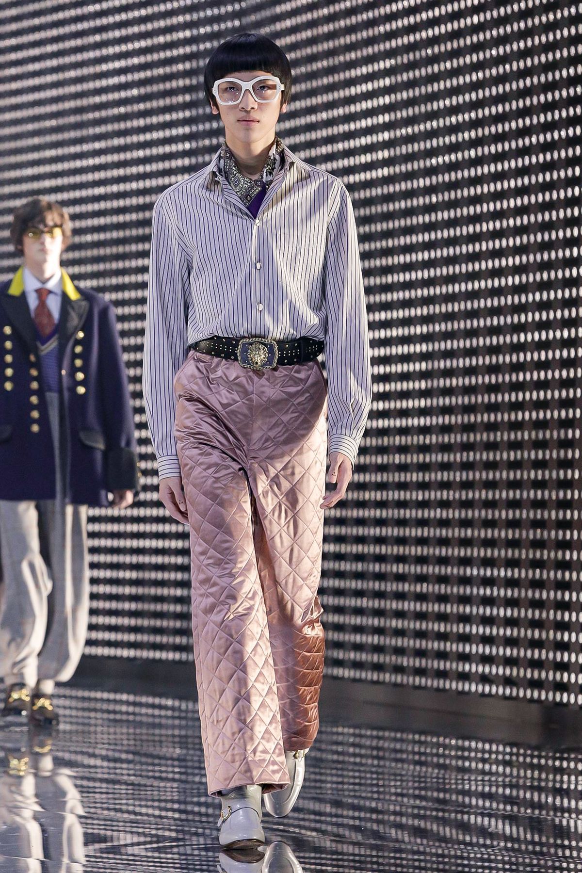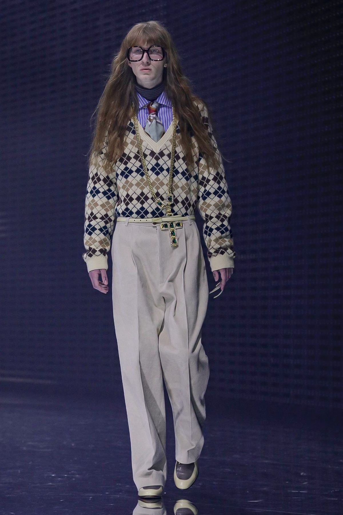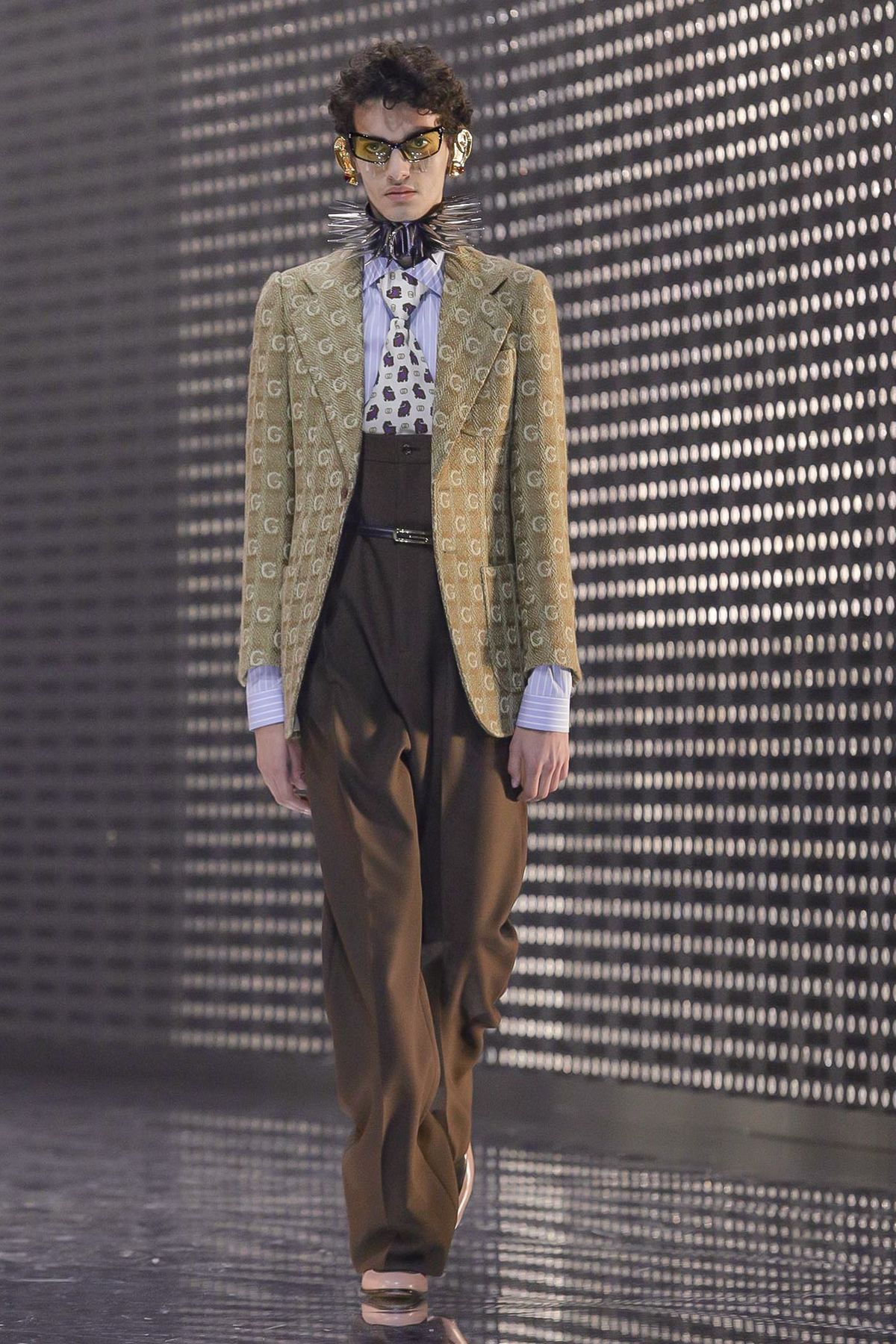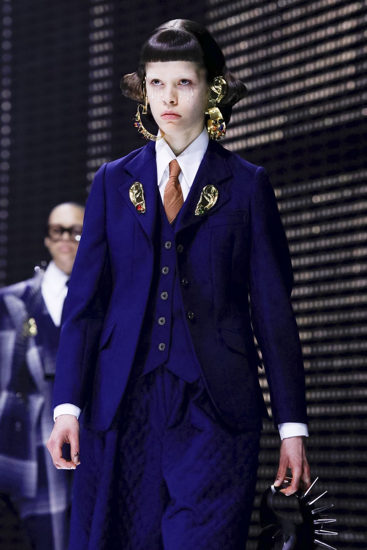 E poi gli accessori, dalle imponenti montature tipiche Gucci, agli orecchini indossati come se fossero più che un semplice gioiello, ma vere e proprie opere d'arte, dorati e imponenti nella forma; spille preziose illuminano i blazer mentre i cerchietti con spuntoni donano un tocco rock ad un look classico.
