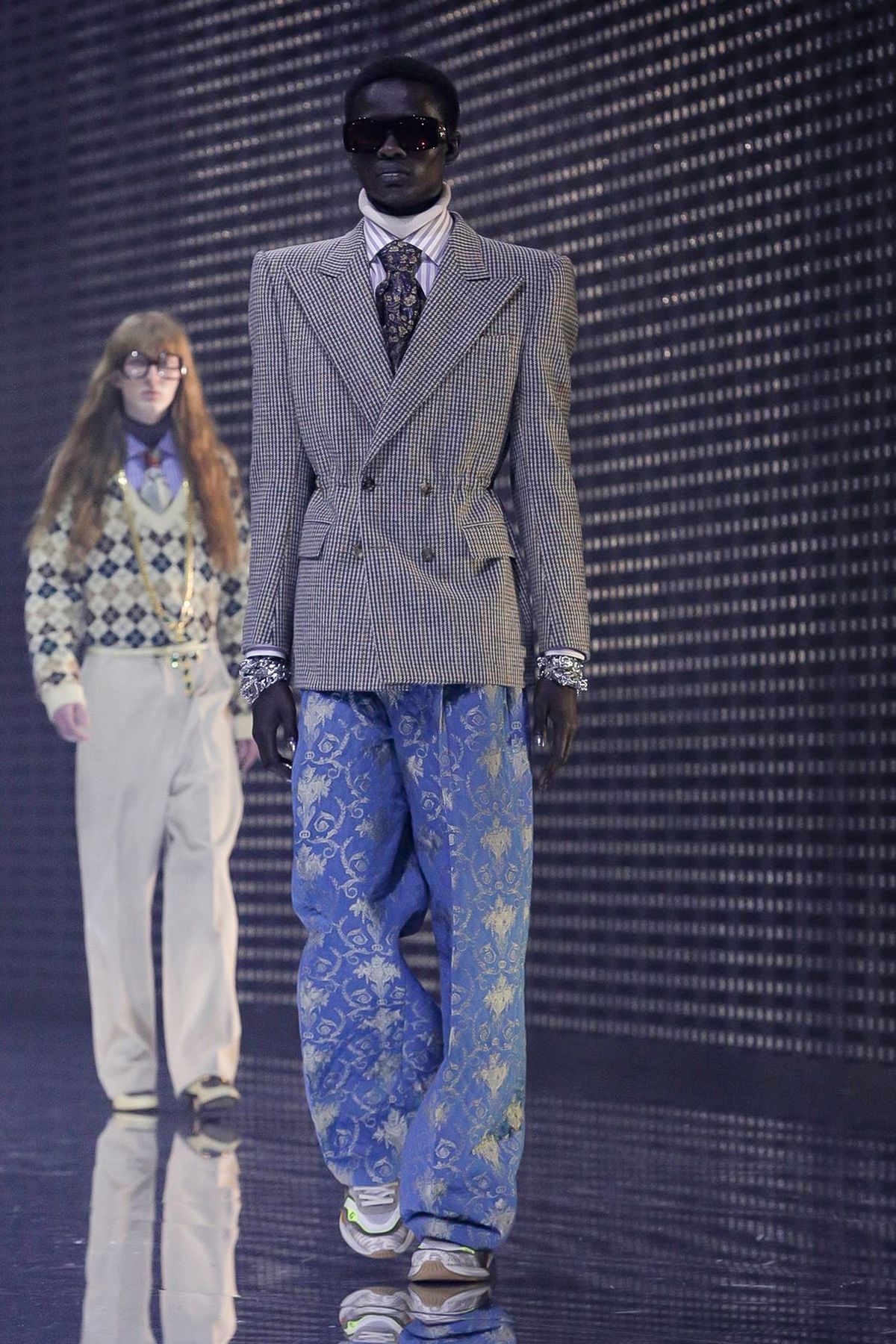 Occhi puntati sulla passerella di Gucci, che ha ospitato il ritorno italiano di Alessandro Michele. Micheliana fino in fondo la collezione, con i riferimenti agli anni '70, all'epoca vittoriana, all'arte gotica e al concetto di identità e individulismo che rimangono fedeli alla cifra stilistica al quale il designer romano ci ha abituati. Il fatto che ci abbia abituati molto bene aveva alzato le aspettative nei suoi confronti e non possiamo dire di poter essere soddisfatti fino in fondo. Pur rimanendo devoti sostenitori della capacità di Michele di creare tendenza oltre sentieri già battuti, non è scattata la scintilla d'amore che ci aspettavamo. Tra tutti gli item della collezione, tra maschere borchiate, accessori, borse e un trucco molto teatrale anche lo sportswear ha influenzato la collezione, molto diretto nelle fonti e nei riferimenti, presi dal mondo della pallavolo. Un filo conduttore insolito ma giustificato anche dalle ginocchiere indossate dalle modelle in passerella, con logo a doppia G, uno dei pezzi che farà più discutere dell'intera collezione.
