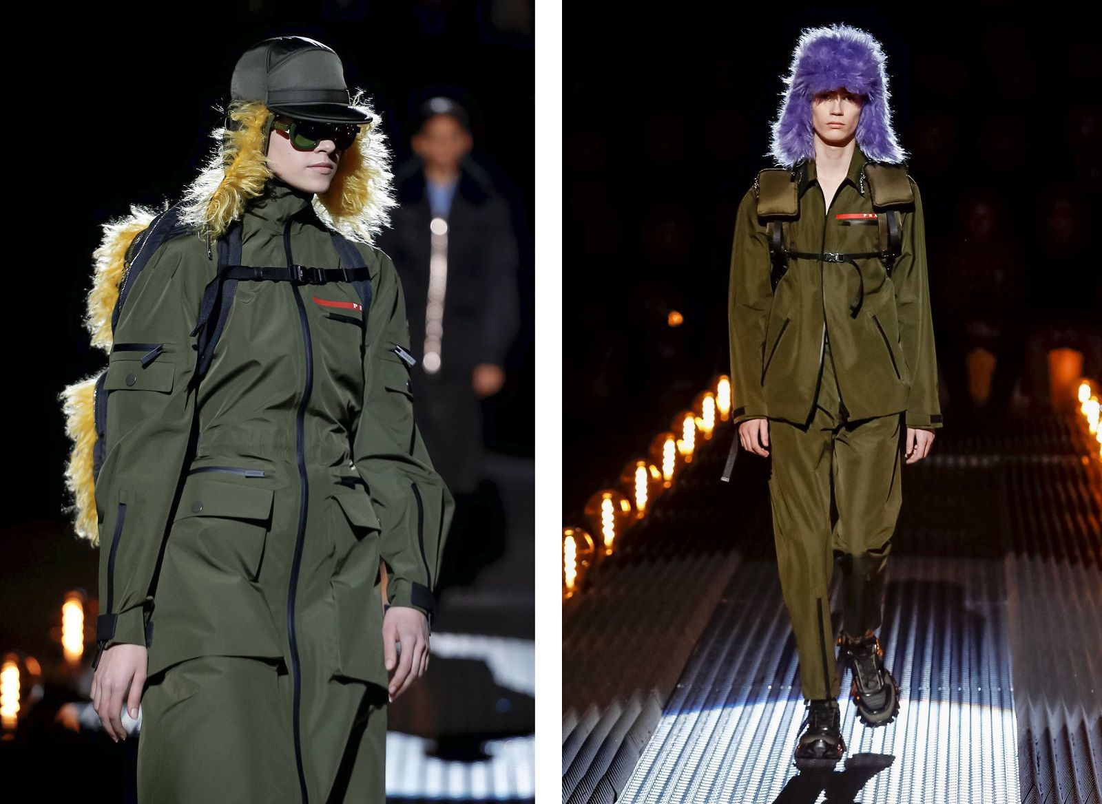 Questo il titolo della sfilata appena andata in scena all'interno della Torre della Fondazione Prada. La collezione vista in passerella è di fatto il secondo atto della sfilata uomo FW19 dello scorso gennaio, con un look verde militare con la Red Label simbolo del brand identico a quello visto durante la sfilata uomo. Ritorna il tema di Frankenstein, con una variazione Famiglia Addams - vedi le lunghe trecce alla Mercoledì -, le sneaker con suola a carroarmato, il nylon, gli inserti in pelliccia colorati, gli zaini, il nero.