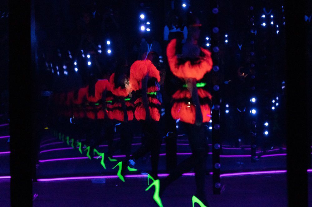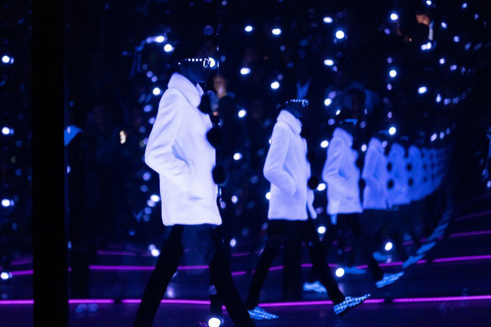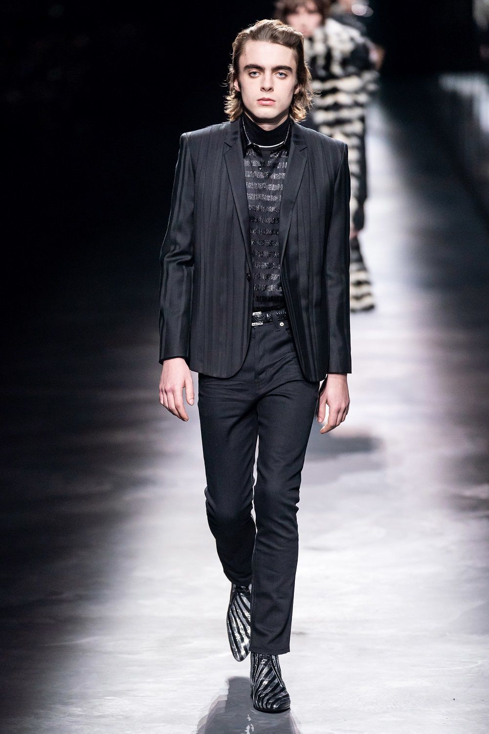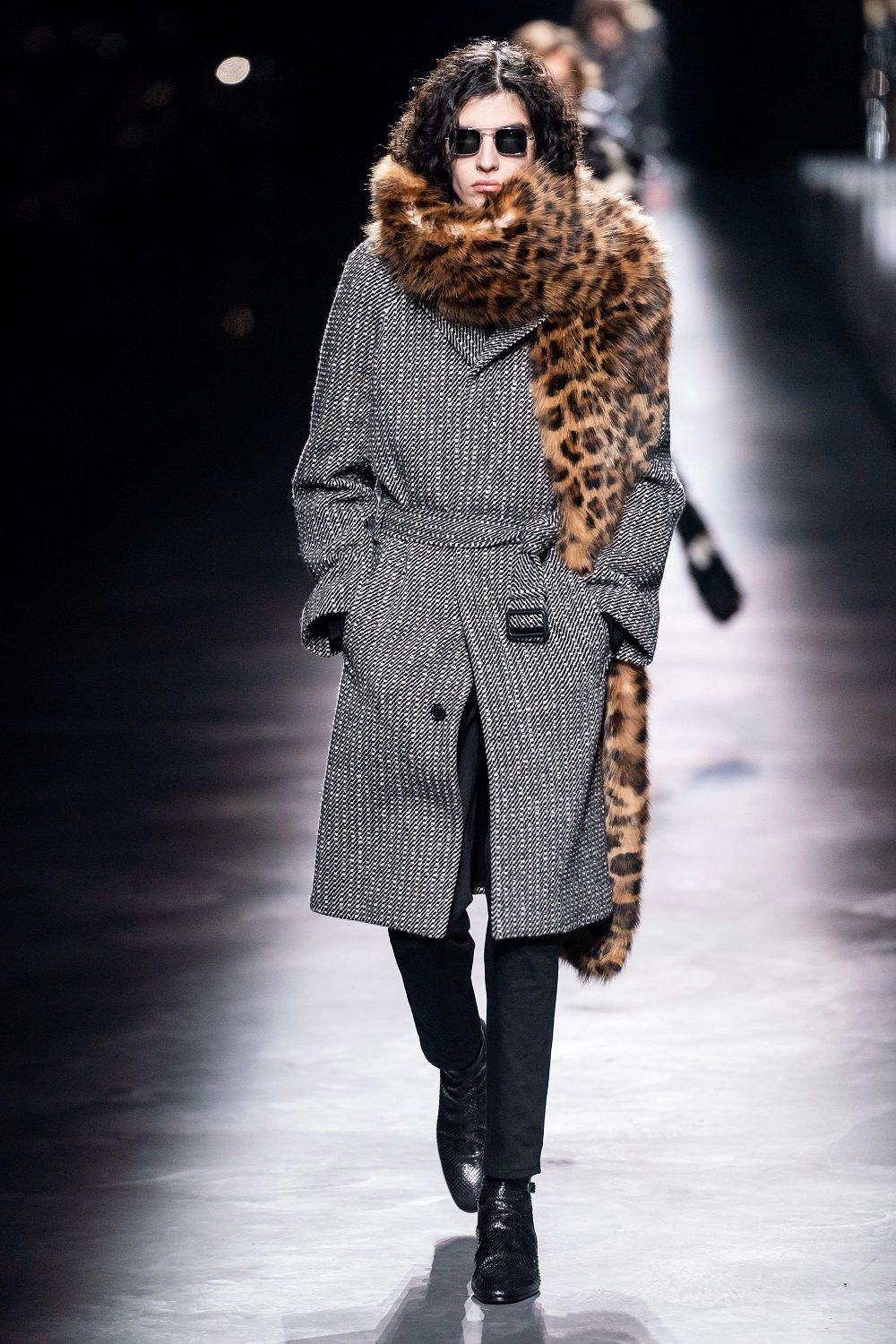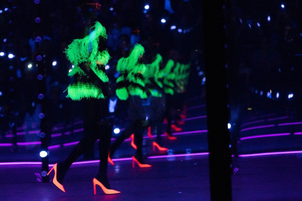 Vaccarello spinge l’acceleratore su una moda citazionista (da YSL a Hedi Slimane), edonista, pensata per individui dalla forte personalità e non importa che siano uomini o donne. Quello che conta è che abbiano carisma e sex appeal da vendere. Lo show continua alternando varie declinazioni di questo mood, poi, improvvisamente, il grande cubo costruito dalla maison Saint Laurent con un particolare gioco di luci nascoste e specchi svela un finale fatto di abiti cocoon, pelliccie e piume che tanto ricordano Monsieur Yves, ma fluo, in tonalità acide. Un effetto in bilico tra un video pop anni Ottanta e Yayoi Kusama che il front row pieno di celebrities applaude.