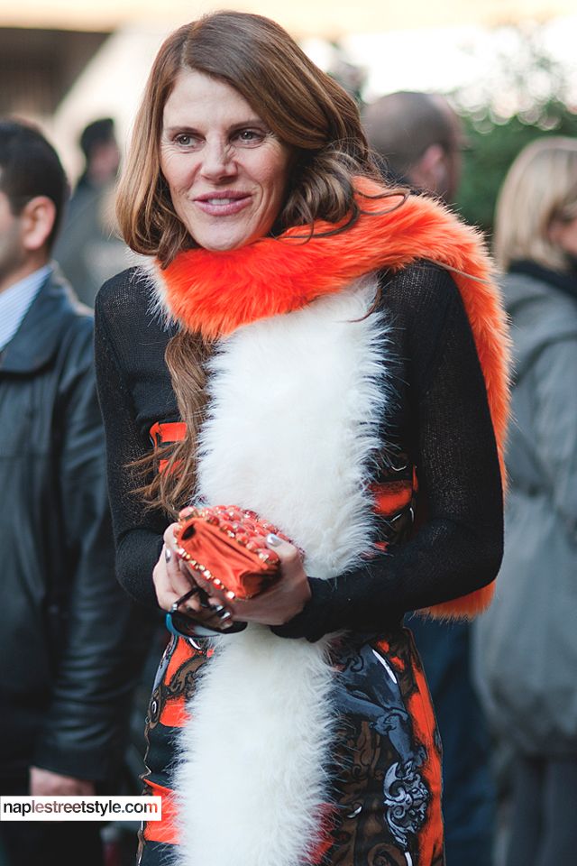 Grintosa come sempre invece, la donna Versace ama osare. Colori sgargianti (rosso, viola, verde prato), ma pur sempre accompagnati dall'immancabile bianco e nero. Forme estremamente seducenti che delineano un appeal tipico della diva anni '80. Immancabili pelle, piume e dettagli (quali bottoni e accessori) rigorosamente in oro.