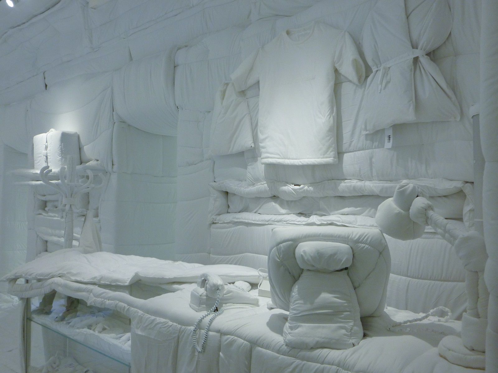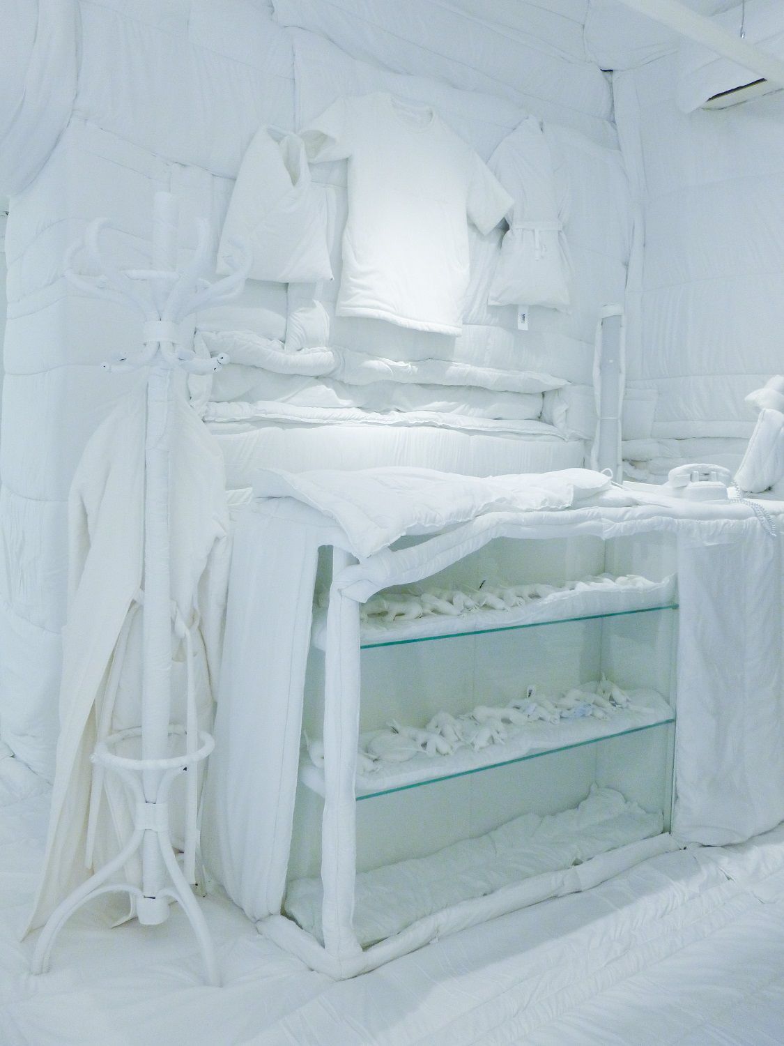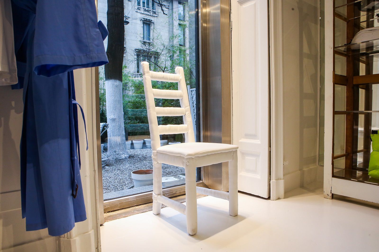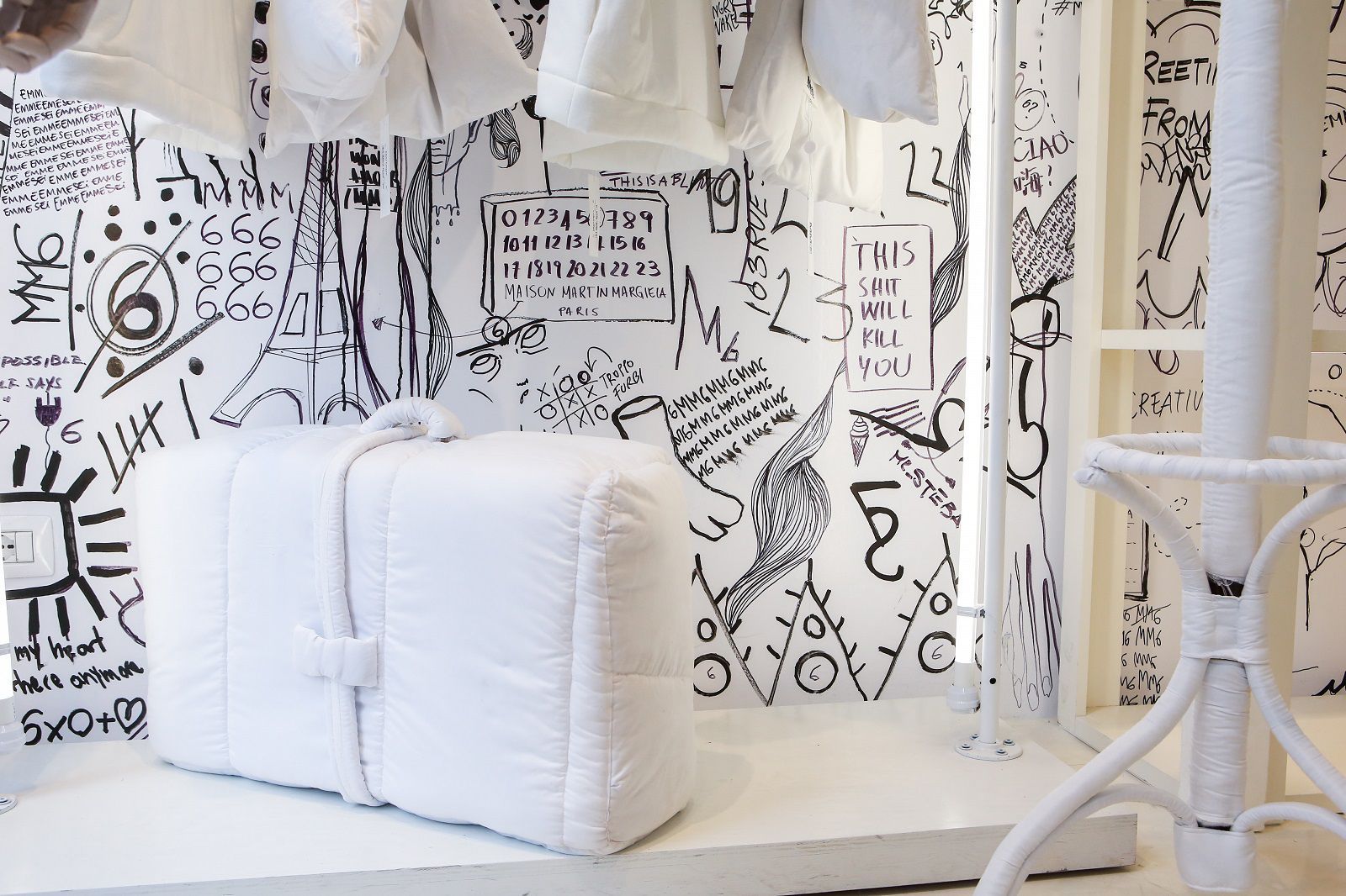 Come già successo lo scorso anno, Maison Margiela ha deciso di collaborare con gli studenti dei corsi di Fashion Design di Istituto Marangoni. Il brand ha affidato ai giovani creativi l’allestimento degli spazi all’interno della sua boutique in via della Spiga a Milano per la presentazione della nuova collezione FW19 di MM6. L’aspetto immacolato, oversized, vaporoso, soffice, simile alle nuvole dei piumini e delle altre creazioni è diventato un set misterioso e ovattato, all white. Un effetto ottenuto rivestendo tutte le superfici, dalle pareti alla pavimentazione, con pannelli in cotone bianco imbottito, in perfetto stile Maison Margiela. Per rendere ancora più speciale ed evocativo il progetto, ogni studente ha scelto un pezzo vintage al mercatino delle pulci da rielaborare in modo creativo. Così, cuscini, telefoni, sedie, lampade, candelabri, bagagli e appendiabiti, rivestiti con morbide imbottiture per rievocare le forme ed i volumi della collezione, hanno acquistato nuova vita.