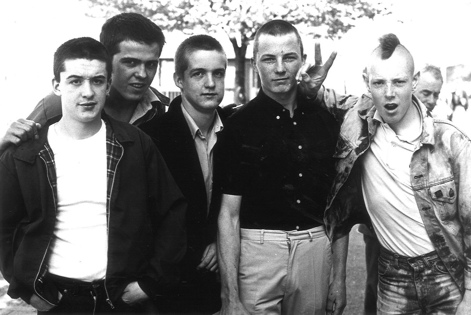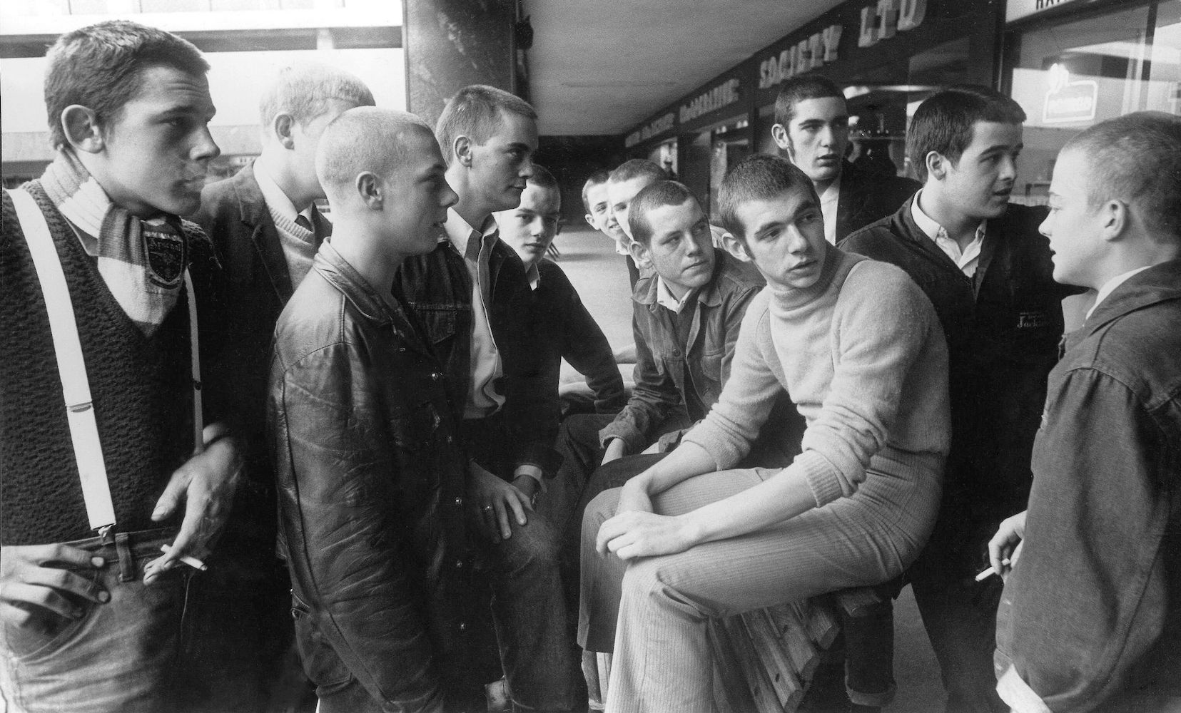Il graduale distacco da questa trasformazione, condusse a una contestuale dissipazione del fenomeno stesso, che sul finire degli anni ‘60 scomparve quasi definitivamente, sopravvivendo solo all’interno di altre formazioni sottoculturali. Verso la fine del decennio nascono così diverse correnti in cui molti Mods ed ex-Mods confluiscono, dando vita a vere e proprie sottoculture strettamente connesse. A cavallo tra gli anni ‘60 e gli anni ‘70 acquisiscono sempre più uno status identitario gli Skinheads, che prendono forma intorno alla corrente più radicale dei Mods, gli hard Mods. Con un look stigmatizzato e deciso, gli Skinheads si distaccano drasticamente dalla sottocultura “madre”, a partire proprio dalle scelte stilistiche adottate a cavallo del decennio. A discapito di abiti firmati, parka e Clark’s, riscuotono grande consenso stivaletti neri Dr.Martens - simbolo della working class londinese -, bomber MA-1, bretelle e Levi’s Red Tag o 501. Anche se la vera presa di posizione nei confronti dei Mods, rimane il taglio di capelli: tratto distintivo è proprio la testa rasata, in aperto contrasto con il taglio dei primi Mods. Buona parte del look skinhead deriva poi dai Jamaican Rude Boys, sottocultura giamaicana che condizionò profondamente la nascita e lo stile degli Skinheads. È proprio dai Rude Boys che gli Skinheads ereditano le già citate bretelle e la coppola, in uso soprattutto tra le formazioni originali. Molti skin intorno alla metà degli anni ‘70 confluiscono nell’altra formazione subculturale che comincia a prendere piede in Inghilterra sull’influenza statunitense. Bretelle, Dr. Martens e jeans rimangono anche con l’avvento del fenomeno Punk, che a livello stilistico scava proprio nell’identitario look degli skinhead.