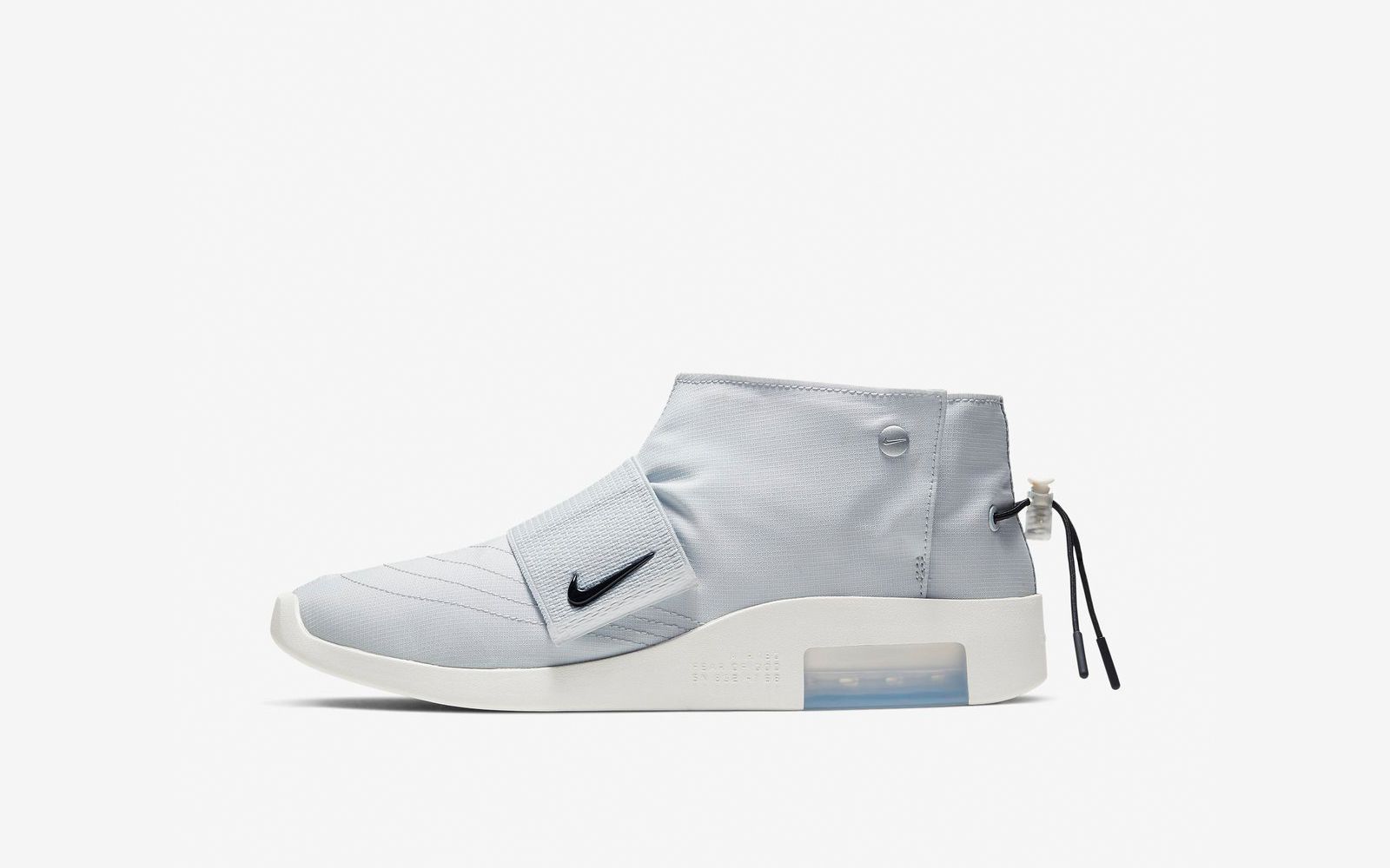 Le Nike Air Fear Of God Moccasin si presentano in un elegante schema cromatico Pure Platinum/Black Sail, e saranno caratterizzate da una doppia chiusura: una tramite velcro a strappo posta sulla tomaia e da una a coulisse collocata sul tallone. L'unità Zoom Air e il co-branding Nike / Fear Of God posto sulle solette interne completano il design. Previste per sabato 27 aprile, le Nike Air Fear Of God Moccasin saranno disponibili pressso selezionati rivenditori Nike e su SNEAKRS App al prezzo di 171€.