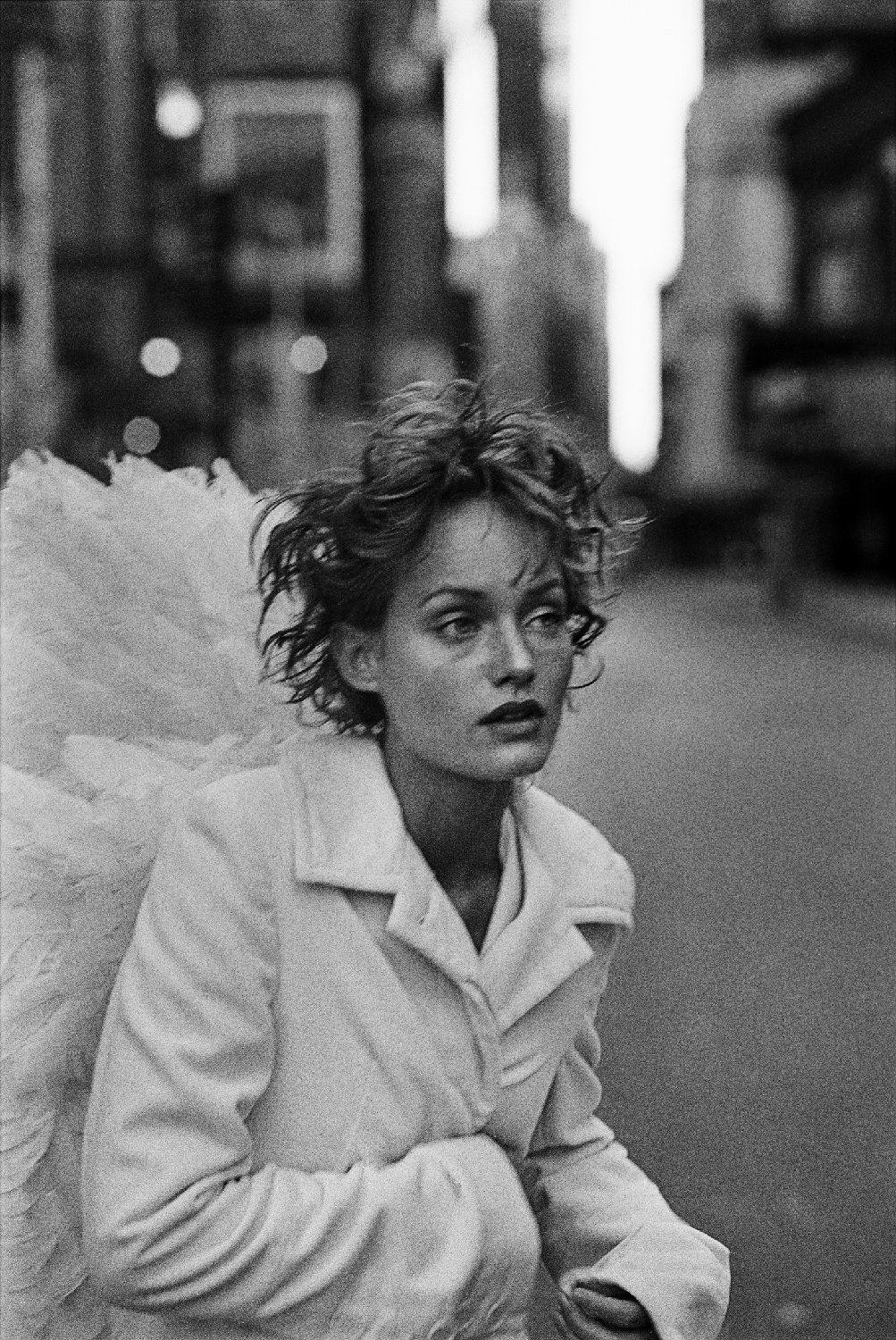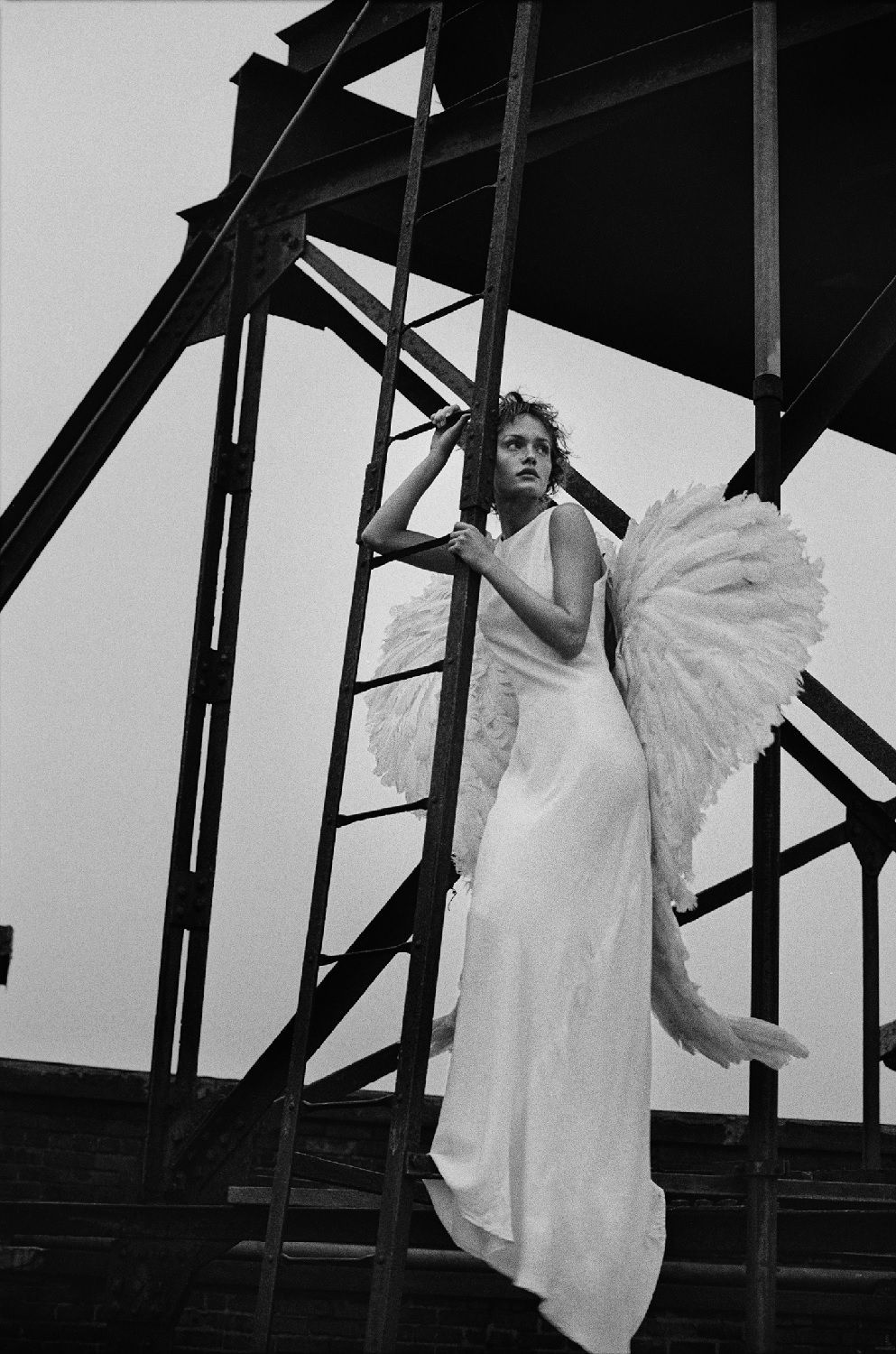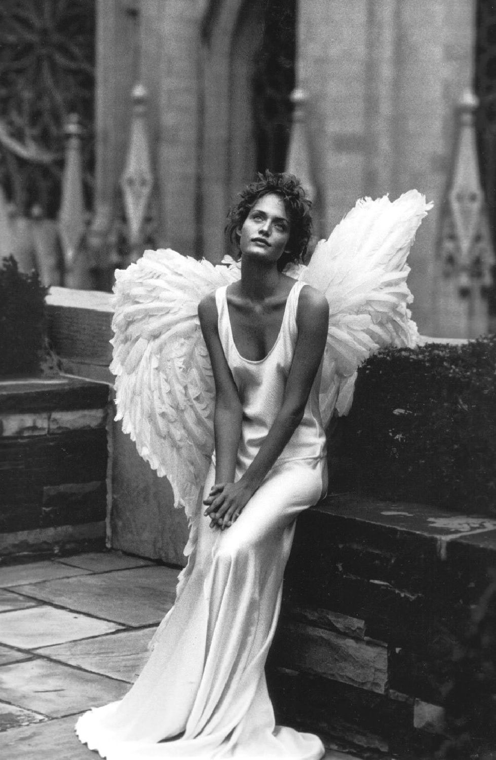 L’immagine di Amber Valletta in bianco e nero con indosso un tailleur bianco maschile e un paio di ali d’angelo è ancora oggi tra gli scatti più postati di Instagram. Siamo nel 1993 e la bellissima top model è a Times Square, New York, per realizzare un servizio fotografico per il numero di dicembre di Harper's Bazaar USA ispirato all’iconico film di Wim Wenders Il cielo sopra Berlino. Dietro l’obiettivo c’è Peter Lindbergh, lo styling è di Tonne Goodman.