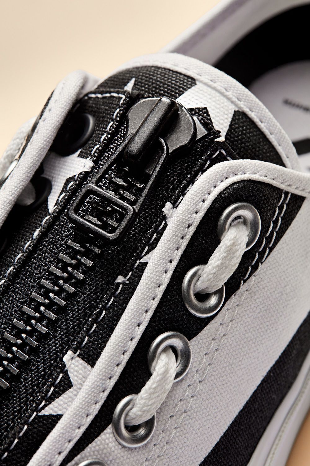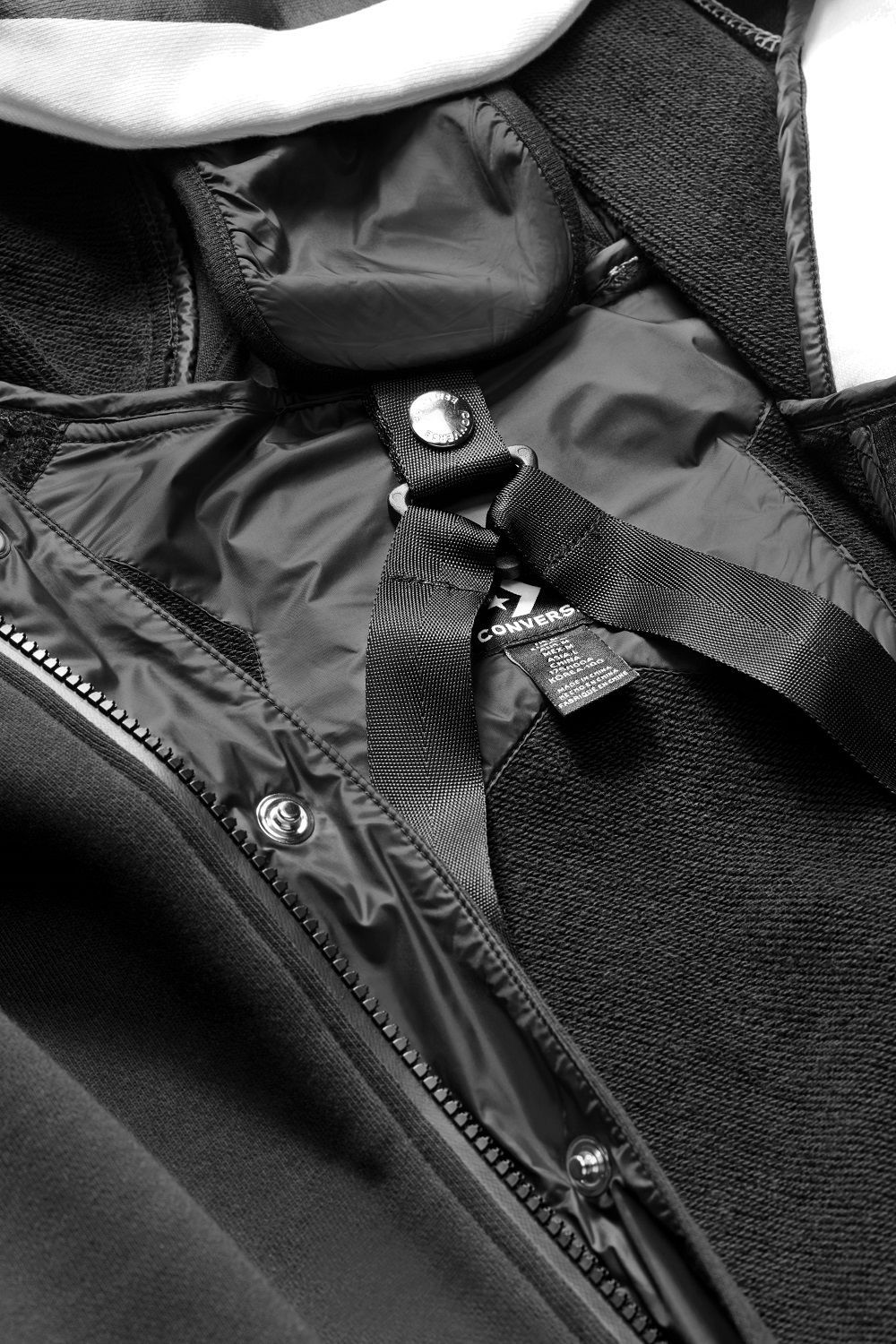 Completa la capsule una selezione di capi d’abbigliamento minimalista, ma con un twist ribelle che include una giacca leggera in GORE-TEX®, una T-shirt a manica corta e una felpa con cappuccio. Tutti dotati di cerniere stilizzate, occhielli e allacciatura che ricordano la Jack Purcell.