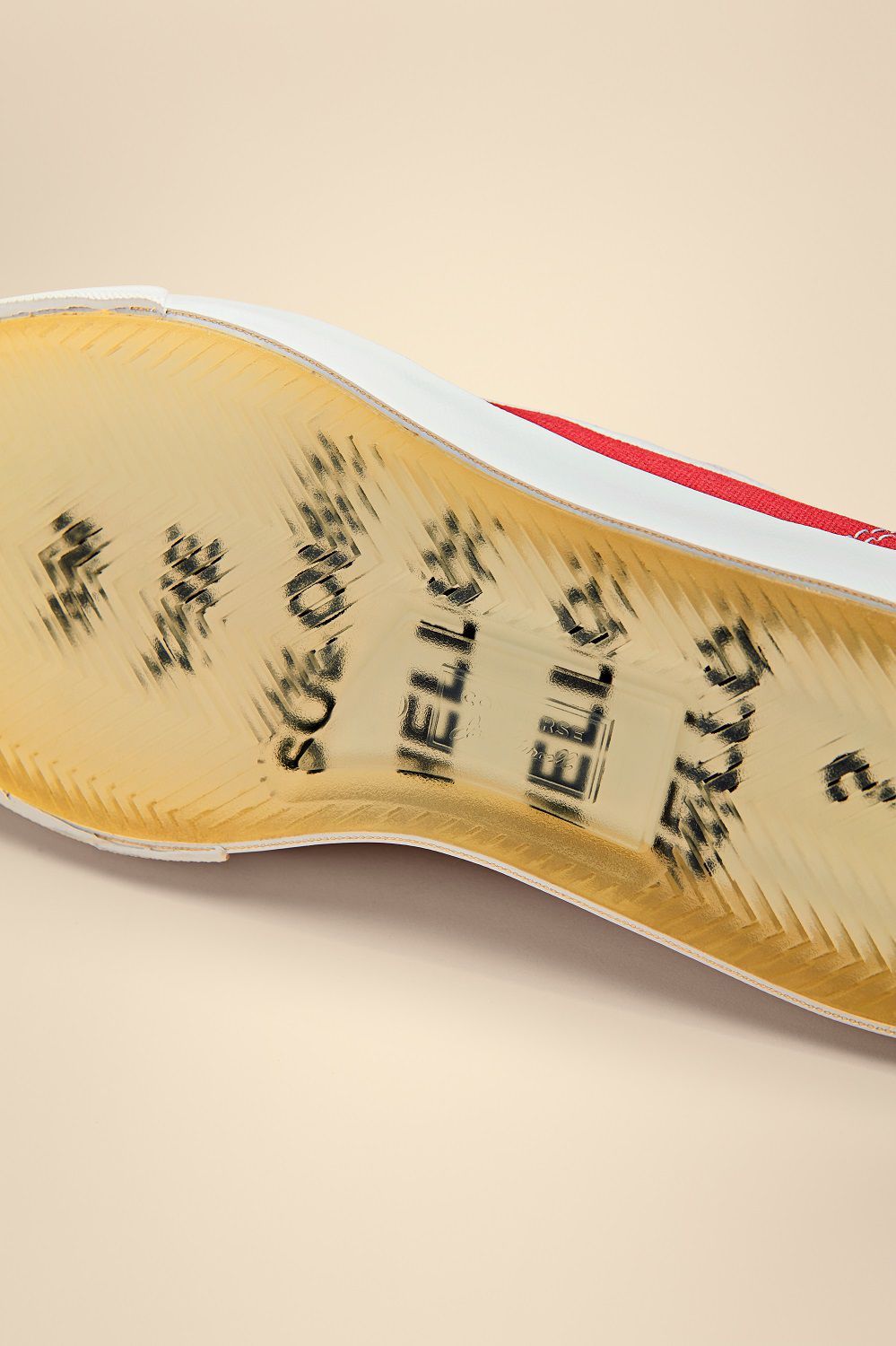 Lo è a tal punto da aver ispirato una capsule collection per la SS19 realizzata dal brand americano in collaborazione con TAKAHIROMIYASHITATheSoloist. Il risultato sono due nuove versioni di Jack Purcell caratterizzate da una tomaia in tela con la grafica "Stars and Bars" (stampa introdotta da Converse nel 1991): una colorata e l’altra in bianco e nero. Entrambe sono arricchite da una allacciatura asimmetrica ricoperta da zip rimovibile e da un outsole traslucida con impresso il motto di Miyashita “Hello! I Am The Soloist. Hello! Hello, Hello”.