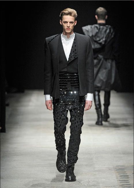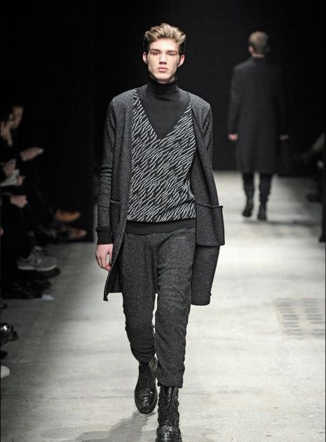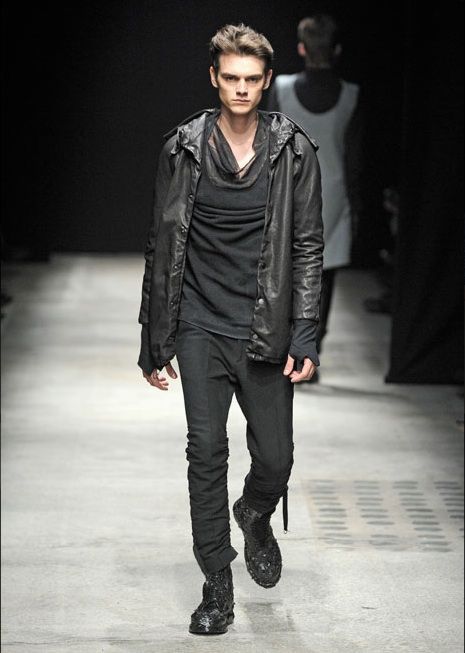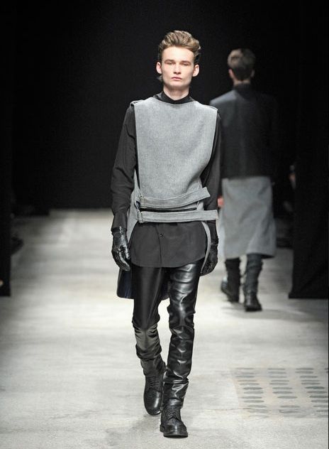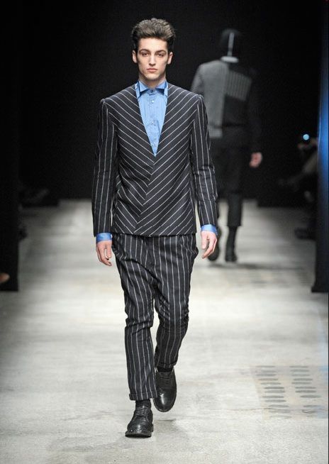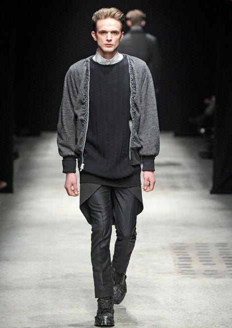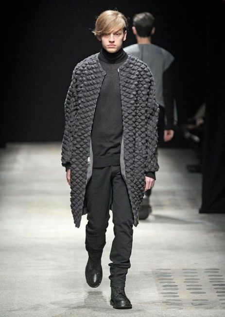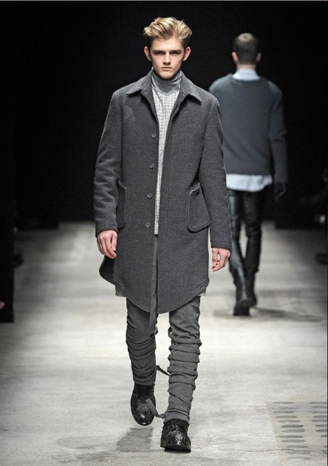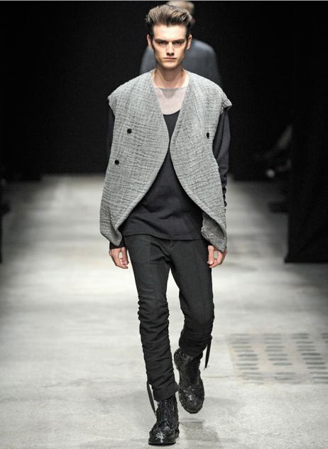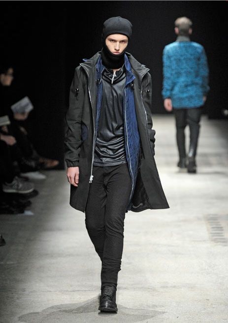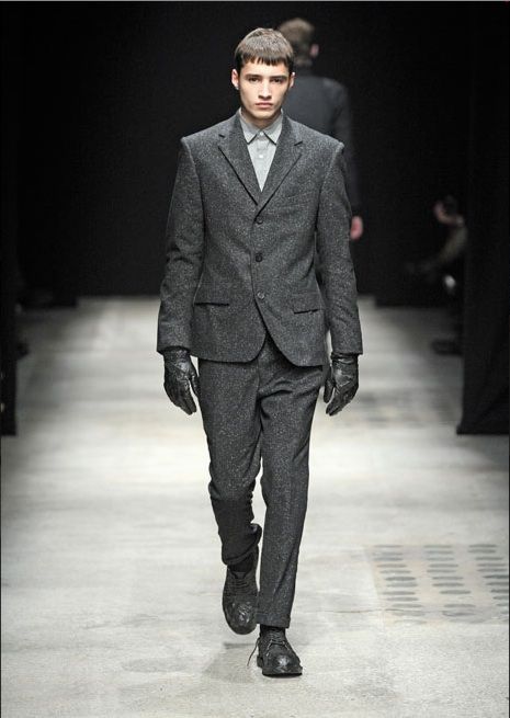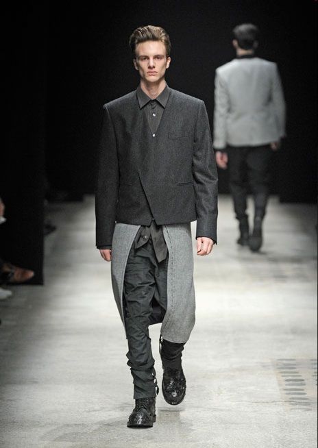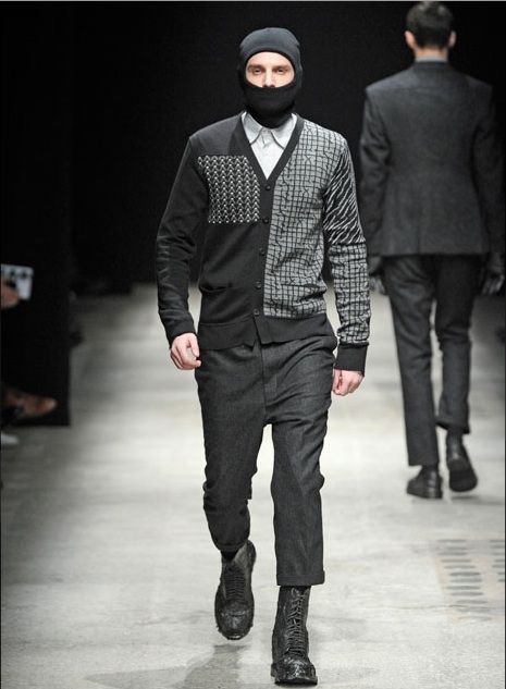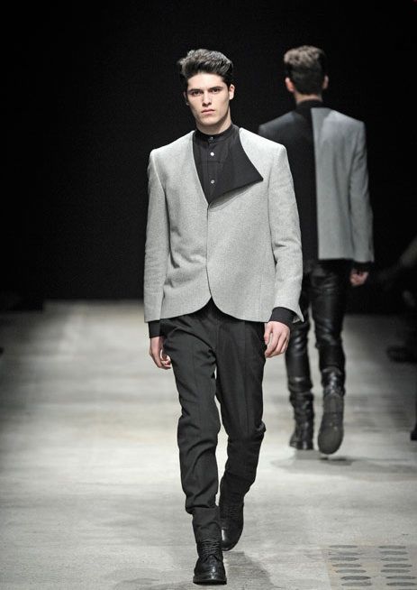 Questa collezione pour homme non ama la rigidità dei completi formali ma gioca con i capi, presenta uno stile bourgeois-bohéme con cadenze minimaliste ed influenze techno futuristiche.