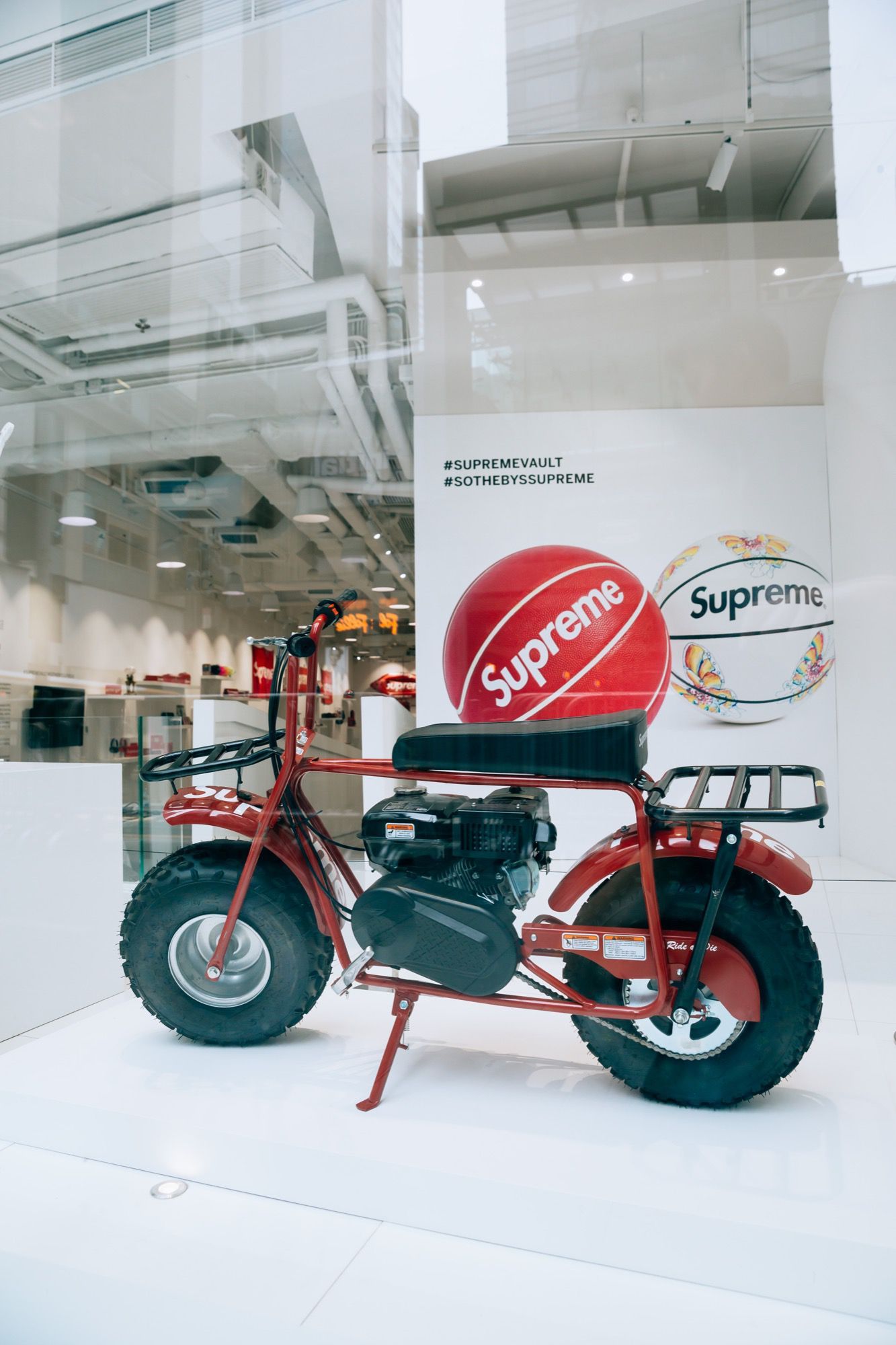 La collezione all'asta appartiene a Yukio Takahashi, gestore del sito di resell Bazamn. Lo scorso febbraio, gli item di Takahashi erano stati esposti a Los Angeles insieme alla collezione completa di 243 skateboard Supreme di Ryan Fuller, successivamente venduta all'asta da Sotheby's per 800mila dollari. Nella mostra si possono osservare alcuni dei pezzi più incredibili prodotti da Supreme, ma nell’incredibile varietà di forme, dimensioni e utilità degli oggetti, l’unica costante è la presenza del logo: stampato, cucito o anche solo accennato con un S o con la palette di colori del brand.